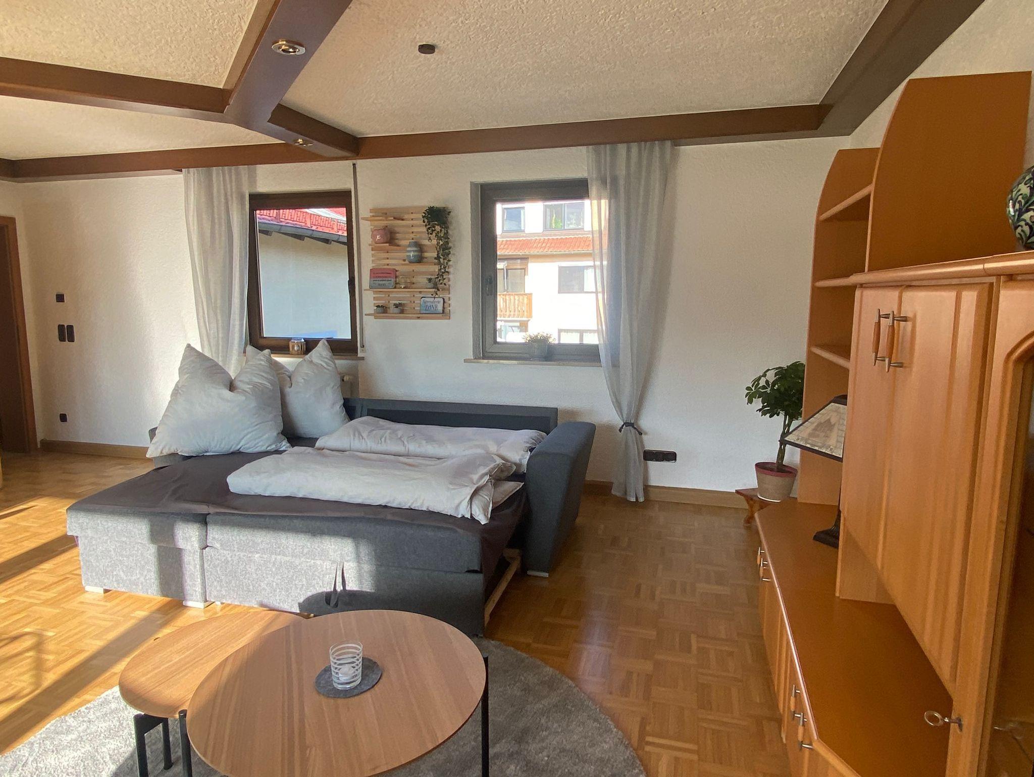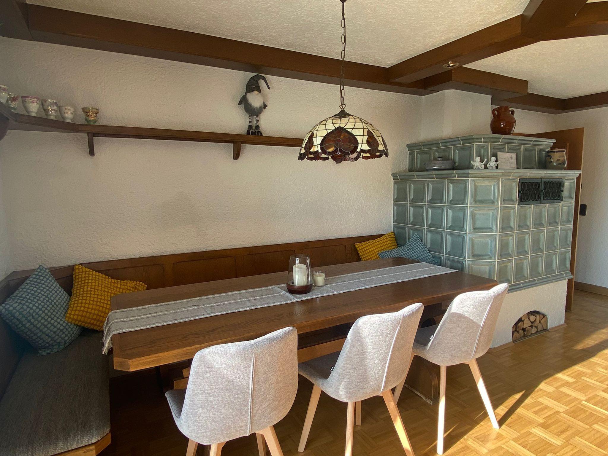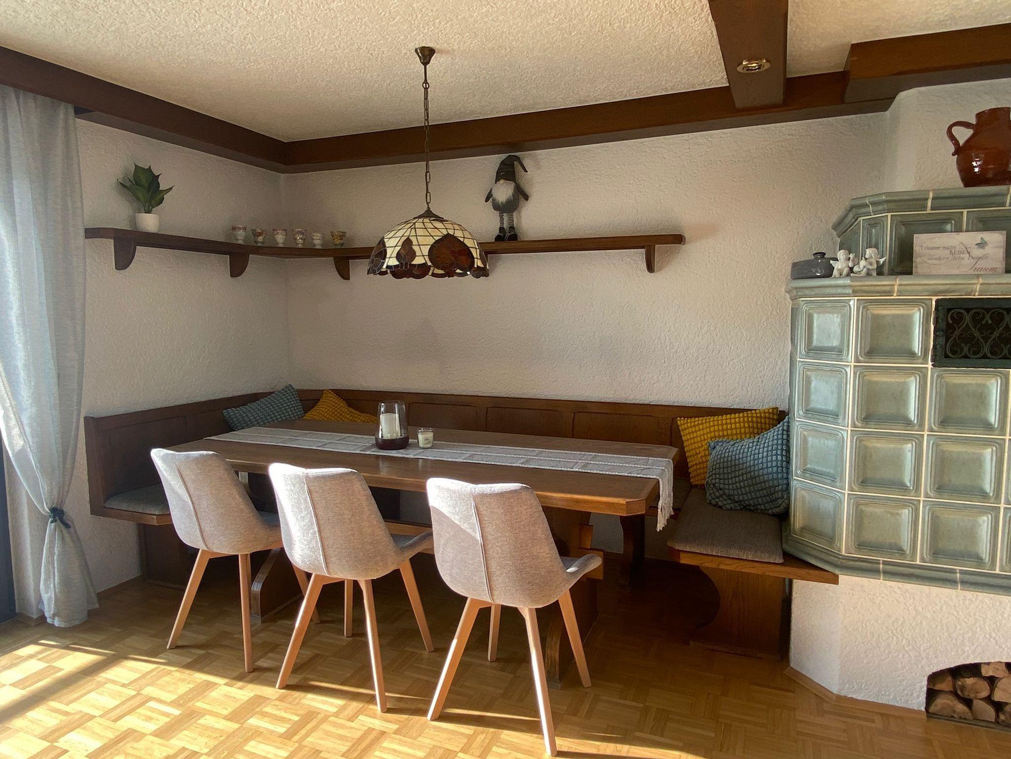 Das gemütliche Wohnzimmer ist geräumig und deshalb mit einem ausziehbaren Sofa ausgestattet, auf dem gegebenenfalls noch zwei weitere Personen schlafen können. Im Wohnzimmer, in dem sich auch der Kachelofen befindet, der bei sehr kalten Temperaturen im Winter zusätzlich zur Heizung geschürt werden darf, befindet sich auch ein Fernseher und ein zweiter großer Esstisch. Tiere sind nicht erlaubt.