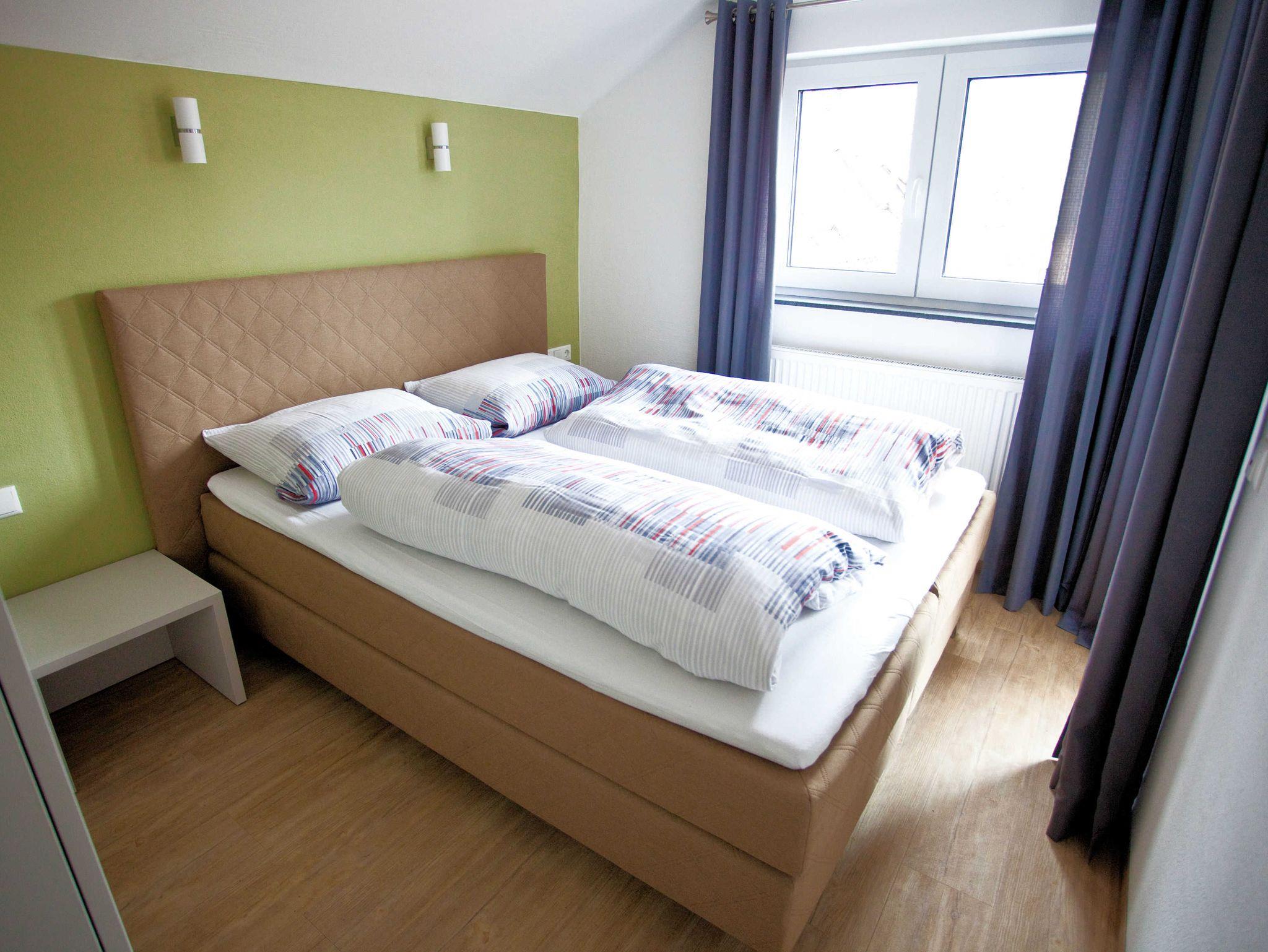Er ist nicht nur von der Küche aus erreichbar, sondern macht auch das helle Schlafzimmer noch luftiger. Dort wartet ein großes Boxspringbett auf Sie.