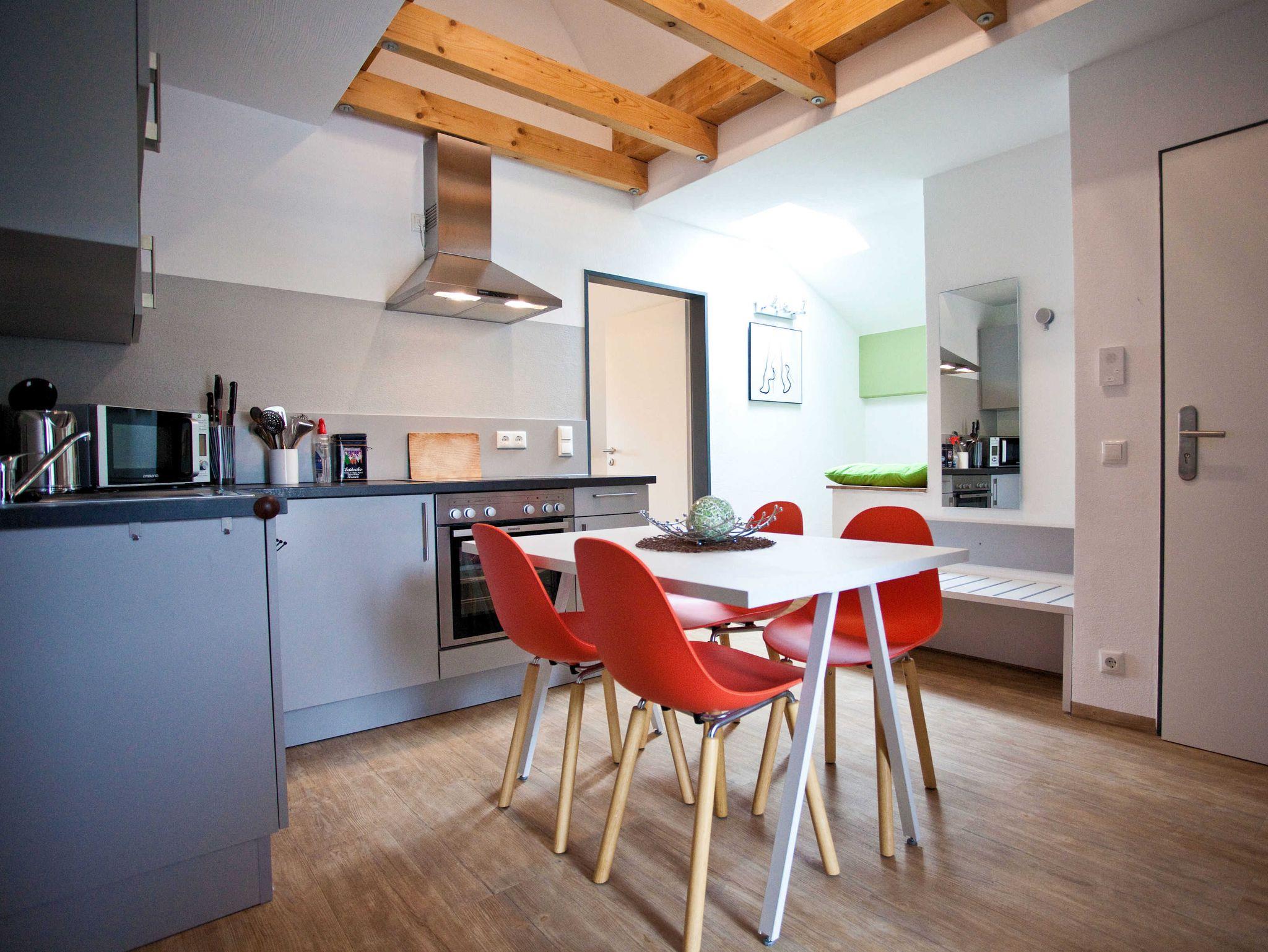 Das Apartment mit 56 m² unter dem Dach, zwei Zimmern, Wände mit leichten Schrägen und einem Sichtbalken ist etwas ganz Besonderes. Modern, stillvoll und durchdacht. Die Ferienwohnung ist qualitativ hochwertig eingerichtet und geschnitten.