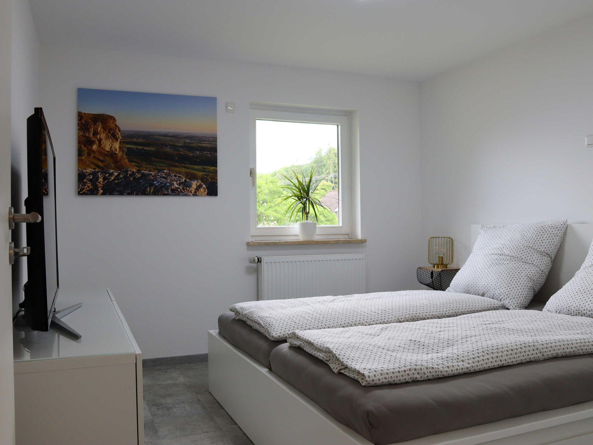 Das Ferienhäusla hat zwei separate Schlafzimmer mit je einem Doppelbett (1,80x2,00 m), Smart TV sowie zwei Nachttische mit Leselampe.