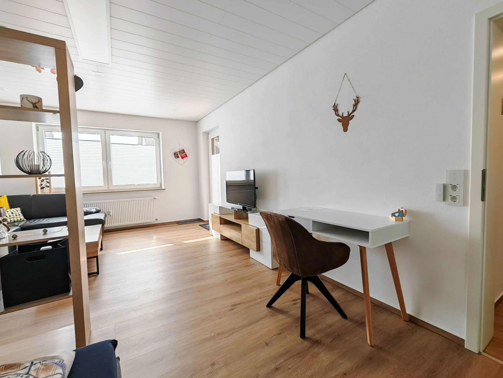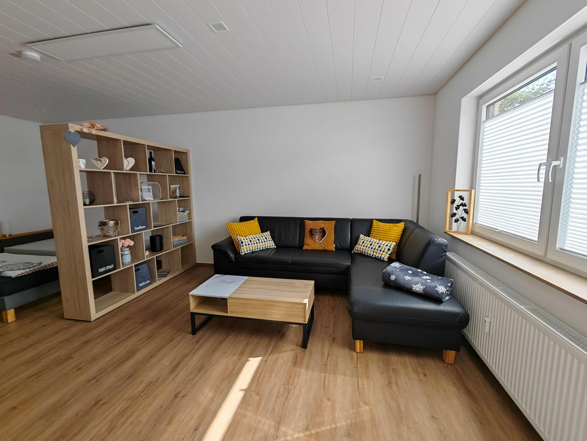 Unsere frisch renovierte Ferienwohnung mit 46m² bietet für 1-3 Personen Platz. Der gemütliche Wohn- und Schlafbereich mit Schlafsofa und Flachbild-TV lädt zum Verweilen ein.