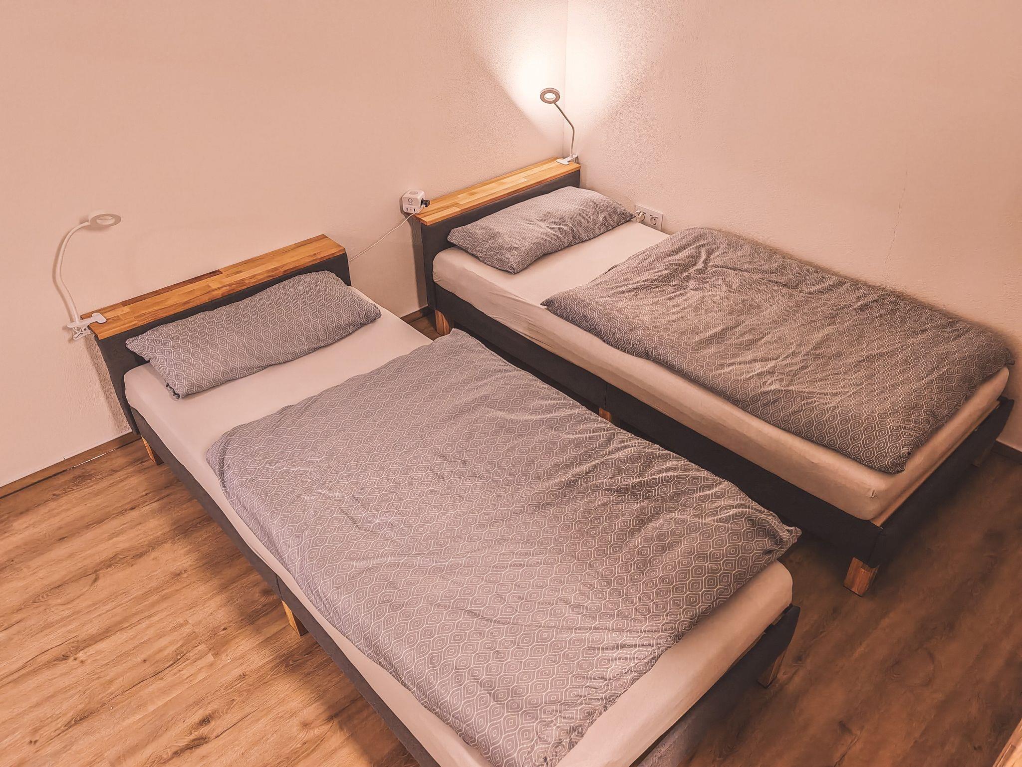 Im Schlafbereich stehen 2 Betten zur Verfügung, die als Doppelbett, oder auch als zwei einzelne Betten genutzt werden können. Sollte eine dritte Person mit anreisen, wird das Sofa schnell zu einer Schlafgelegenheit für die 3. Person.
