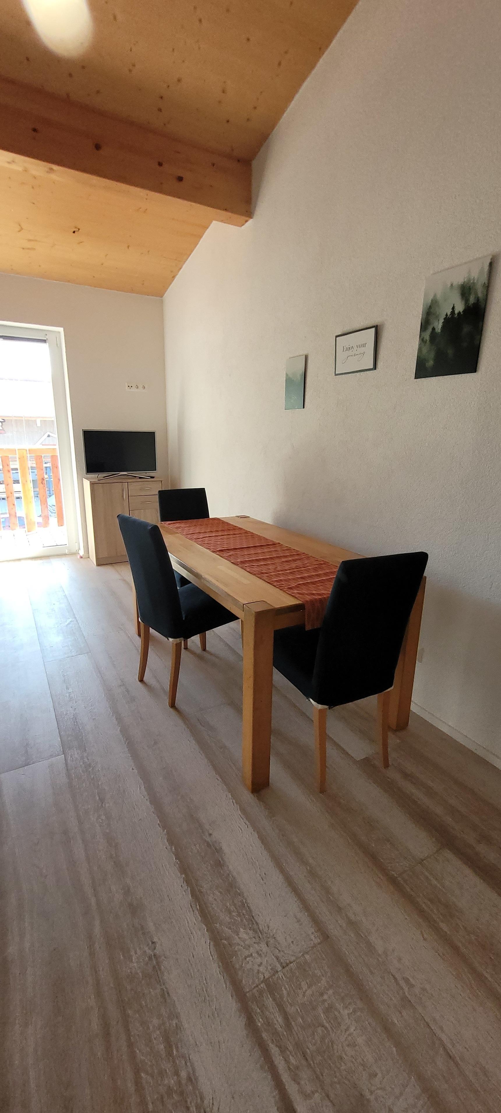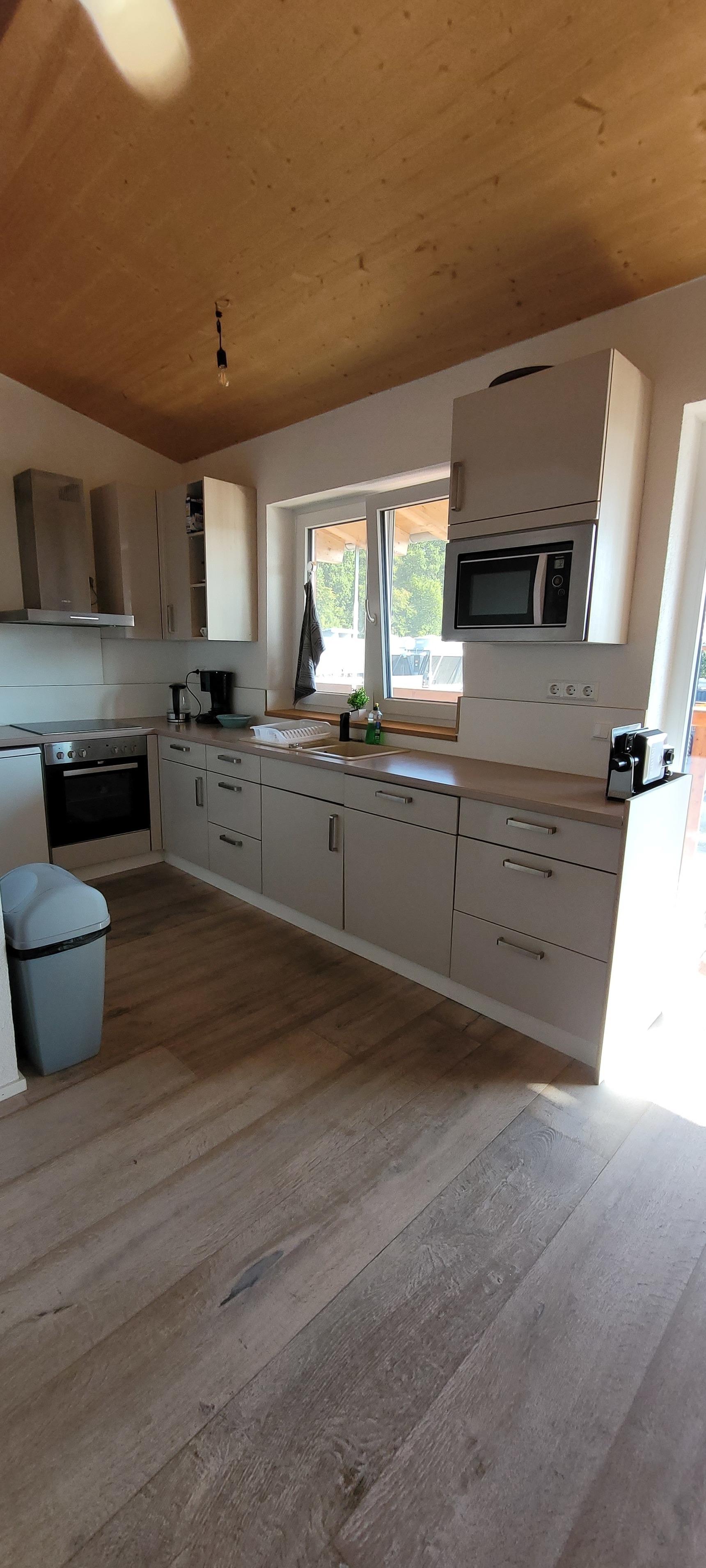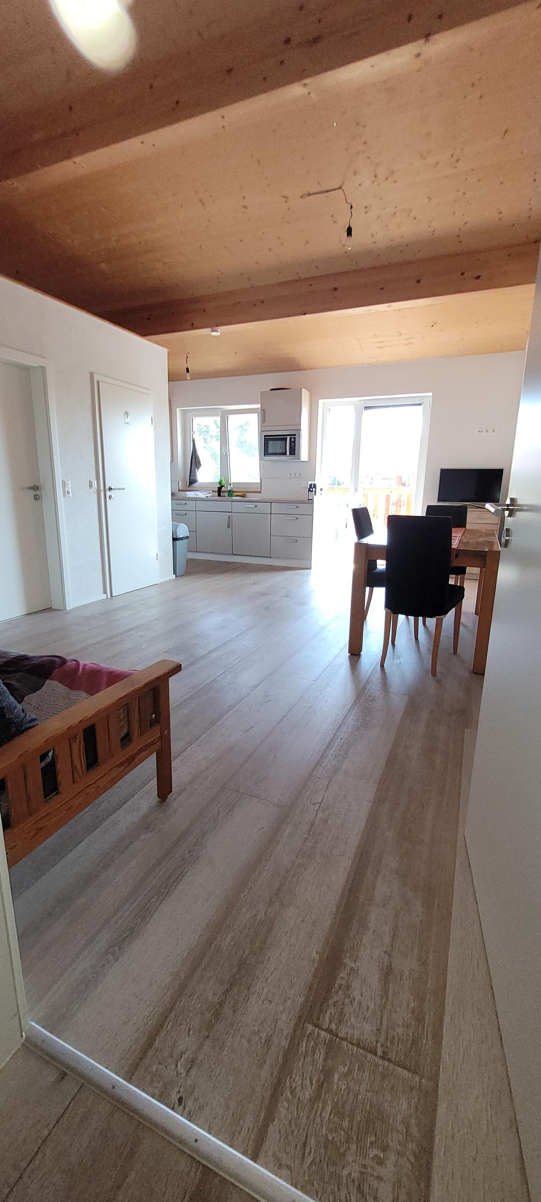 Am Waldrand gelegene schönes neues 3 Zimmer Apartment, mit 2 einzelnen Schlafzimmer in einem Holzgebäude. Ca.8 km von der A8 gelegen.