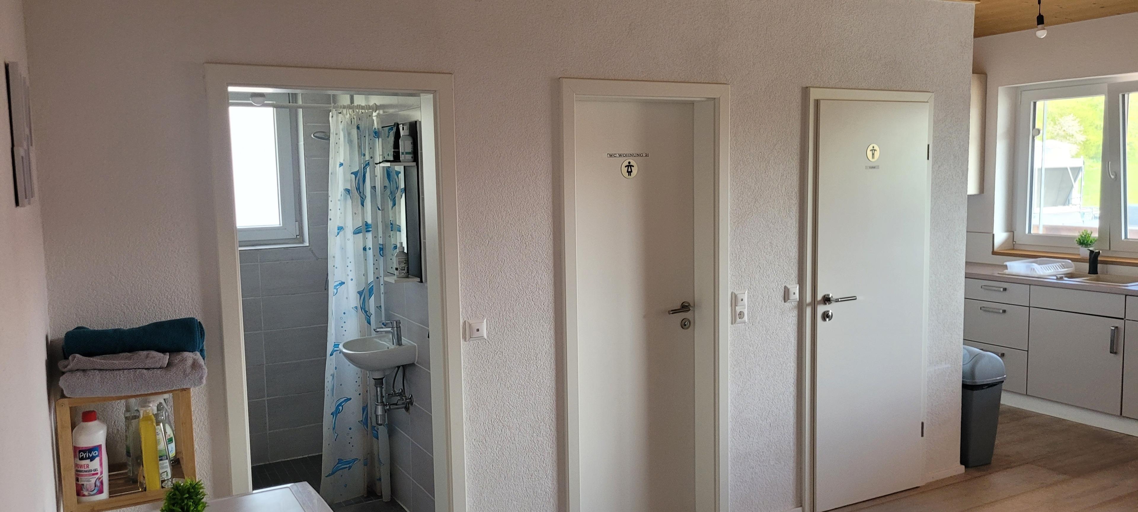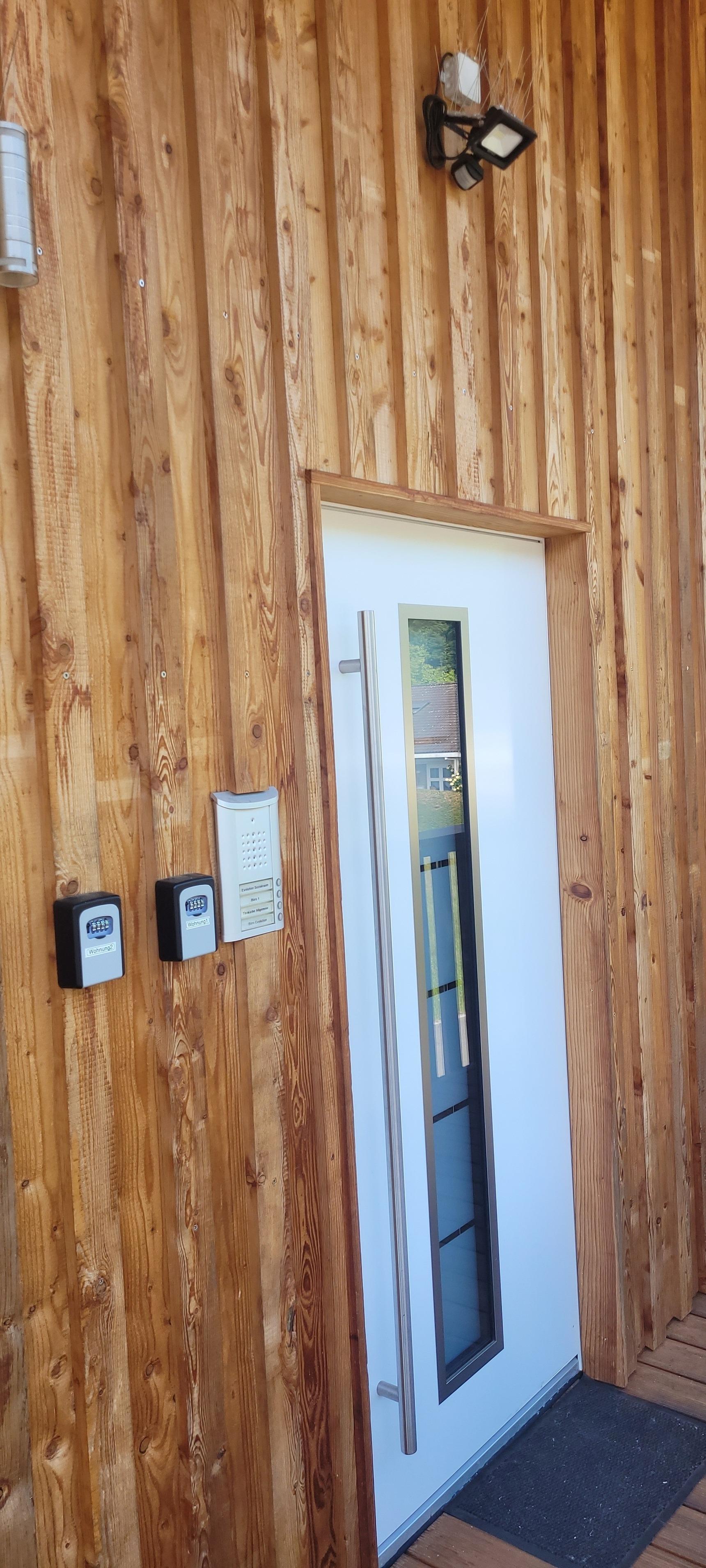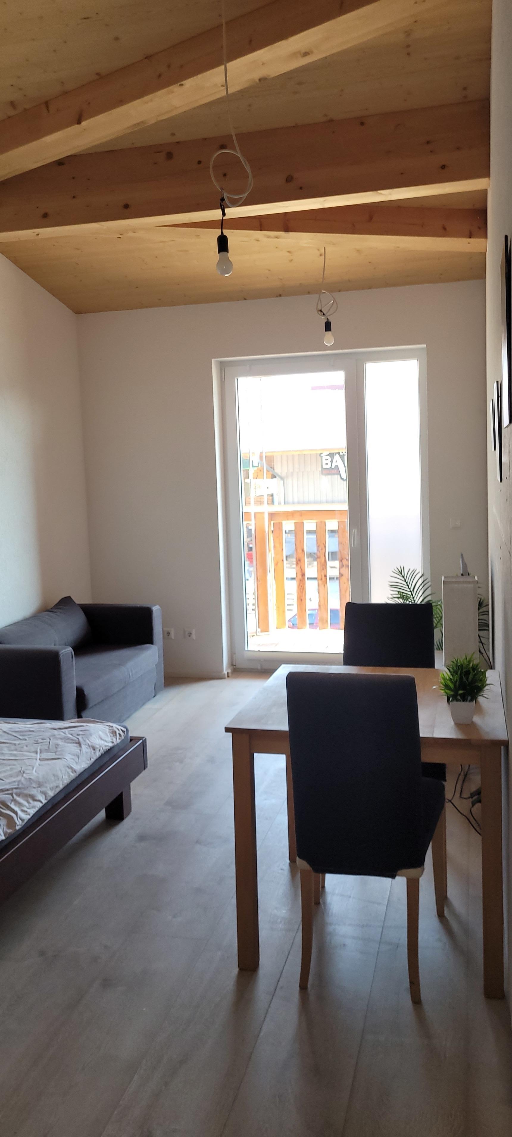 Am Waldrand gelegene schönes neues 3 Zimmer Apartment, mit 2 einzelnen Schlafzimmer in einem Holzgebäude. Ca.8 km von der A8 gelegen.