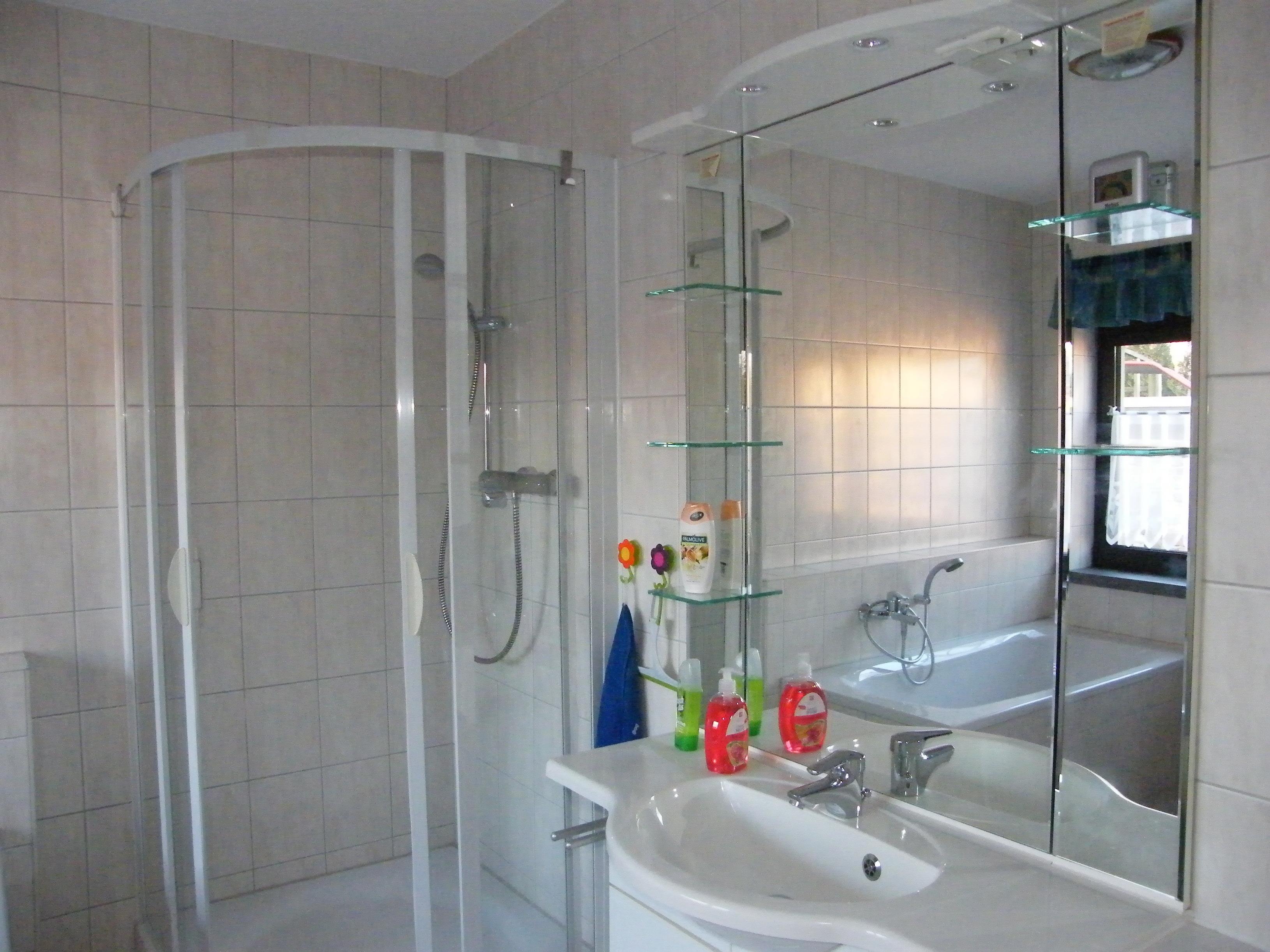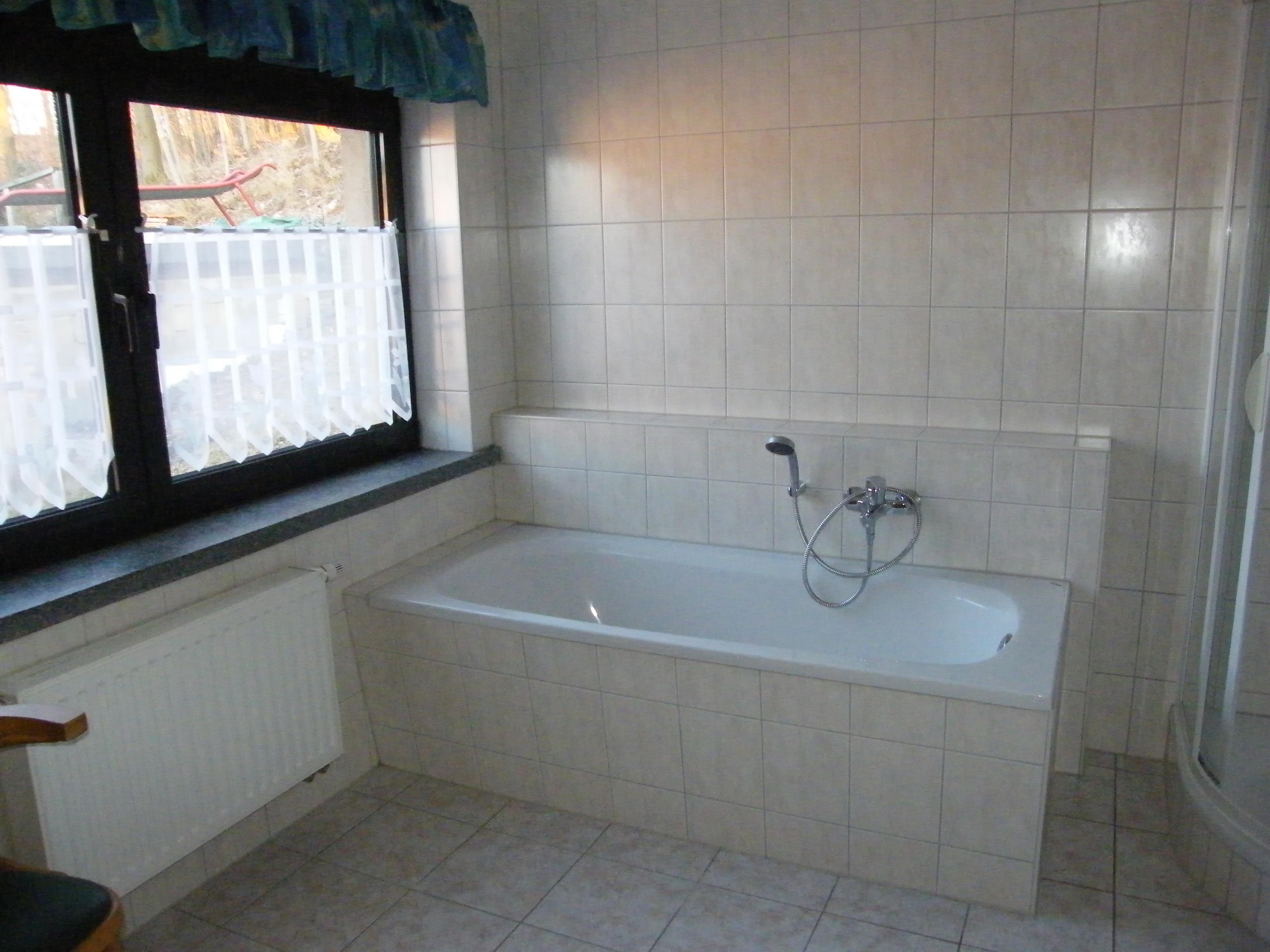 Badeværelse med bruser og badekar
