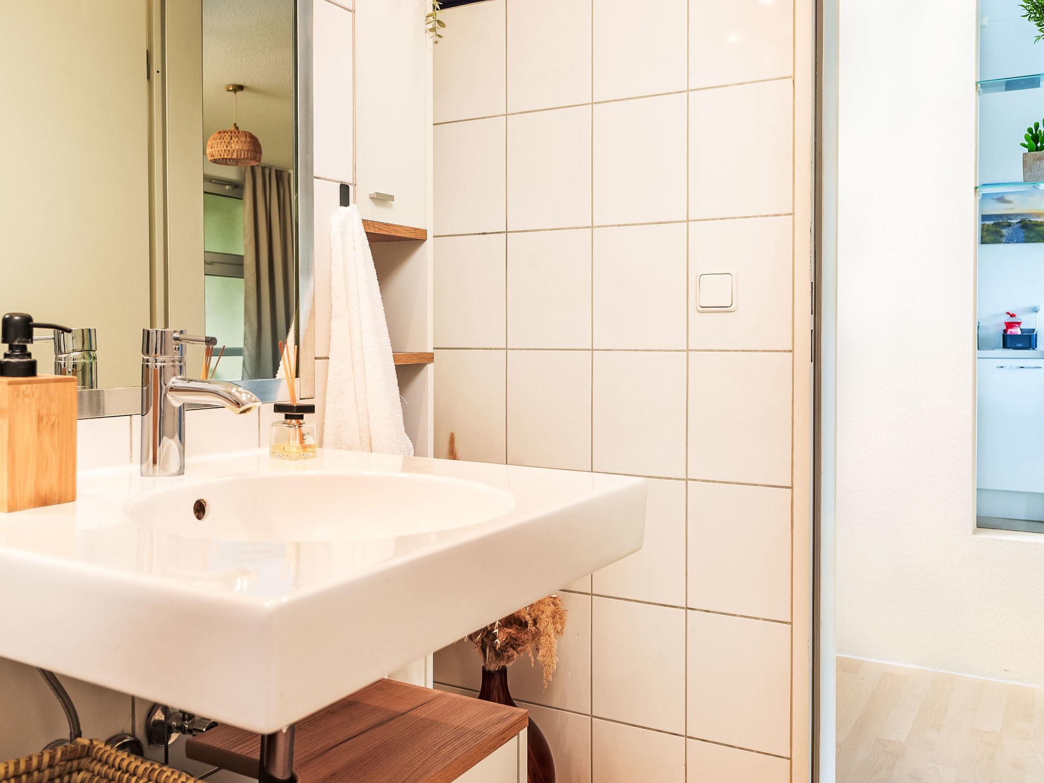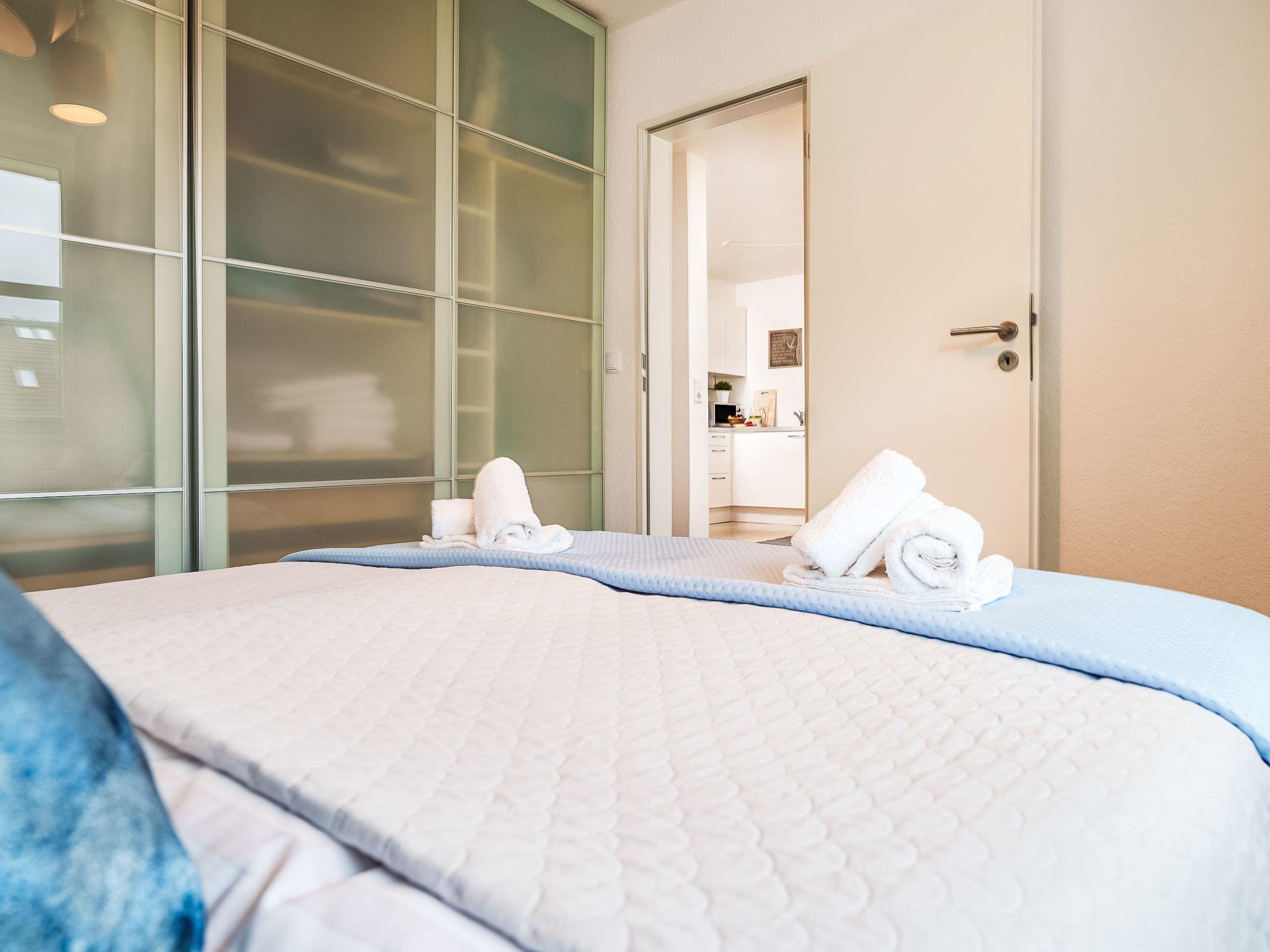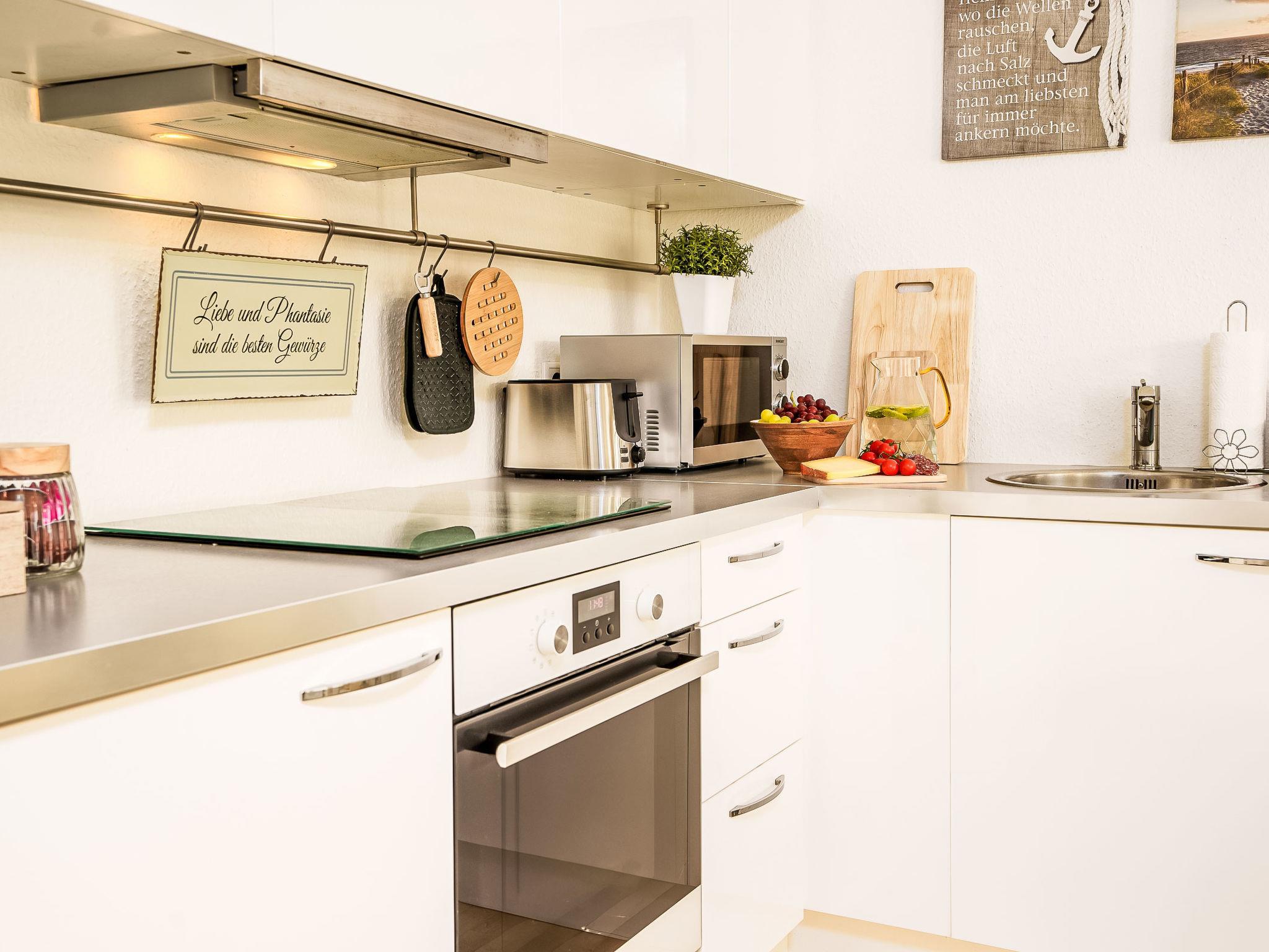 "RegioStyle with Sea View-Balcony-Beach", 2-room apartment 50 m2. Modern and stylish furnishings: living room with 1 double sofabed, dining table and TV. 1 room with 1 double bed. Open kitchen (dishwasher, 4 ceramic glass hob hotplates, kettle, microwave, freezer, electric coffee machine). Bath/WC. Gas heating. Balcony. Balcony furniture. Partial view of the sea. Facilities: washing machine, dryer, hair dryer. Internet (WiFi, free). Please note: non-smokers only. Maximum 2 pets/ dogs allowed. Smoke alarm.