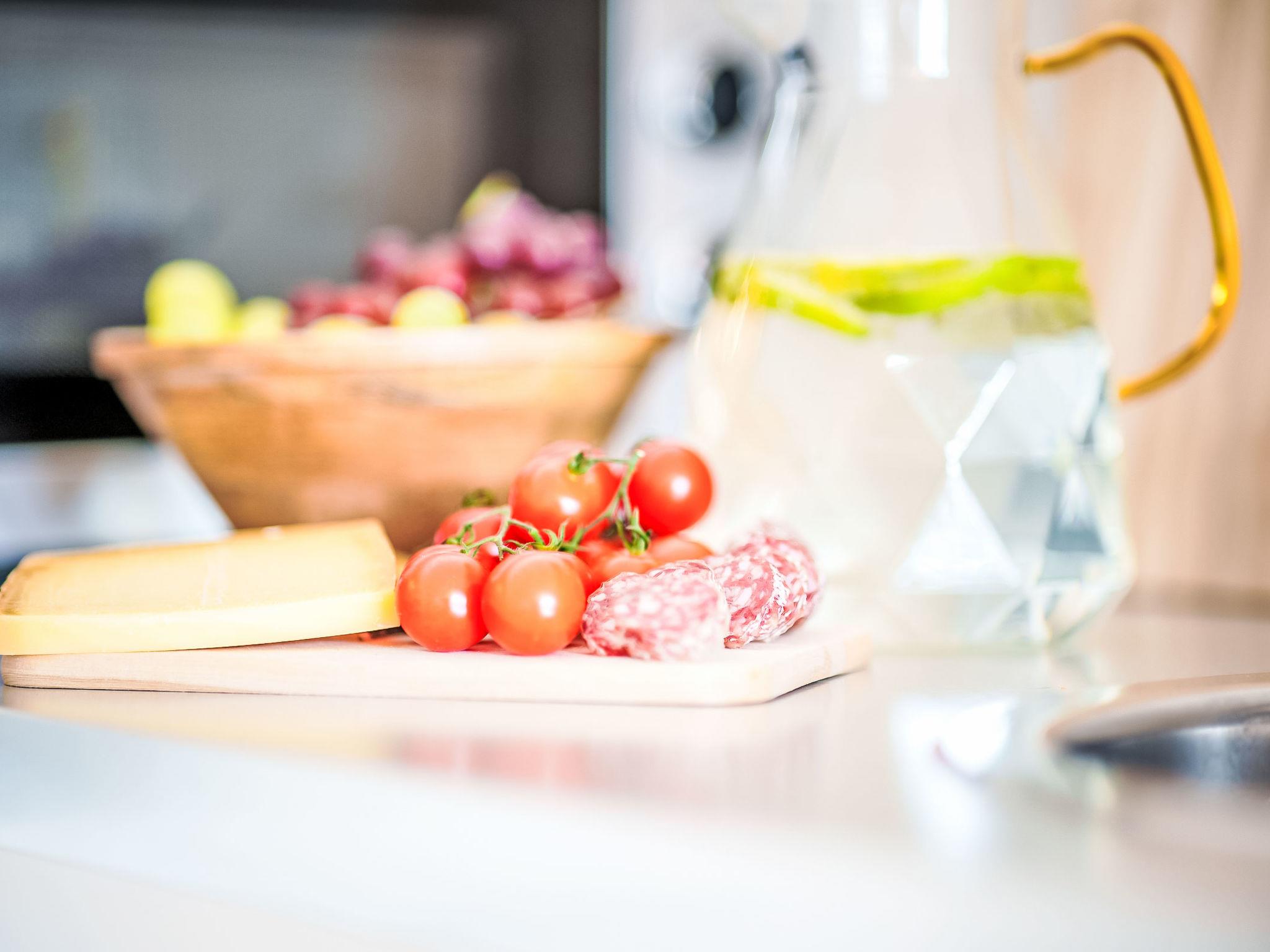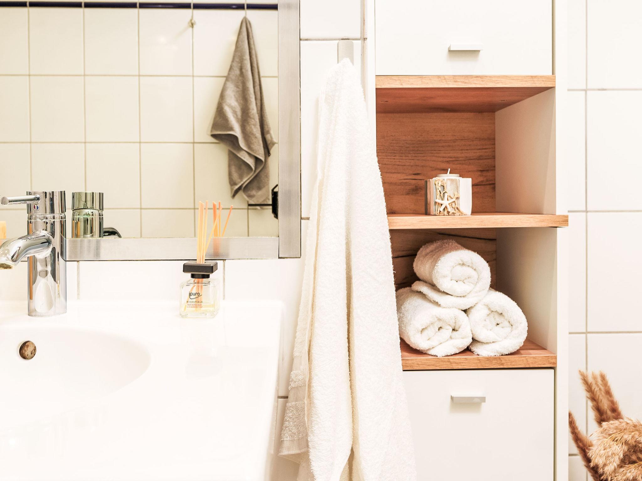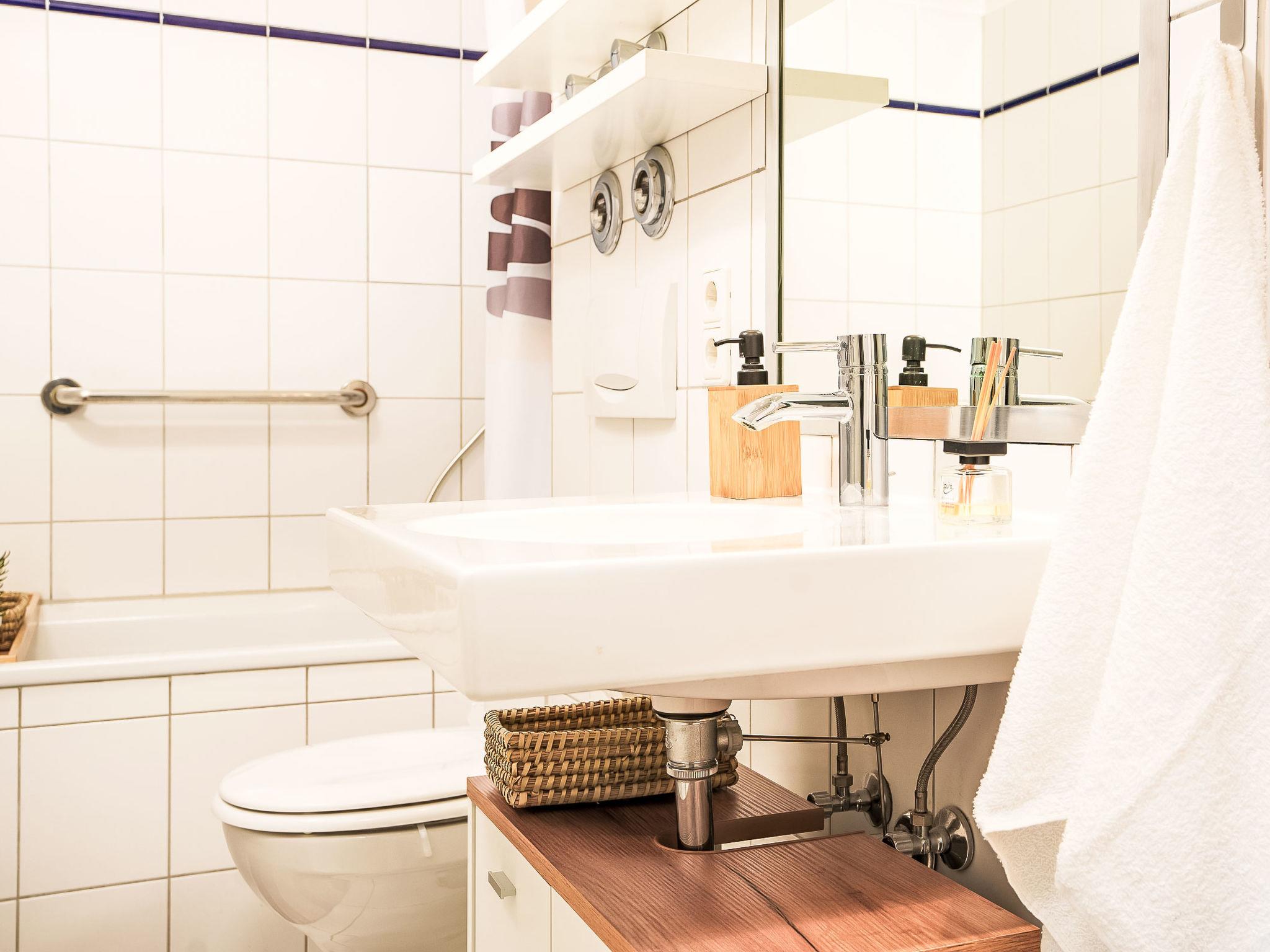 "RegioStyle with Sea View-Balcony-Beach", 2-room apartment 50 m2. Modern and stylish furnishings: living room with 1 double sofabed, dining table and TV. 1 room with 1 double bed. Open kitchen (dishwasher, 4 ceramic glass hob hotplates, kettle, microwave, freezer, electric coffee machine). Bath/WC. Gas heating. Balcony. Balcony furniture. Partial view of the sea. Facilities: washing machine, dryer, hair dryer. Internet (WiFi, free). Please note: non-smokers only. Maximum 2 pets/ dogs allowed. Smoke alarm.