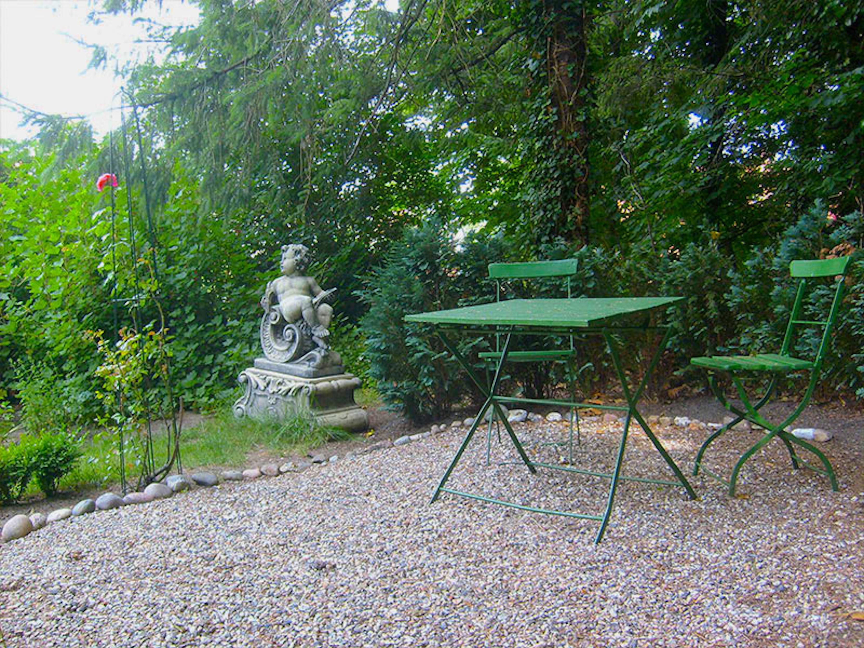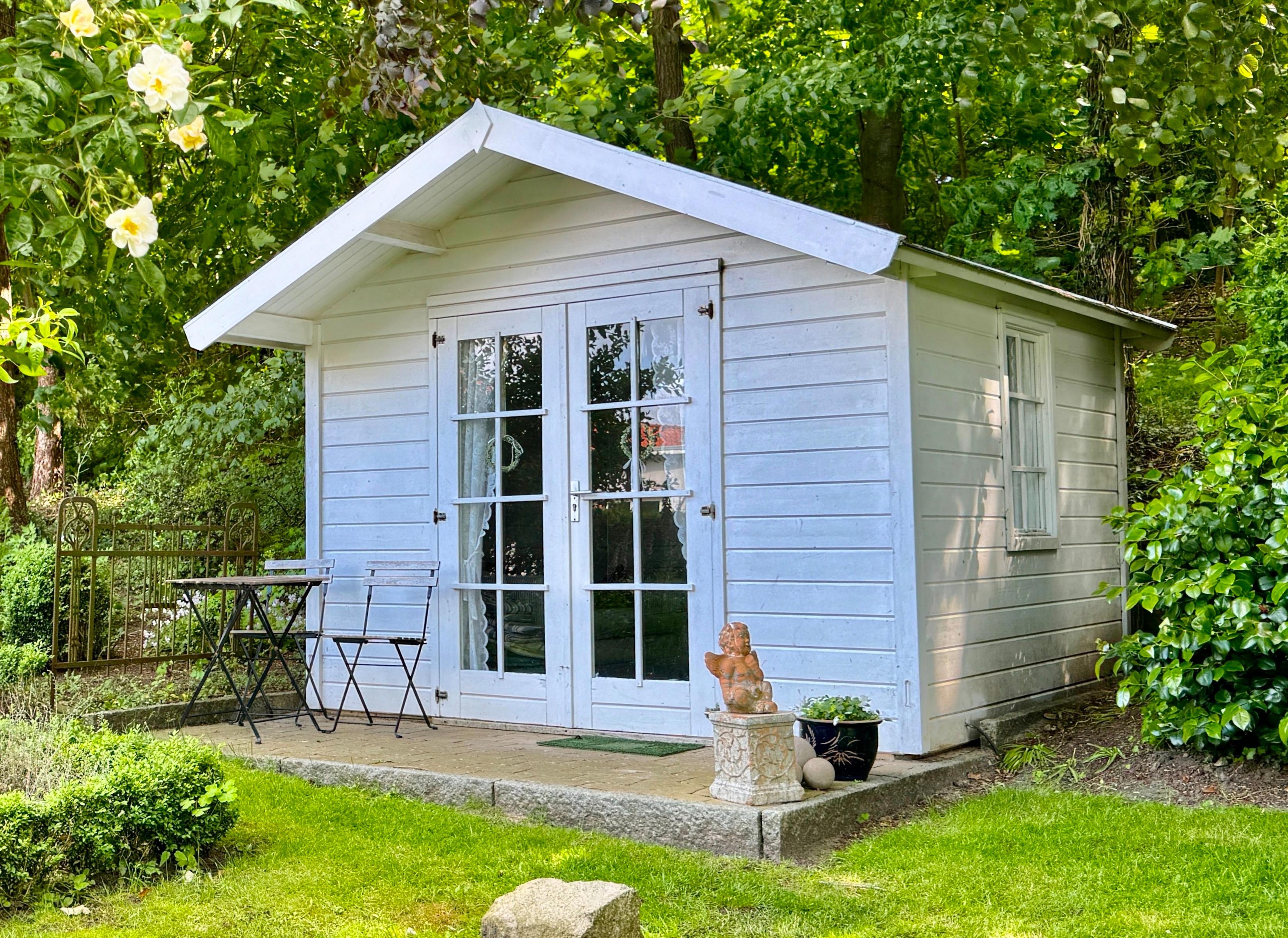 In einem 3000 qm großem Garten befindet sich für Sie eine gemütliche Gartenlaube mit bequemen