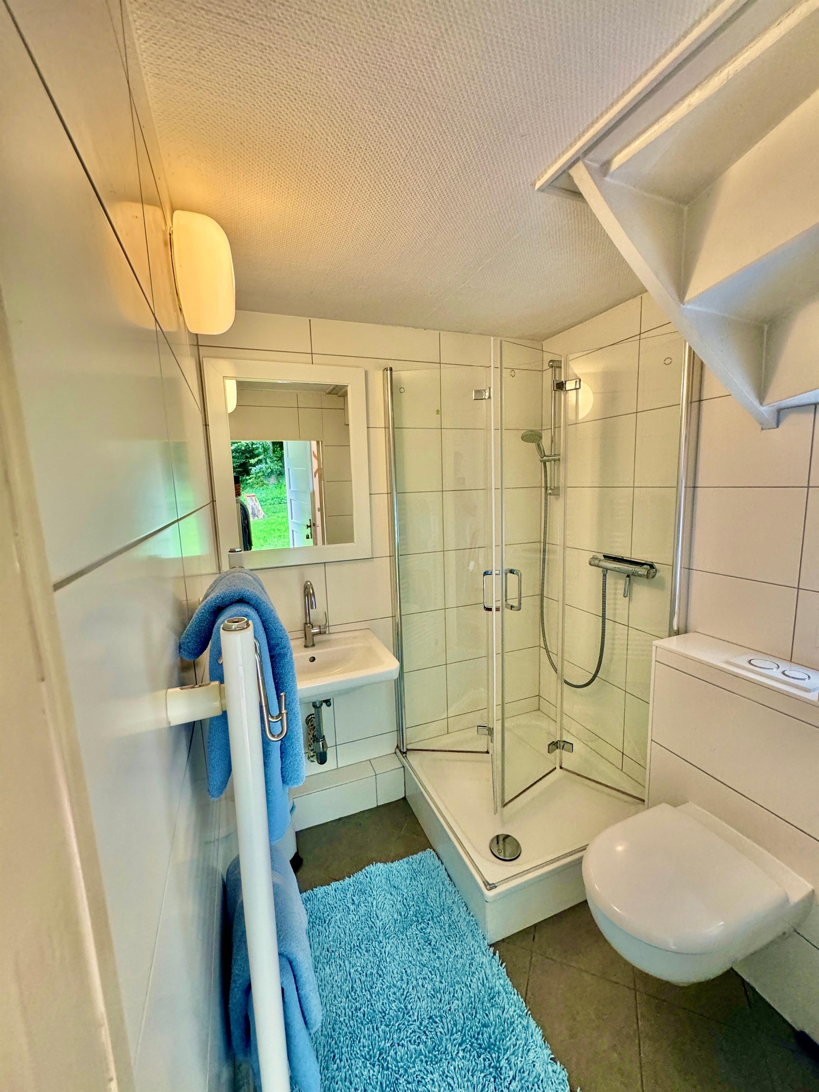 Im Erdgeschoss: 1 Wohnraum, Pantryküche, Dusche/WC (2,8 qm)