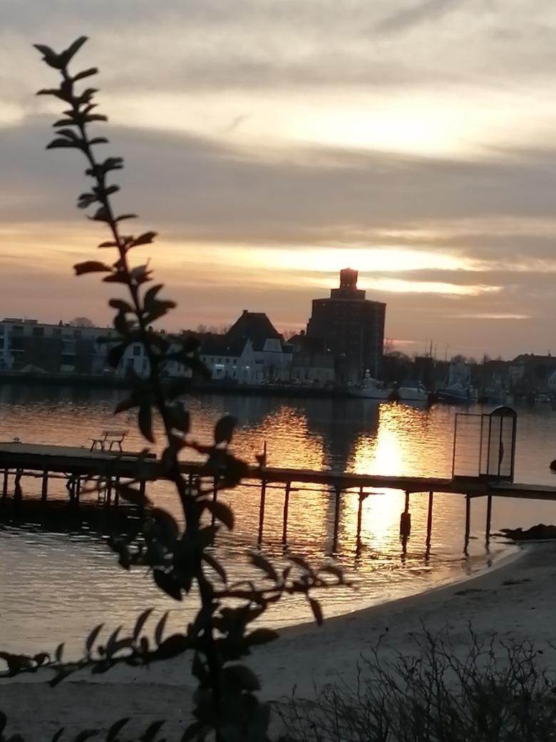 An Bord kann man sich einen Wein oder ein kühles Bier bestellen und den SONNENUNTERGANG über Eckernförde erleben.