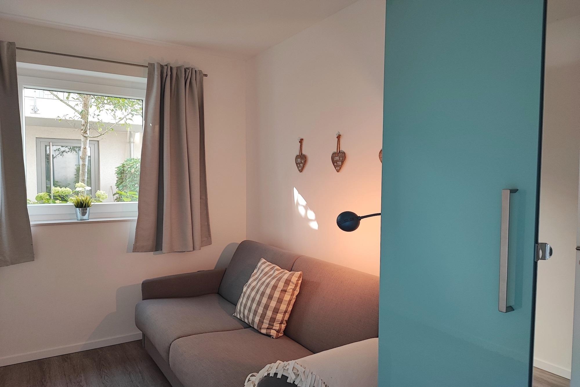 ? Wäschepakete optional wählbar gegen Gebühr: (Bettwäscheset/Handtuchset jeweils pro Aufenthalt/pro Person) können gegen eine Gebühr bestellt werden oder Selbst mitgebracht werden. Achten Sie bei Buchung an die gleiche Anzahl Wäschepakte wie gebuchten Personen. Ein Handtuchset pro Aufenthalt/pro Person ist ausgelegt für eine Woche (1 Duschtuch, 1 Handtuch), zusätzlich 1 Badvorlage pro Bad. Weitere Handtuchsets können bei längeren Aufenthalten z.B. ab dem 7. Tag gegen eine weitere Gebühr dazu bestellt werden ? 2 Einzelmatratzen á 90x200; Schlafsofa 140x200 ? Babys und Kleinkinder bis zum vollendeten 2. Lebensjahr kostenfrei (Babyreisebett/Babyhochstuhl vorhanden) ? Haustiere nicht erlaubt ? Parkplatz Nr. 5 in der Tiefgarage (inklusive) ? Höhe Toreinfahrt in die Tiefgarage ist 2,10 m ? Fahrradabstellraum (Gemeinschaftsraum) ? Nichtraucherwohnung