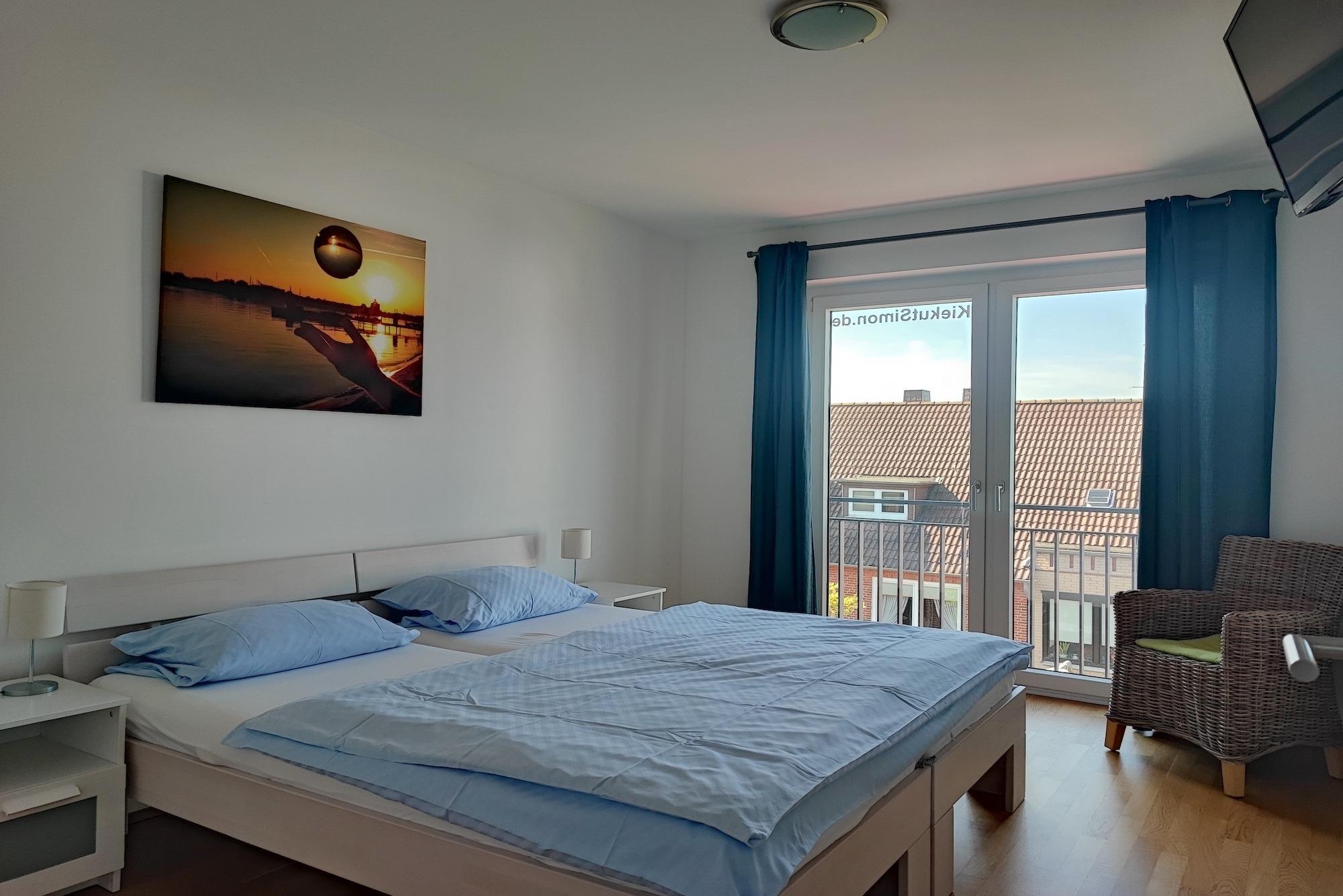 Die Ferienwohnung "Kiekut" (Bj. 2016, 4-Sterne) liegt nur 25m von der Hafenpromenade entfernt, auf der einen Seite schließen sich der Strand und seine lange Promenade an, auf der anderen Seite können Sie das Stadtzentrum und die naheliegende Gastronomie in wenigen Minuten erreichen.