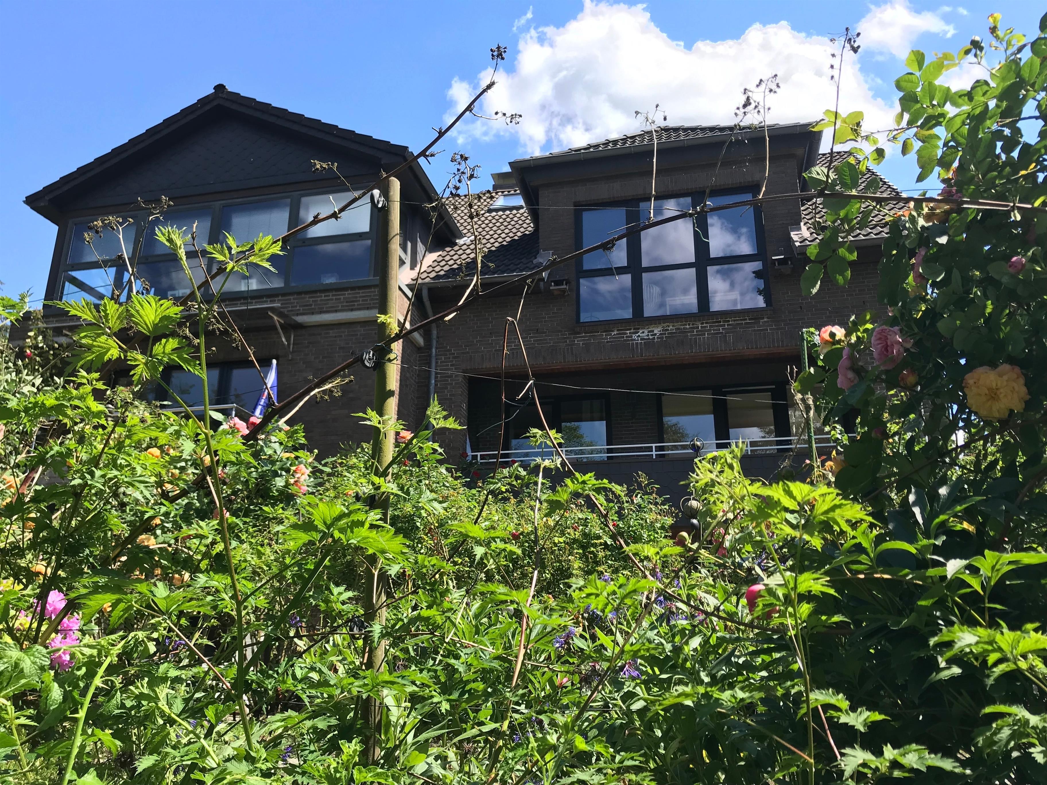 Unser Grundstück grenzt direkt an Wald- und Wiesenflächen, durch die der Lachsenbach fließt; wir blicken in die Natur, oft kommen uns Rehe und Eichhörnchen in unserem Garten besuchen.