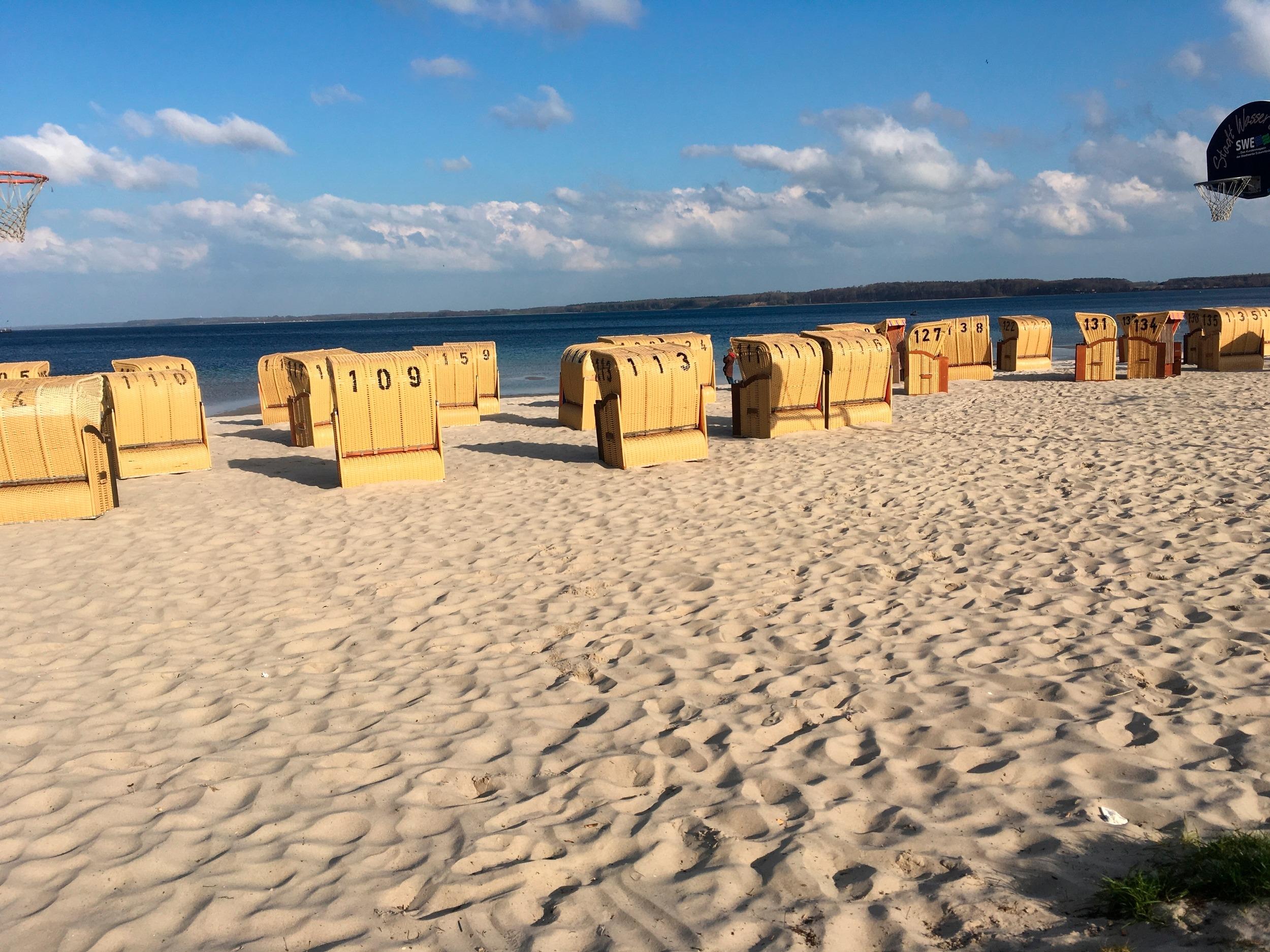 Strandkorb am Strand in der Nähe von der Strandbar.