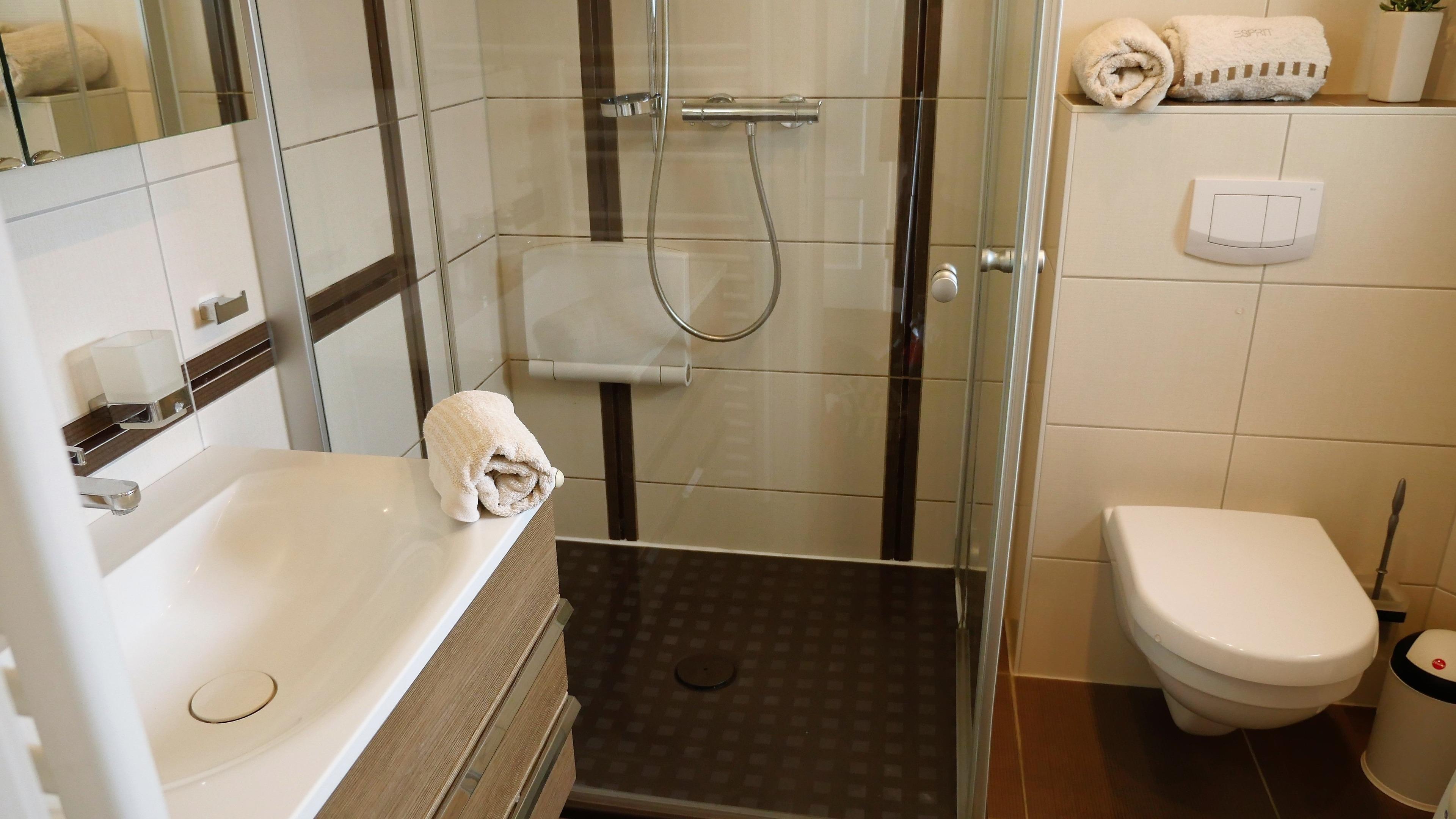 - WC und großzügige Ganzglasdusche (110x90cm) mit Raindance