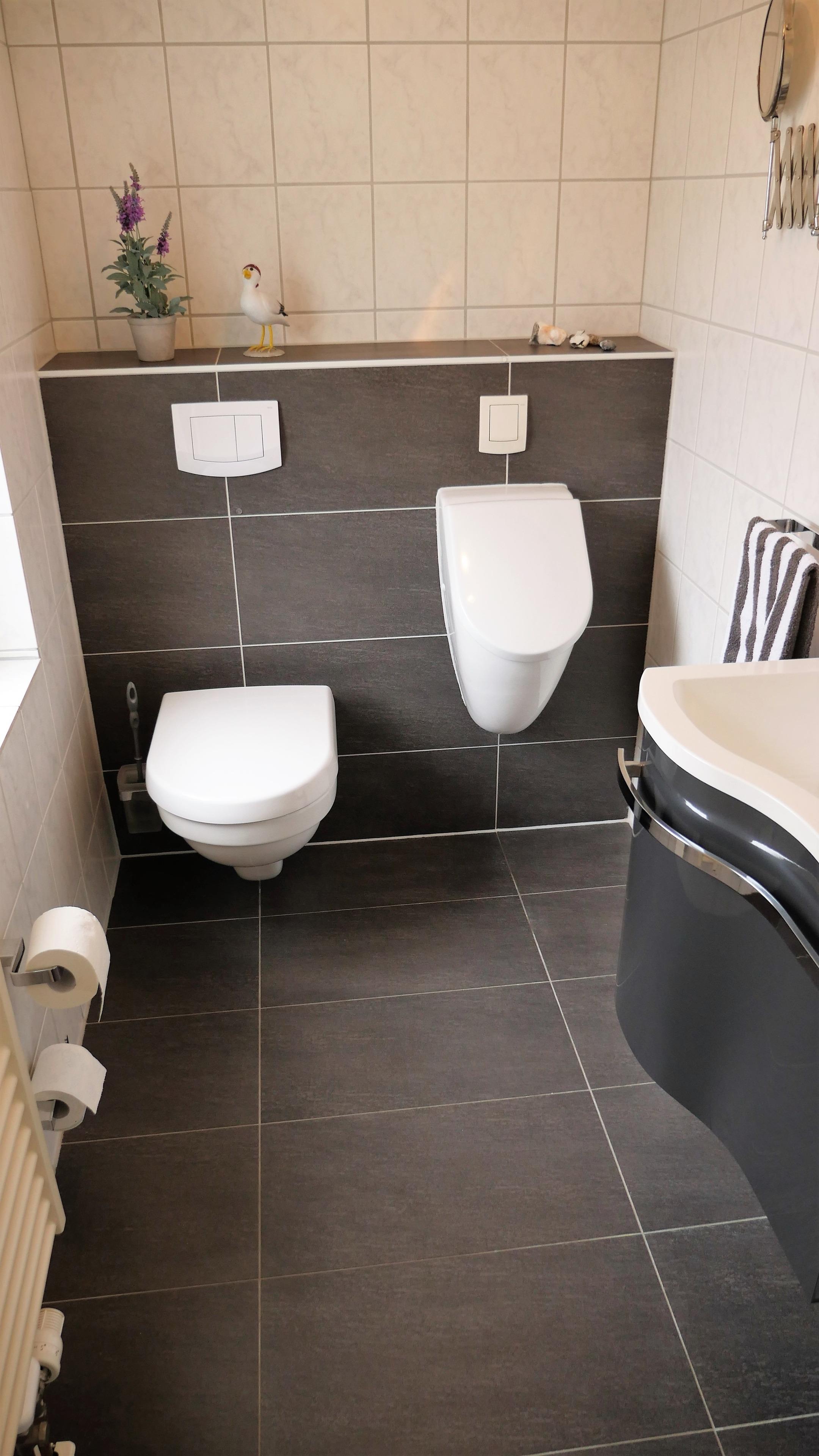 - WC, Urinal, Möbelwaschtisch, großer Spiegel
