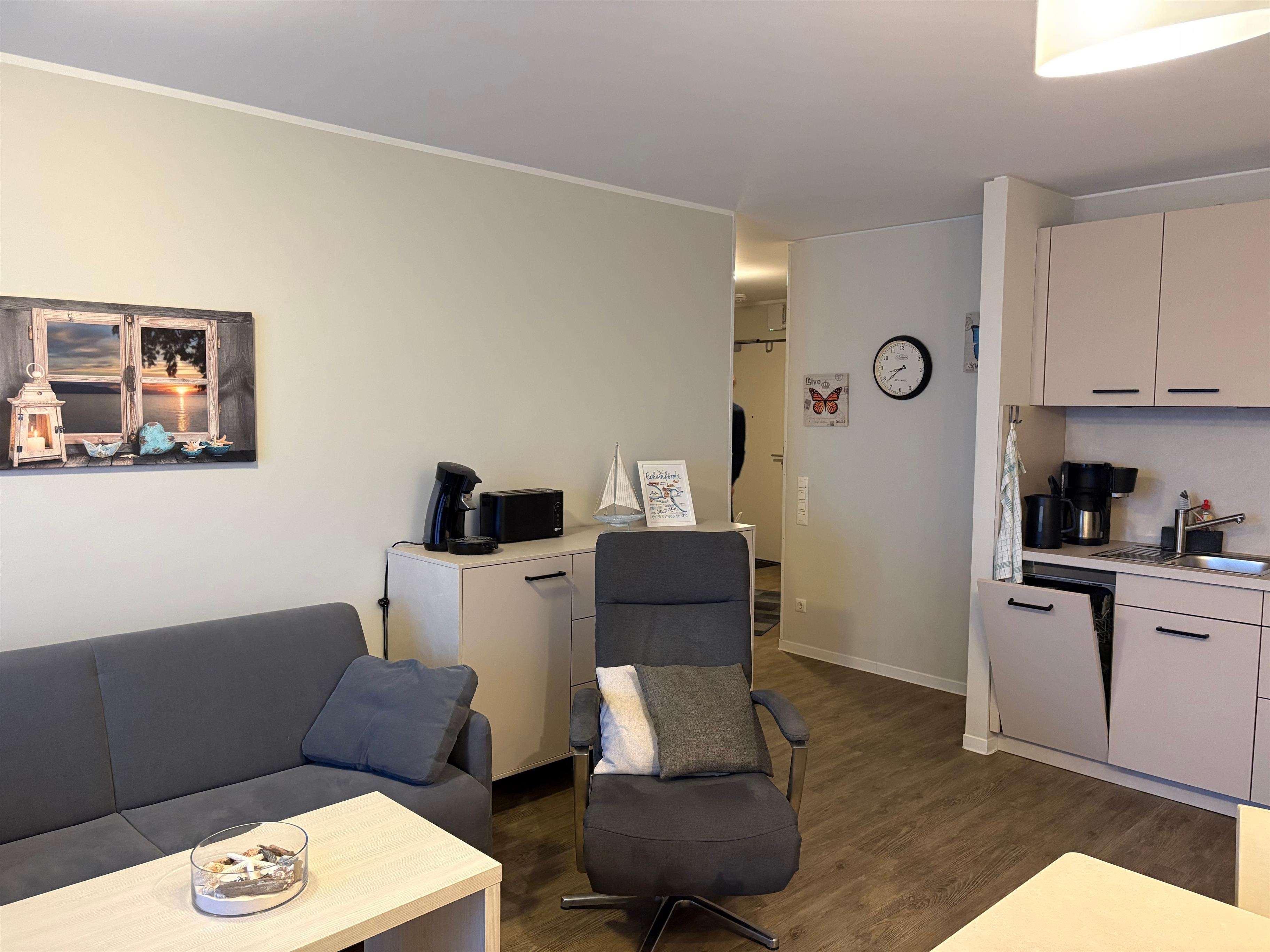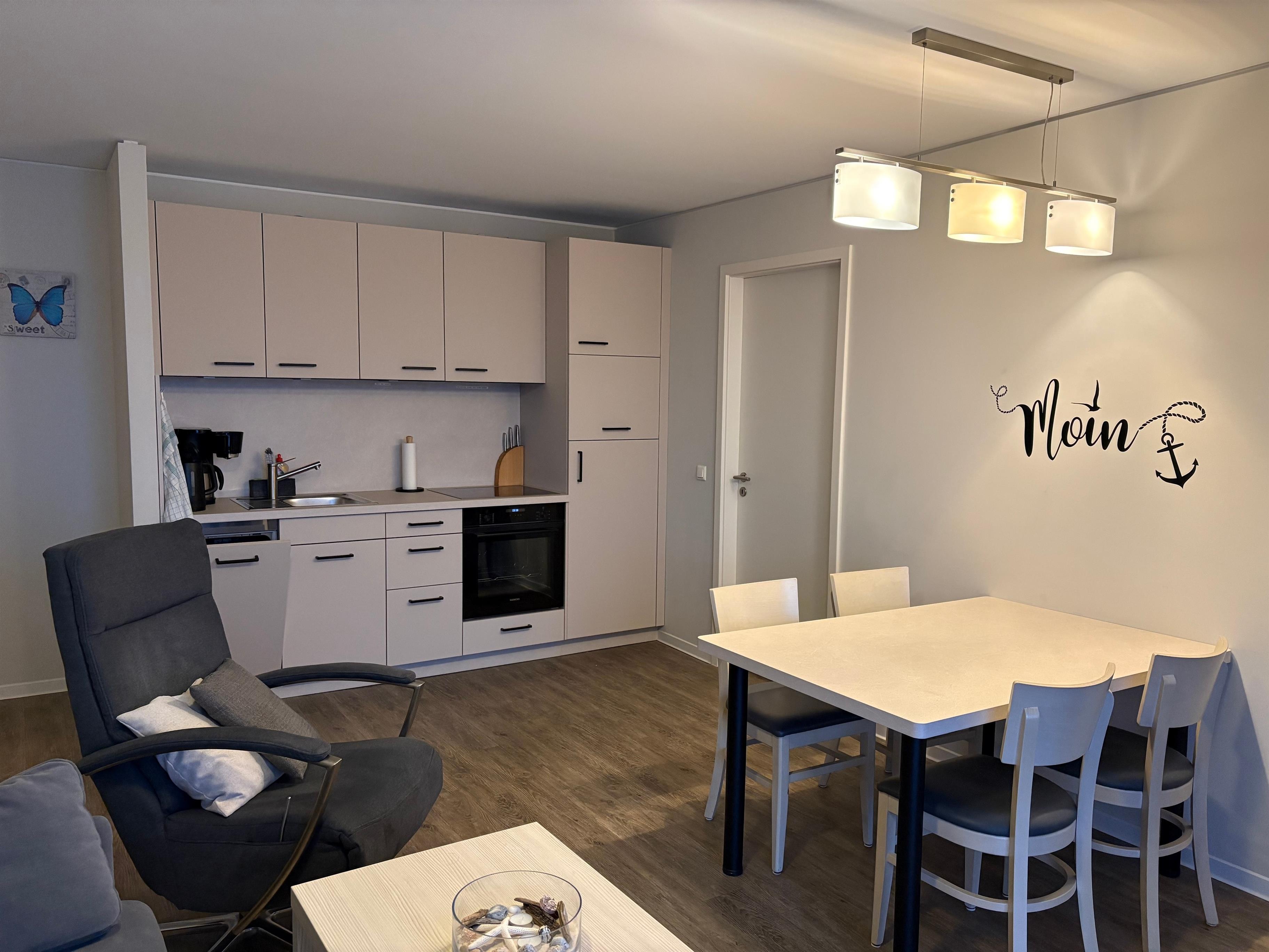 Das gut ausgestattete Apartment im 3 OG liegt in zentraler Lage mit Blick vom Balkon auf das Hafenquartier, die Innenstadt und den Binnenhafen. Auf dem Balkon können sie am späten Nachmittag und am Abend die Sonne genießen.