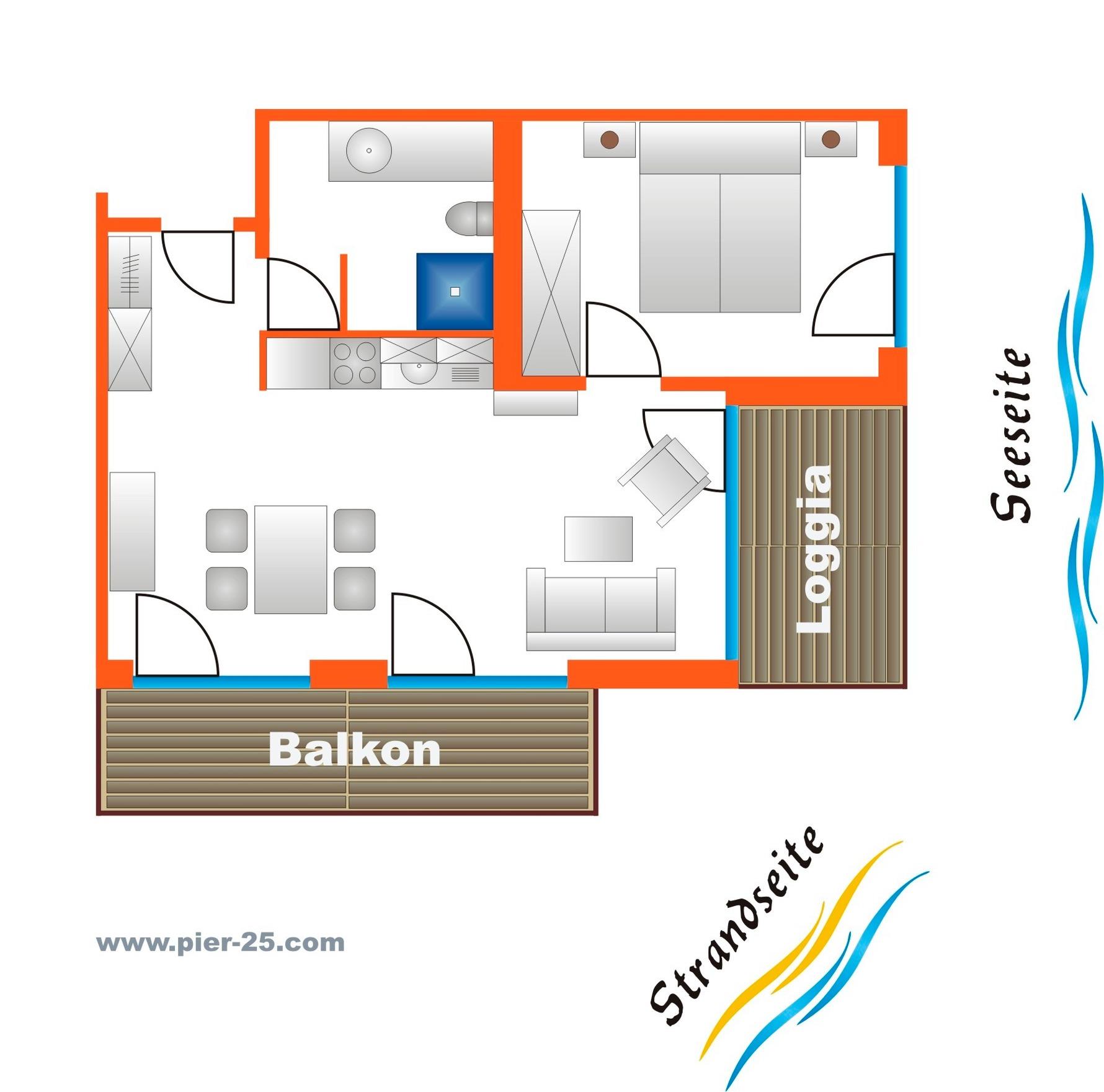Wenn Sie mit Freunden oder der Familie zusammen Urlaub machen möchten, empfehlen wir Ihnen, unser Apartment Pier-24 gleich mit zu buchen. Dieses liegt nebenan und bietet denselben Komfort. Somit ist jeder für sich und dennoch genießt man den Urlaub gemeinsam.