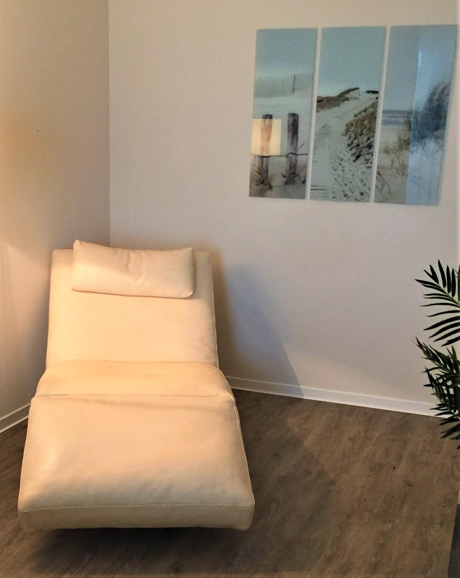 Auf der Loggia befindet sich (zusätzlich zur Esstisch im Wohnraum) ein weiterer Tisch mit Stühlen, sowie zwei Liegen