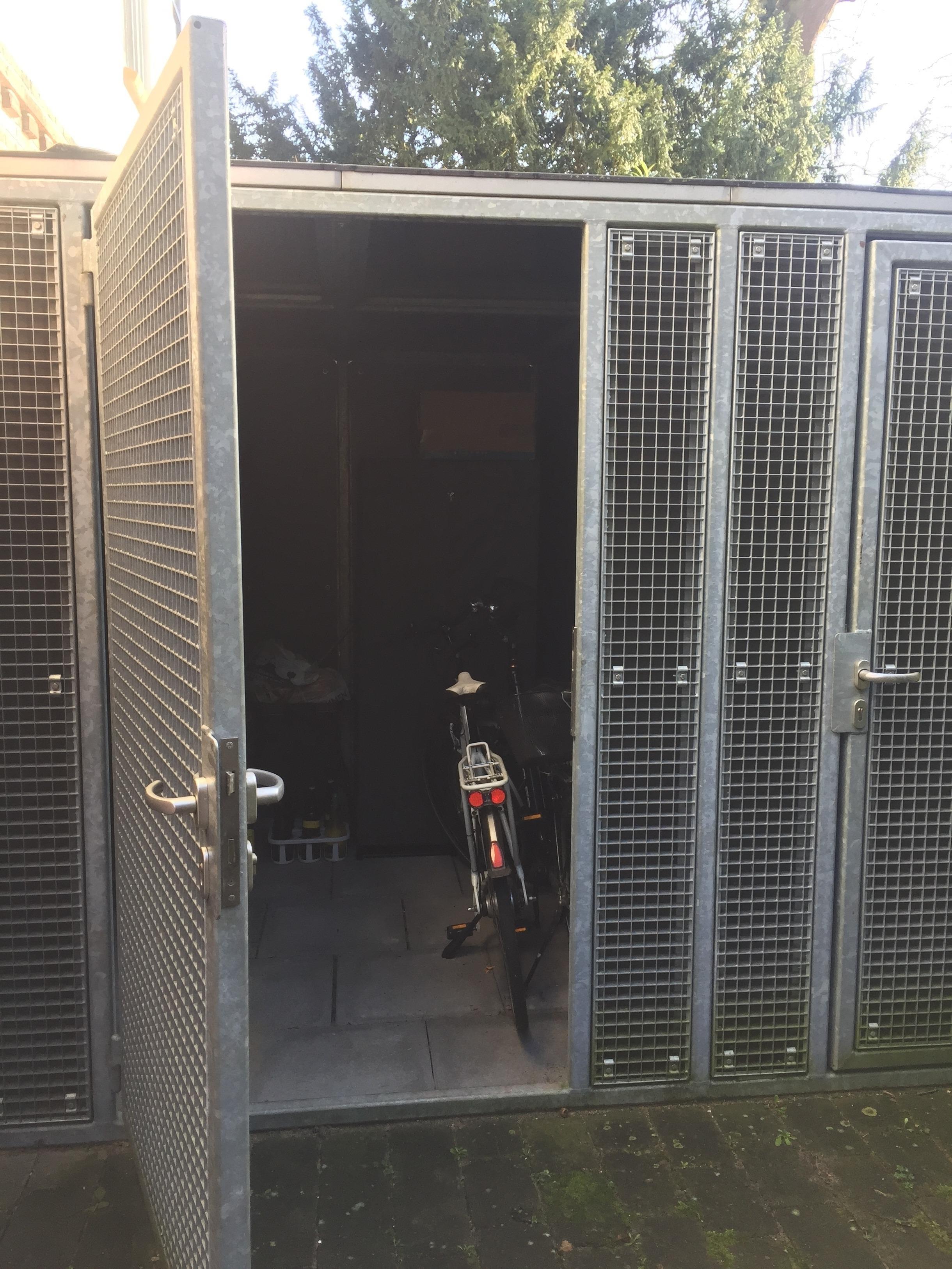 Zugehörig zur Wohnung ist ein großer, abschließbarer Schuppen in dem bis zu 3 Fahrräder Platz haben.