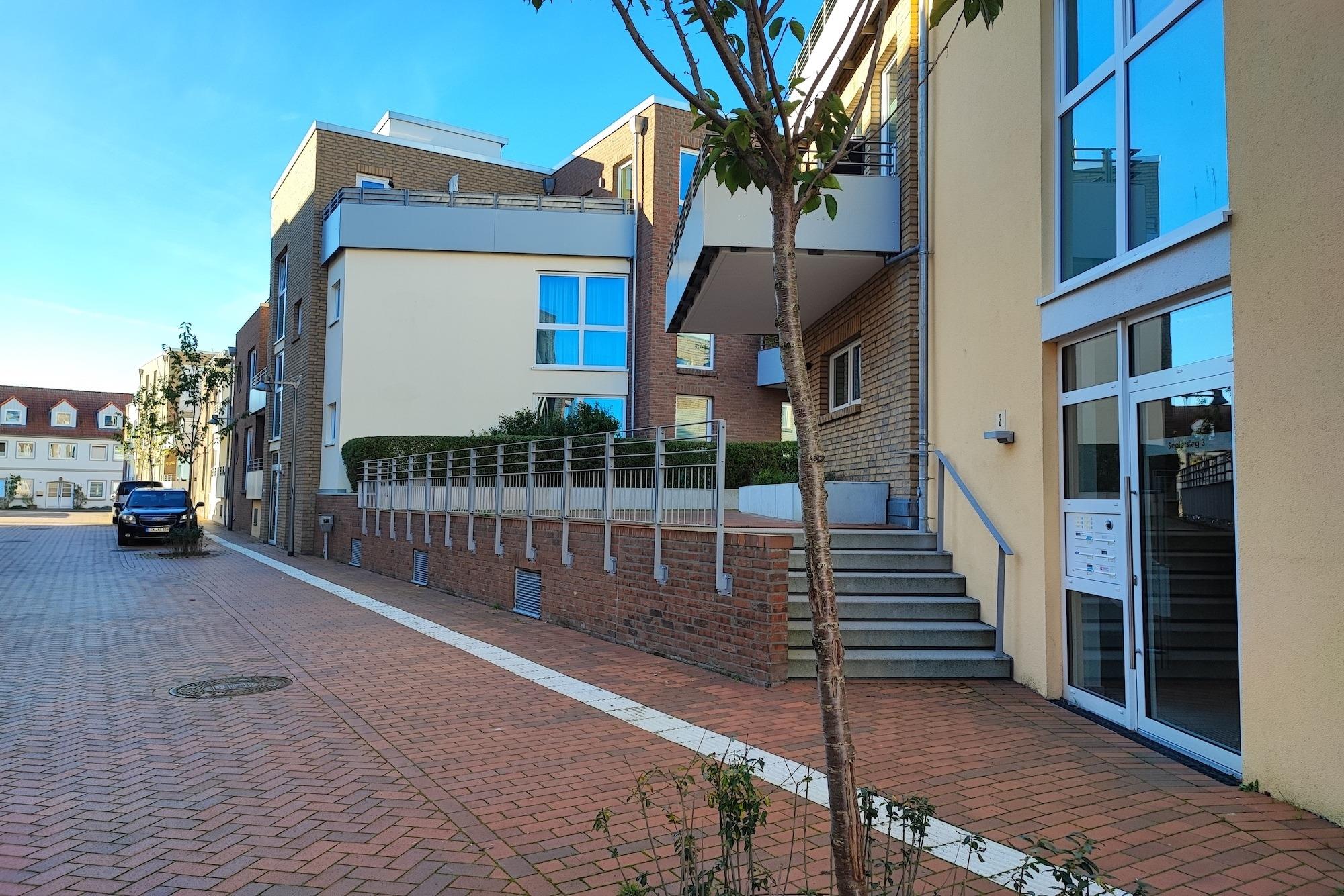Die "MEERBLICK" liegt im Gebäude "Seglersteg 3", das mit weiteren Gebäuden das "Quartier Hafenspitze" bildet; in exklusiver Lage direkt an der Hafenpromenade. Ein eigener PKW-Stellplatz in der hauseigenen Tiefgarage und das Erreichen Ihres Feriendomizils über einen Fahrstuhl, sorgen für ein entspanntes und barrierefreies Ankommen. Der Abstellraum für Fahrräder lädt Sie dazu ein, Eckernförde und seine Umgebung auch aktiv zu erkunden.