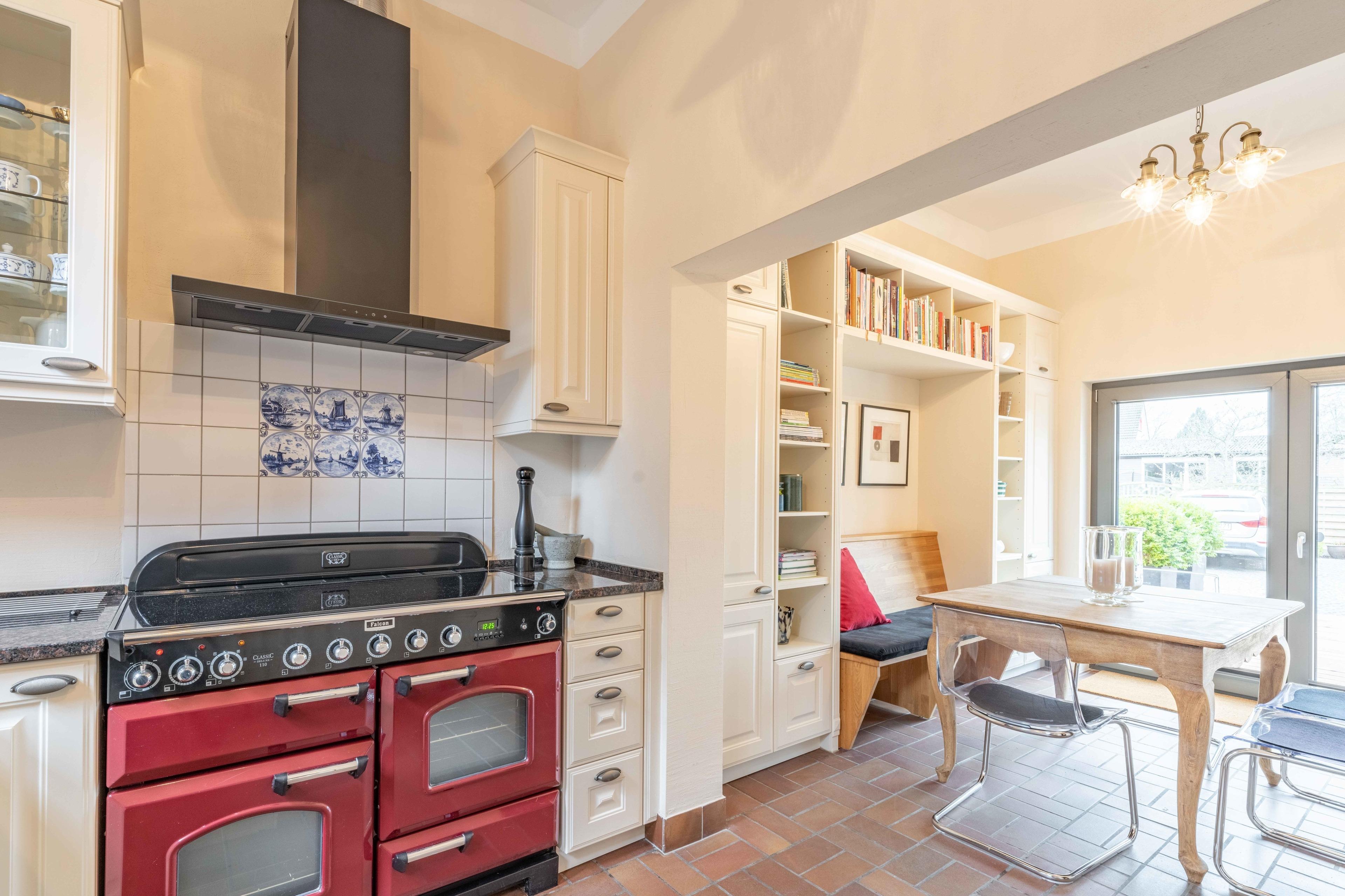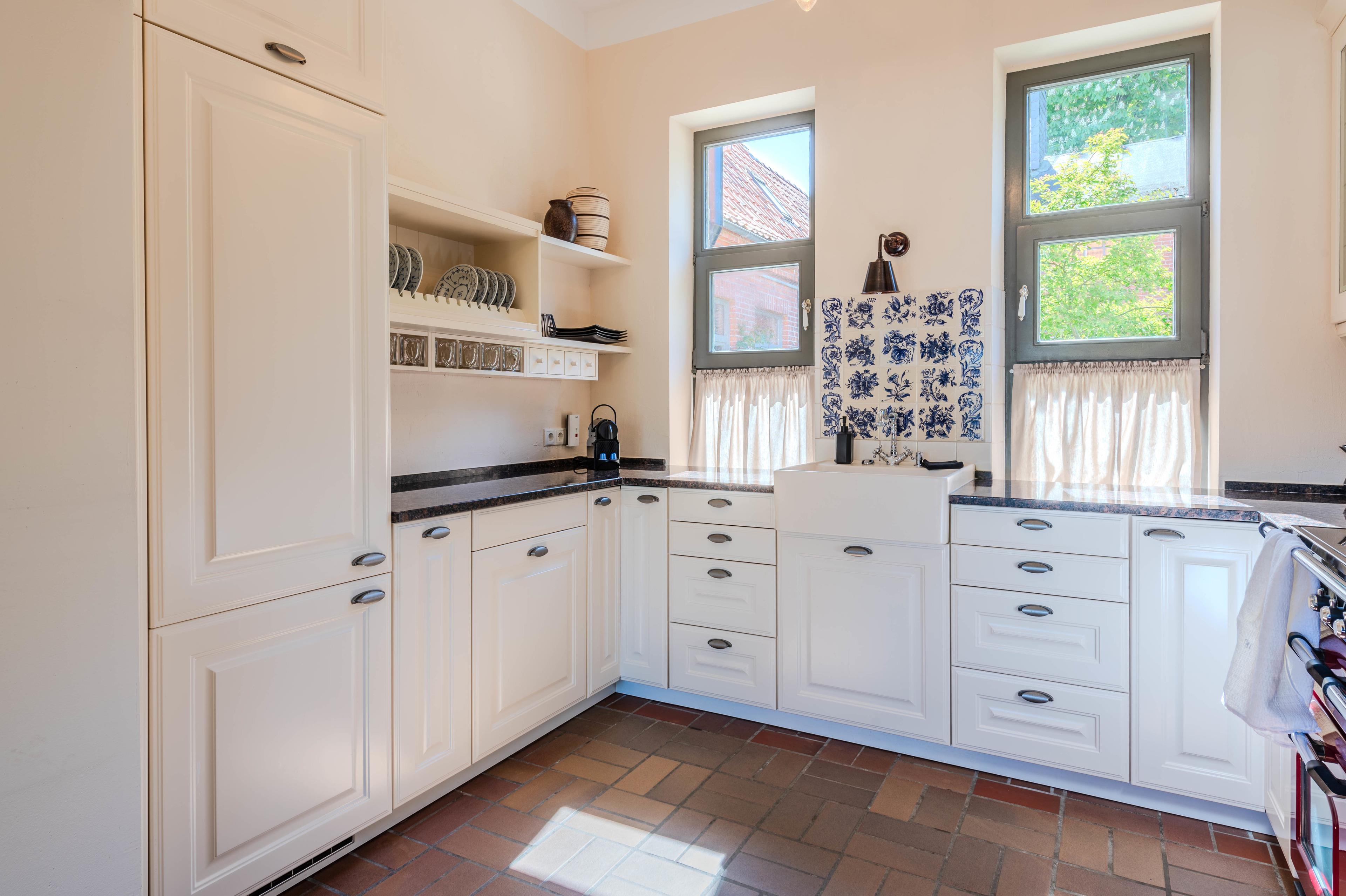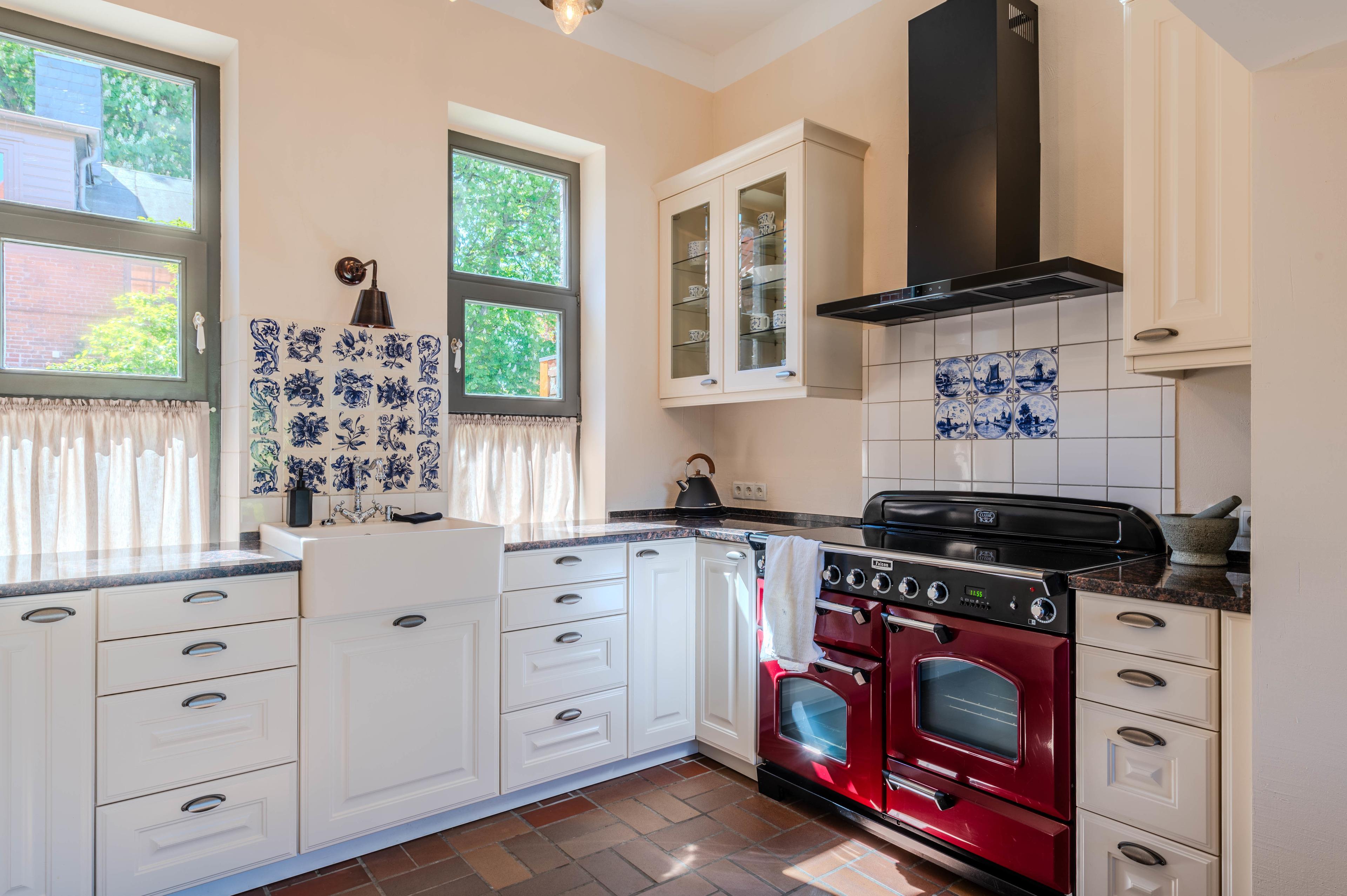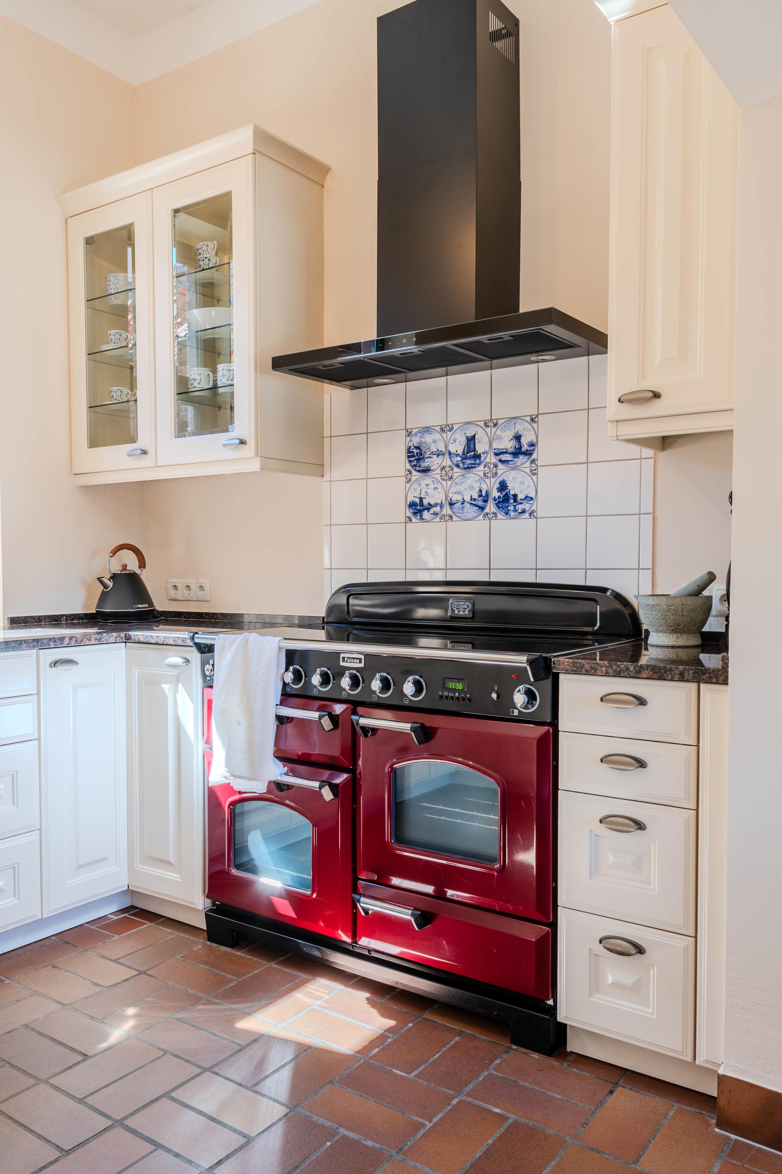 Die Ferienwohnung Landbäckerei 3 besticht durch eine traumhafte Landhausküche mit großem Range-Cooker und einer schönen Terrasse, die vor dem Esszimmer liegt.