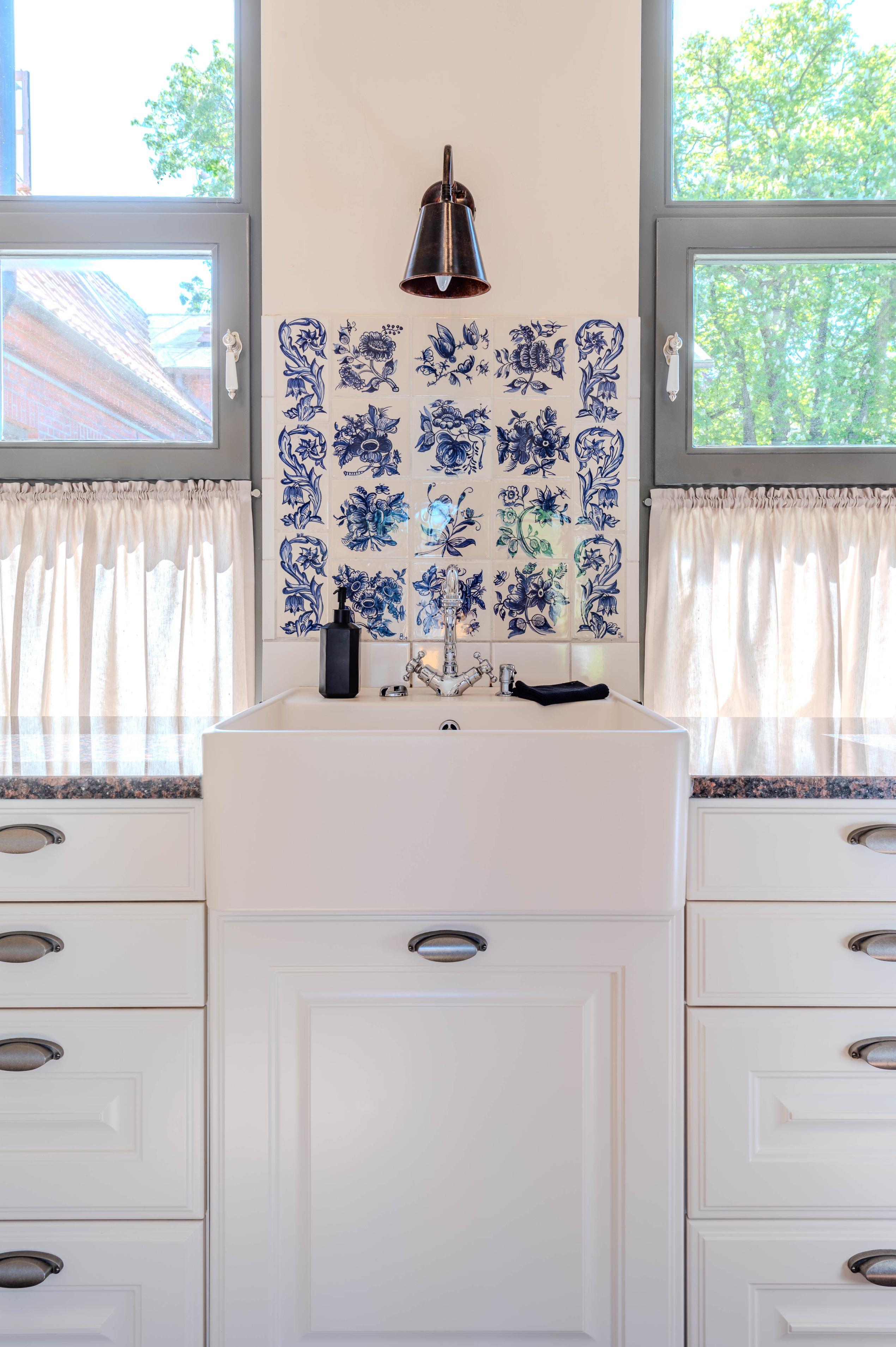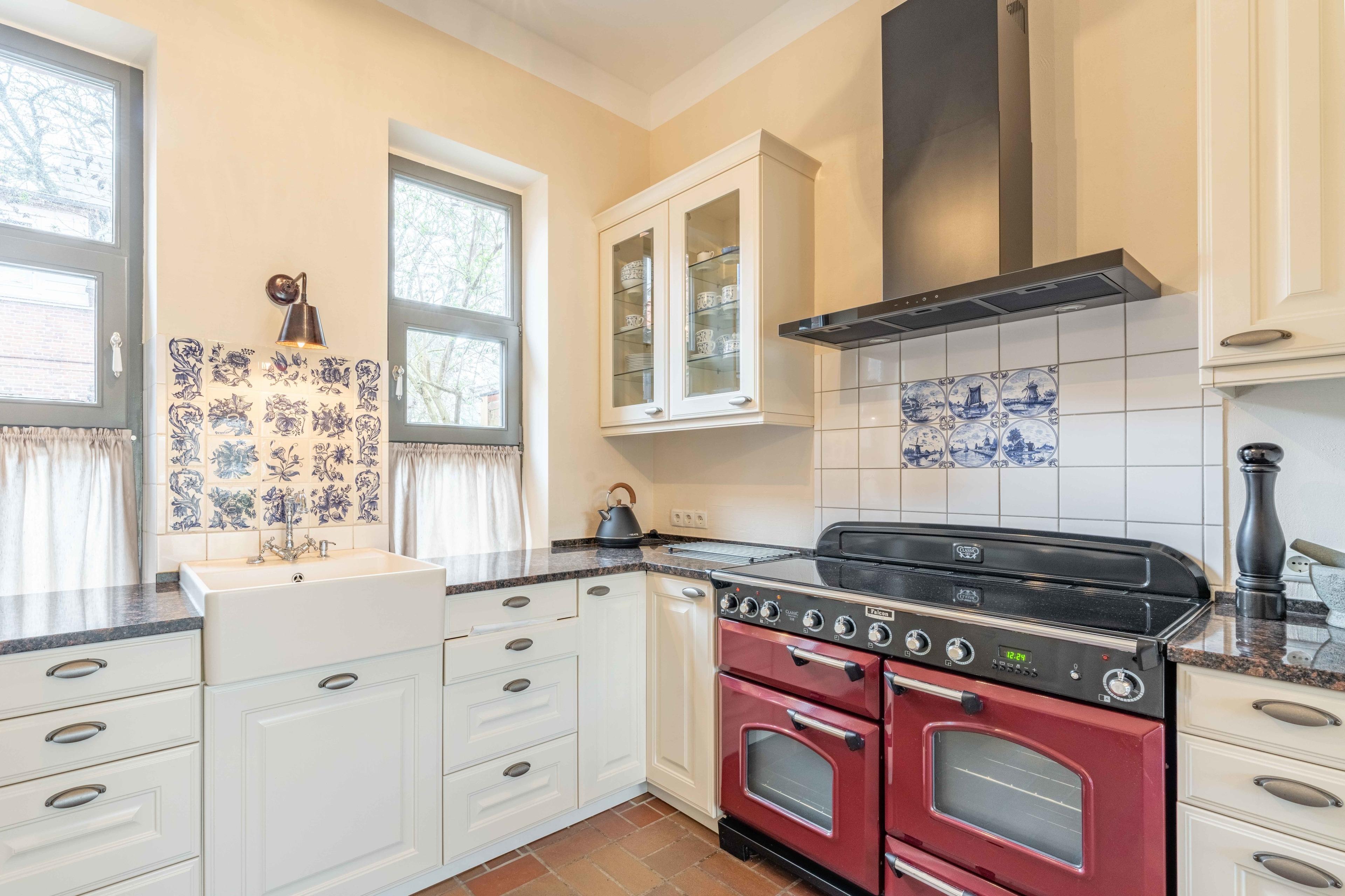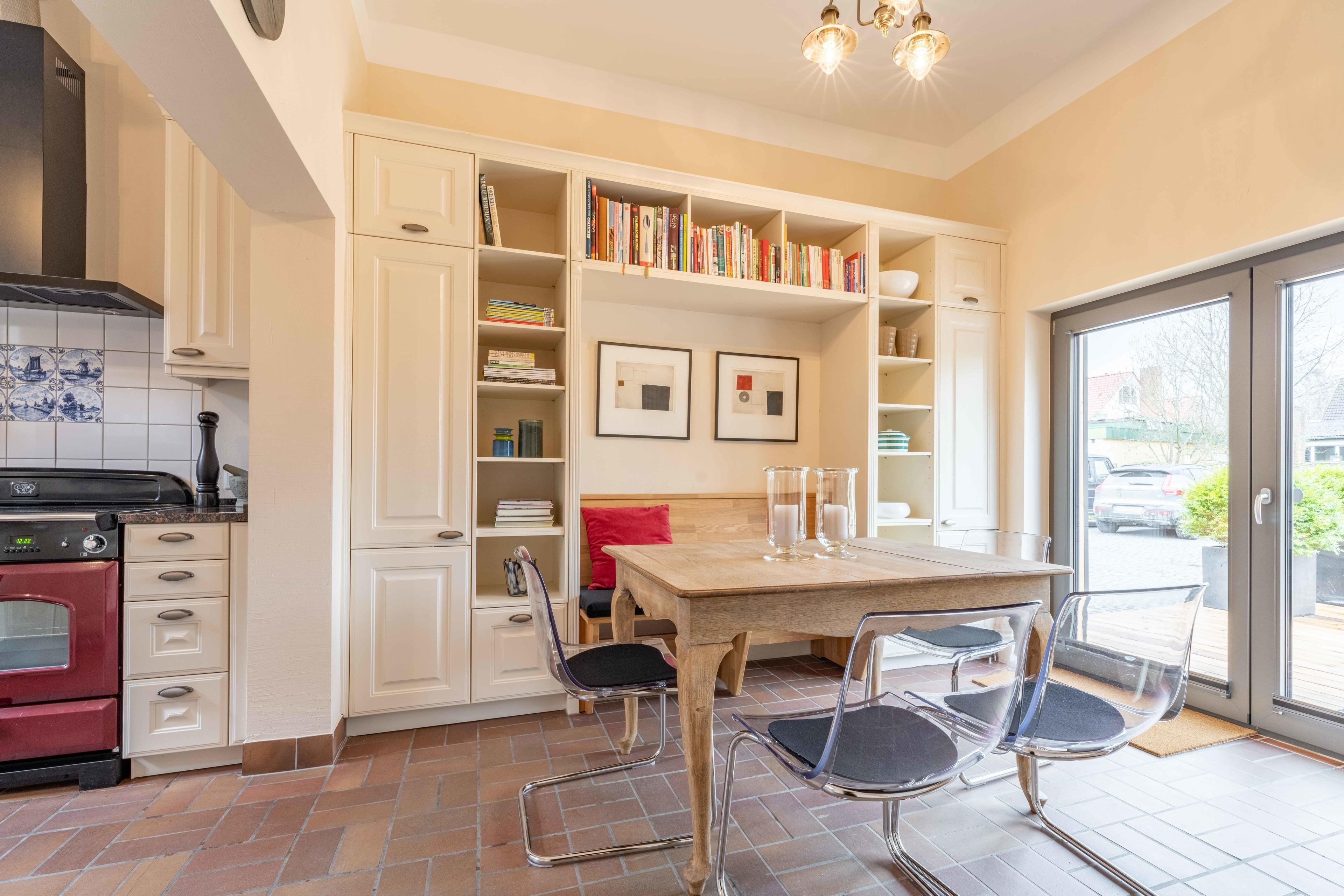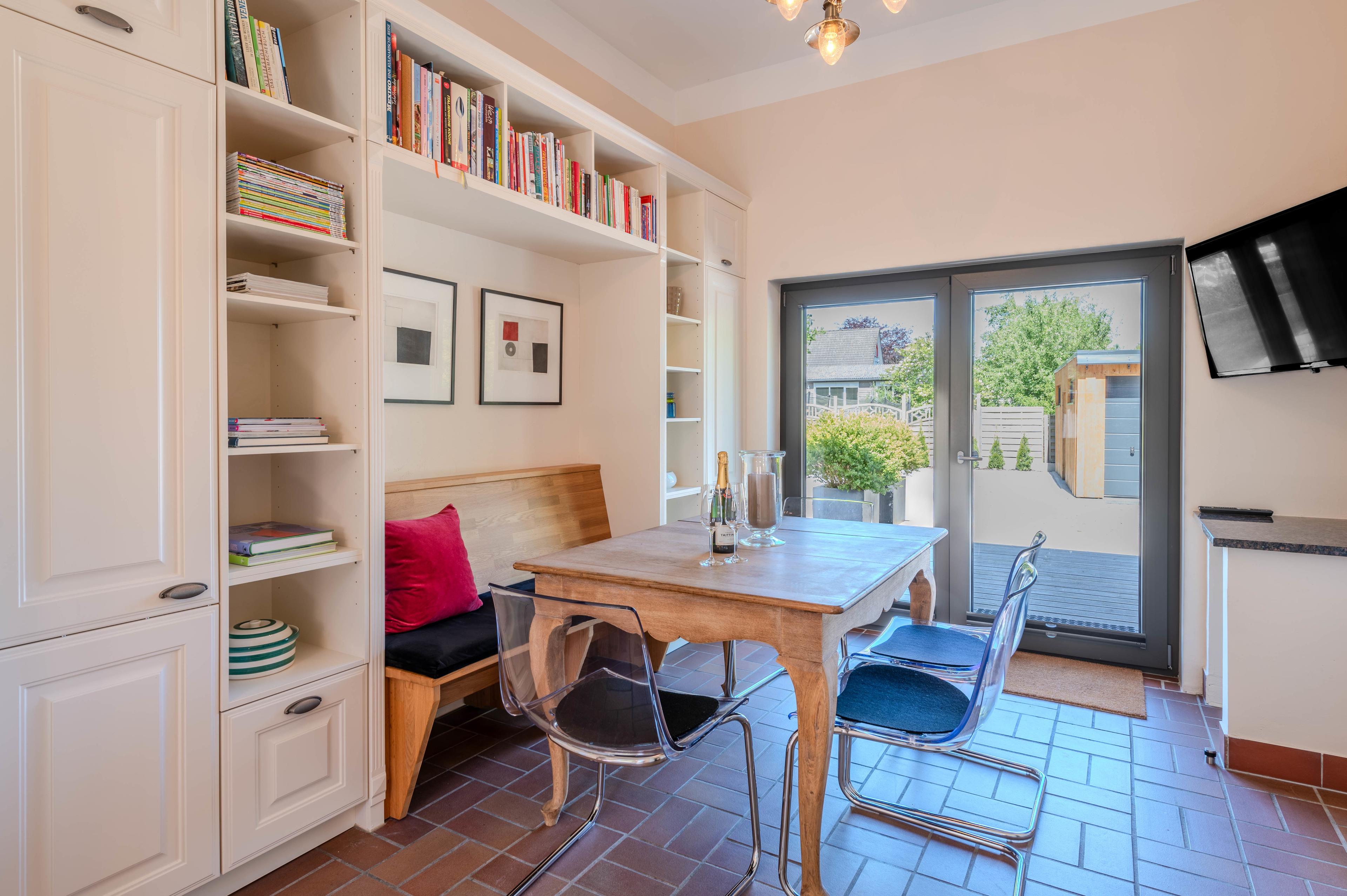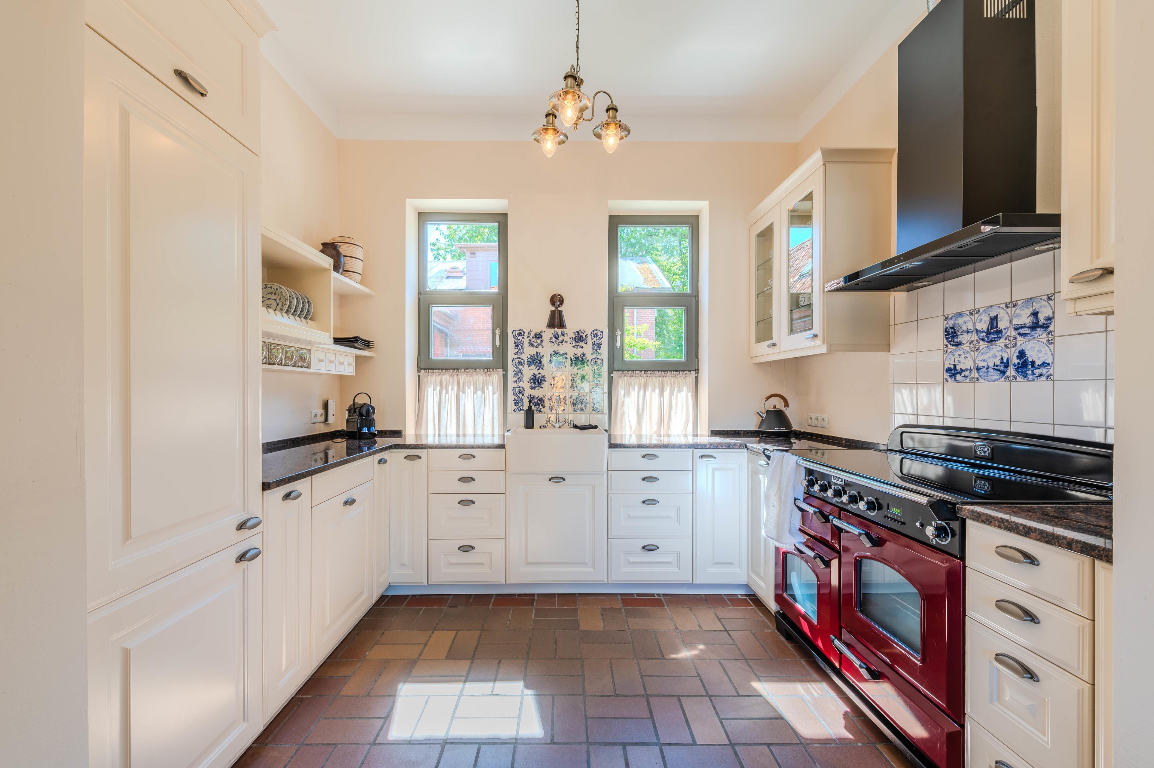Die Ferienwohnung Landbäckerei 3 besticht durch eine traumhafte Landhausküche mit großem Range-Cooker und einer schönen Terrasse, die vor dem Esszimmer liegt.
