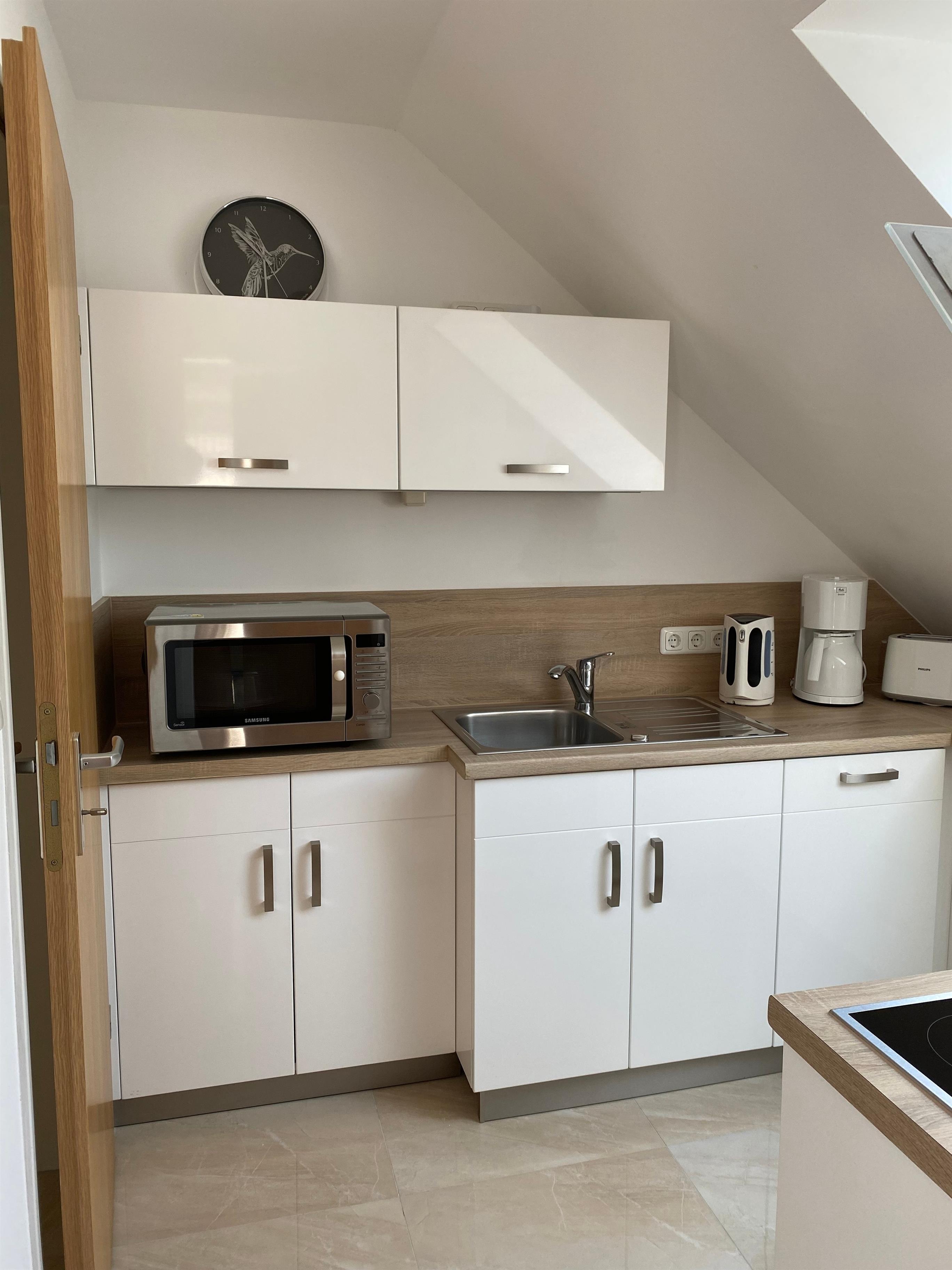 Willkommen in unserem renovierten Heimathafen in Eckernförde! Seit 2024 steht Ihnen eine frisch sanierte, 110 Quadratmeter große Ferienwohnung im ersten Stock zur Verfügung. Der exklusive Eingang im Hinterhof gewährleistet Diskretion und Privatsphäre. Vor dem Haupteingang erwartet Sie eine großzügige 6 Quadratmeter große Terrasse mit Sitzmöglichkeiten.