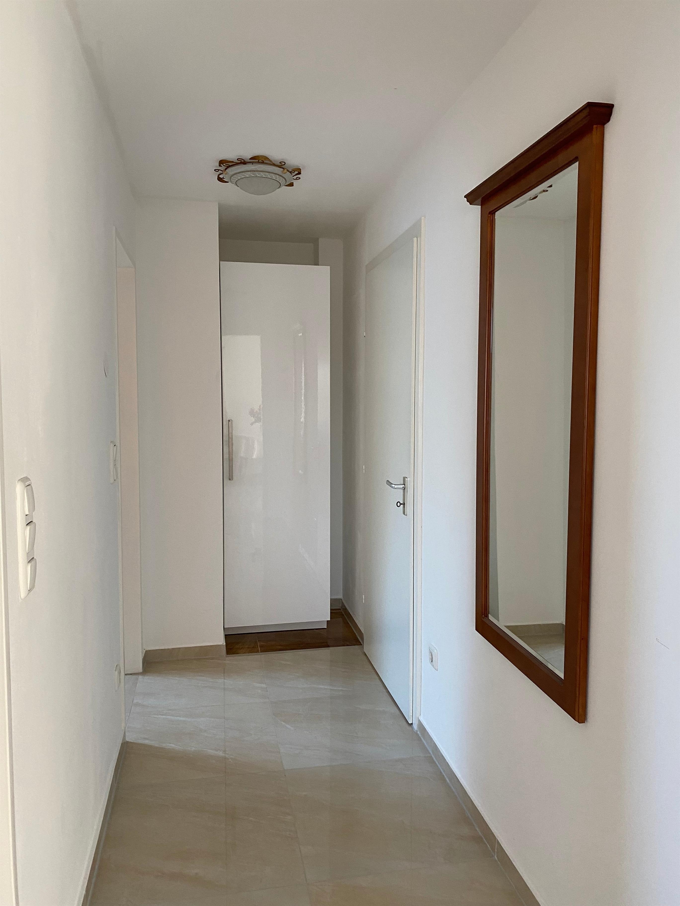 Im Inneren der Wohnung finden Sie zwei großzügige Schlafzimmer mit einem gemeinsamen Aufenthaltsbereich, eine gut beleuchtete Küche sowie ein Badezimmer mit Tageslicht. Beide Schlafzimmer sind mit Smart-TVs, Doppelbetten, Kleiderschränken und Ledersofas ausgestattet. In einem der Kleiderschränke befindet sich ein Safe. Die Unterhaltungselektronik umfasst eine Surround-Anlage mit CD-Laufwerk, AUX, Bluetooth, HDMI und Radio.