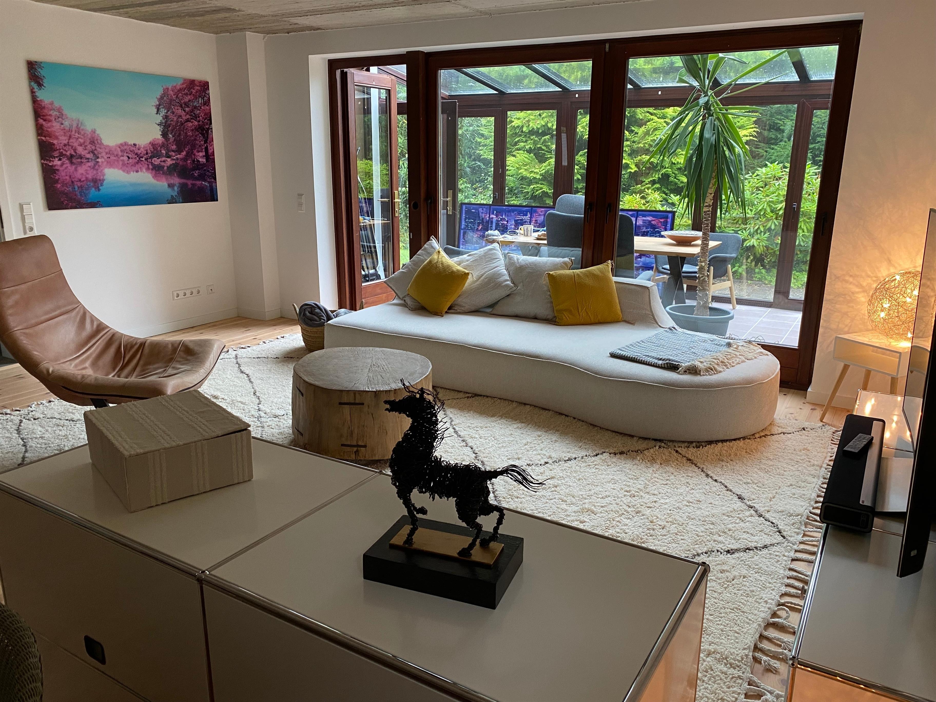 Ein lichtdurchfluteter Wintergarten grenzt direkt an dem großen Wohn- und Essbereich.