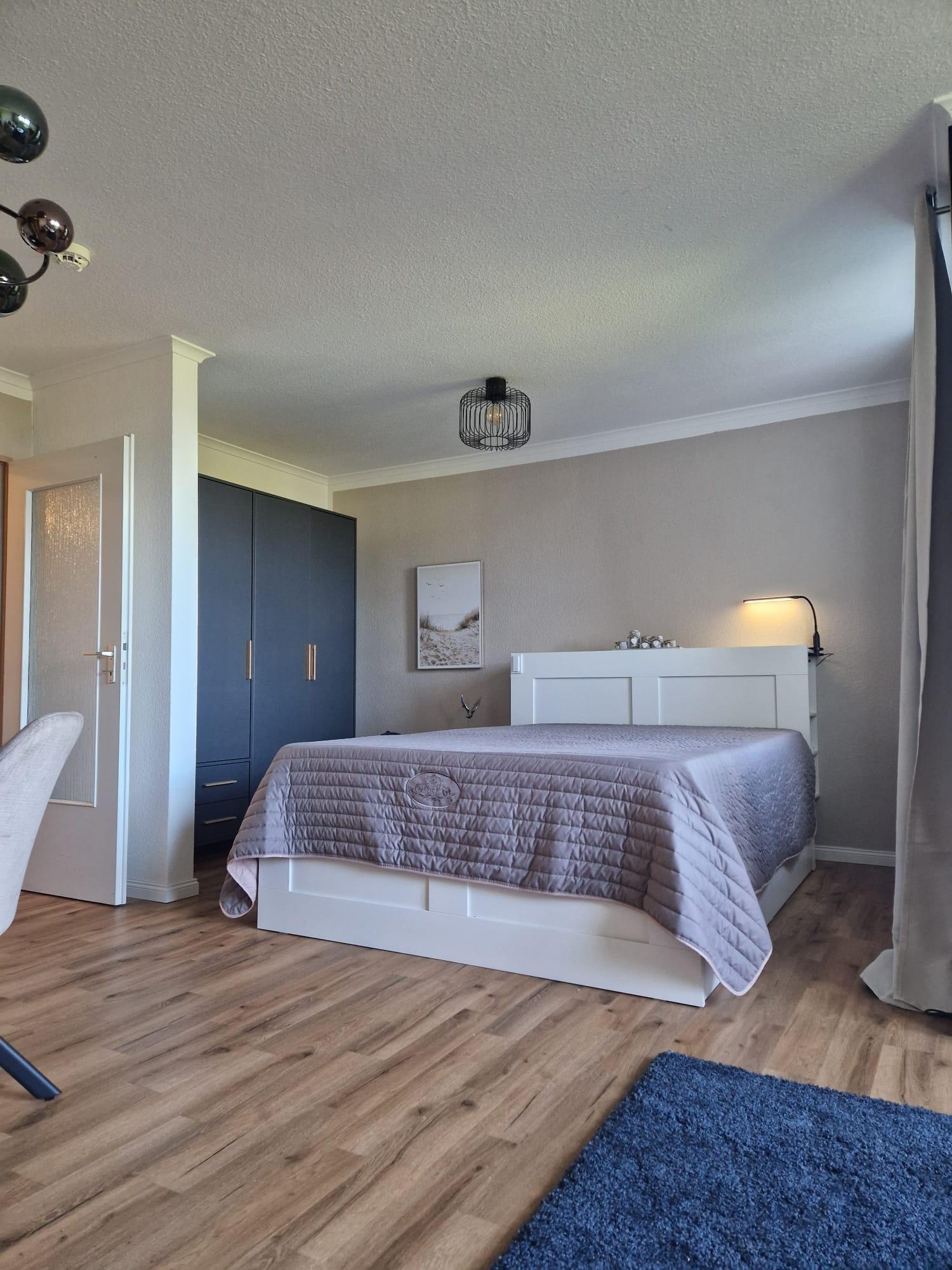 - Doppelbett (160x200 cm) und großem Kleiderschrank