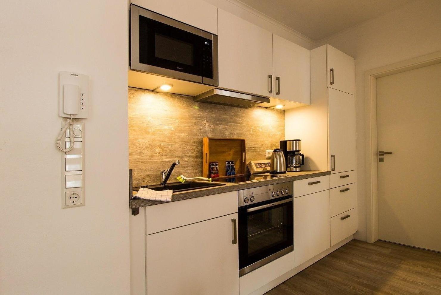 Für die Unterhaltung im Wohnbereich befindet sich ein Blu-Ray Player, eine Stereoanlage und auch ein Flachbildfernseher. Die Küchenzeile ist mit einem Geschirrspüler, einem Backofen sowie einer Kaffeemaschine ausgestattet.