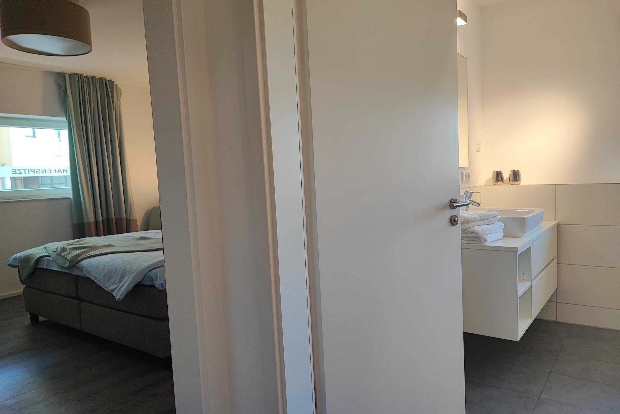 Die Ferienwohnung "Hafenspitze" (Bj. 2018, 4-Sterne) liegt nur 25m von der Hafenpromenade entfernt, auf der einen Seite schließen sich der Strand und seine lange Promenade an, auf der anderen Seite können Sie das Stadtzentrum und die naheliegende Gastronomie in wenigen Minuten erreichen.