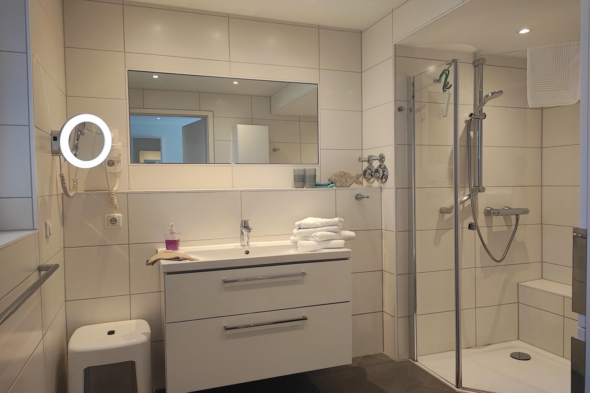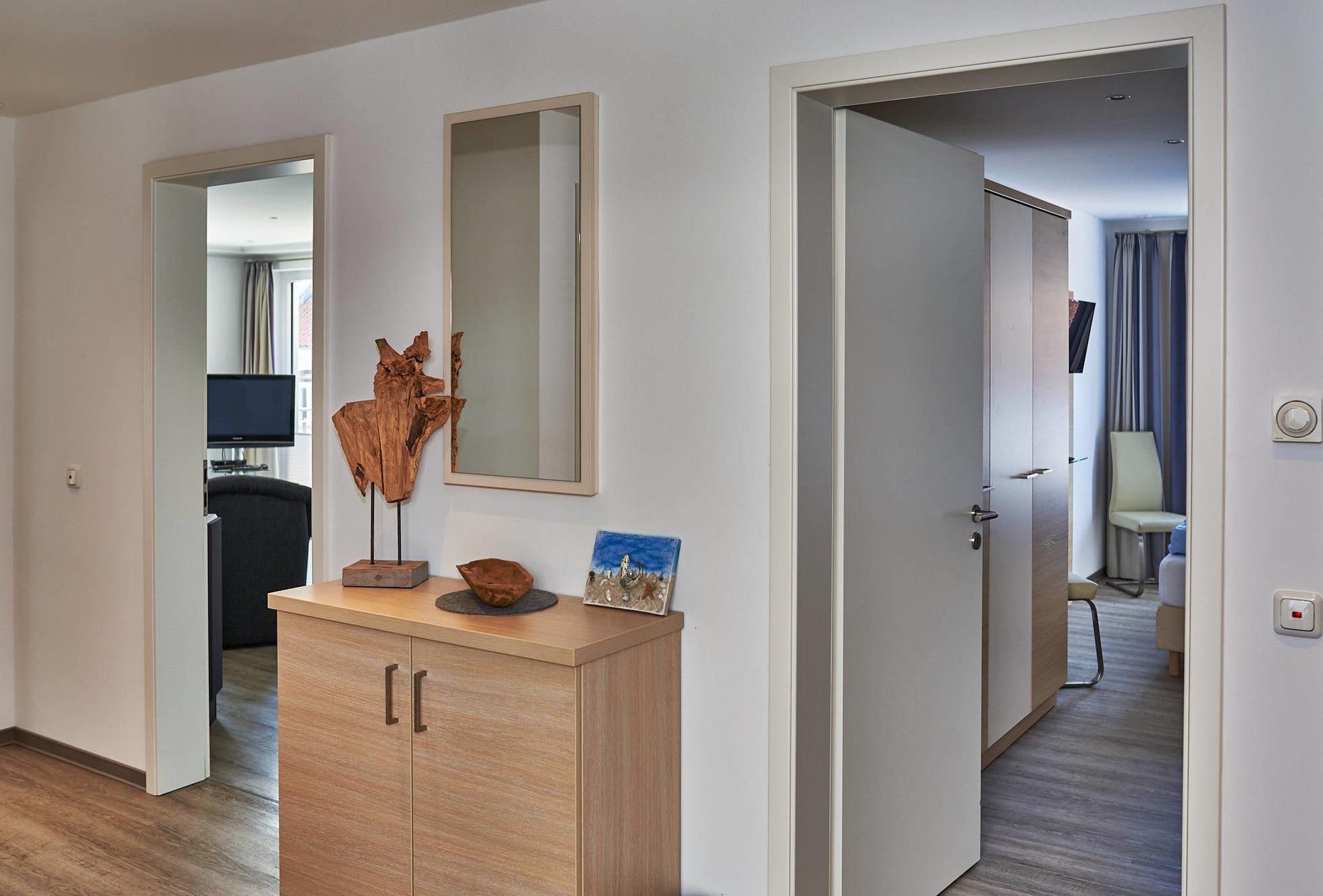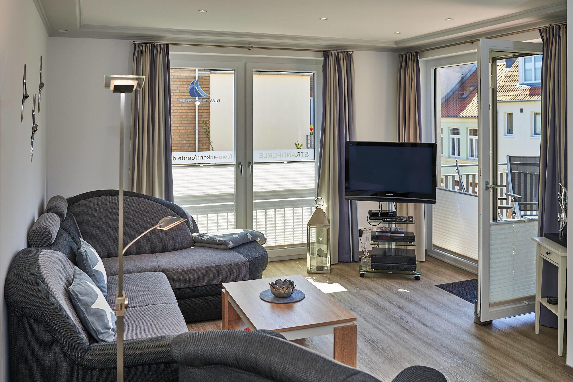 Die Ferienwohnung "Strandperle" (Bj. 2016, 4-Sterne) liegt nur 50m von der Hafenpromenade entfernt, auf der einen Seite schließen sich der Strand und seine lange Promenade an, auf der anderen Seite können Sie das Stadtzentrum und die naheliegende Gastronomie in wenigen Minuten erreichen.