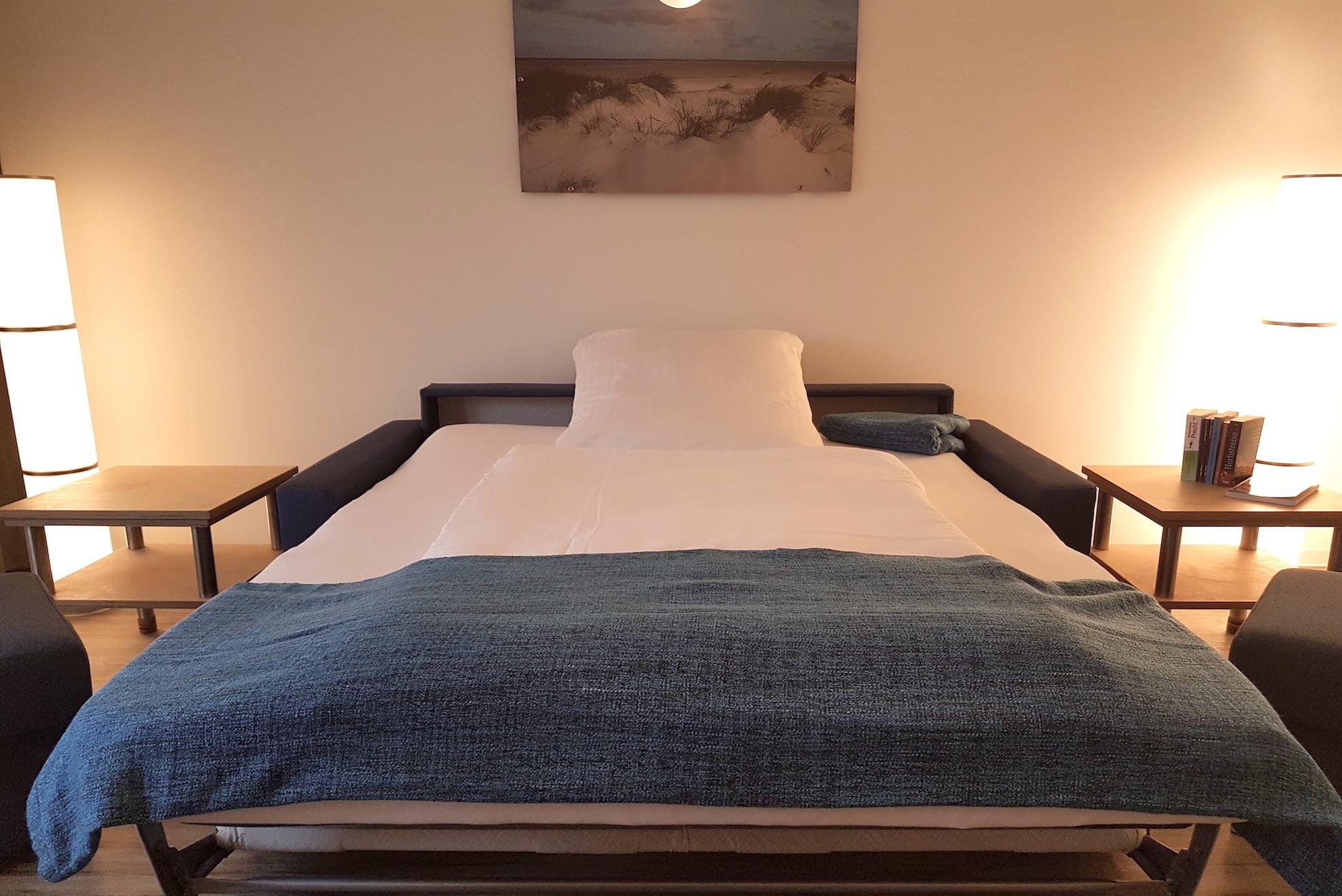 ? Wäschepakete optional wählbar gegen Gebühr: (Bettwäscheset/Handtuchset jeweils pro Aufenthalt/pro Person) können gegen eine Gebühr bestellt werden oder Selbst mitgebracht werden. Achten Sie bei Buchung an die gleiche Anzahl Wäschepakte wie gebuchten Personen. Ein Handtuchset pro Aufenthalt/pro Person ist ausgelegt für eine Woche (1 Duschtuch, 1 Handtuch), zusätzlich 1 Badvorlage pro Bad. Weitere Handtuchsets können bei längeren Aufenthalten z.B. ab dem 7. Tag gegen eine weitere Gebühr dazu bestellt werden ? 1 Topper 180x200; Schlafsofa 140x200 ? Babys und Kleinkinder bis zum vollendeten 2. Lebensjahr kostenfrei (Verleih Babyreisebett gegen Gebühr, Babyhochstuhl kostenfrei) ? Haustiere nicht erlaubt ? Parkplatz Nr. 12 in der Tiefgarage (inklusive) ? Höhe Toreinfahrt in die Tiefgarage ist 2,10 m ? Fahrradabstellraum Pier 6 (Nr.07) ? Nichtraucherwohnung