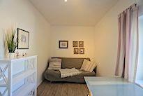 Auch zur Straße gelegen liegt ein weiteres kleines Zimmer mit einem Schreibtisch und einem Schlafsofa. Hier können problemlos zwei weitere Personen untergebracht werden.