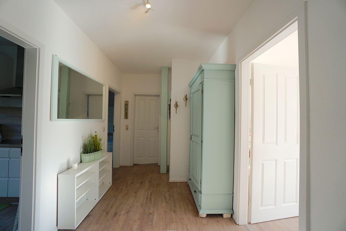 Über einen separaten Eingang gelangt man in die Wohnung, der großzügige Eingangsbereich bietet viel Platz für das Abstellen von Koffern, Einkäufen, aber auch Kinderwagen usw.