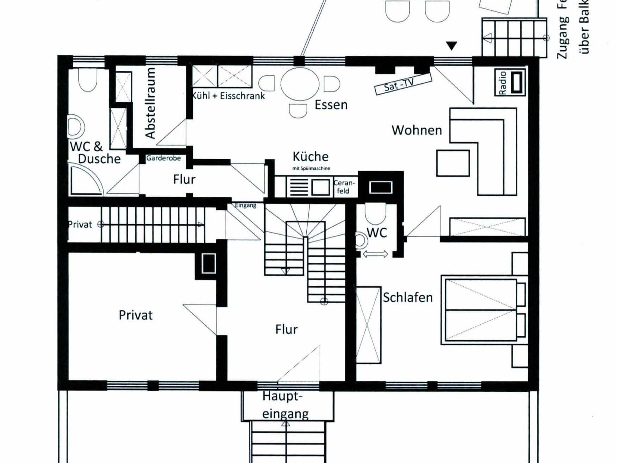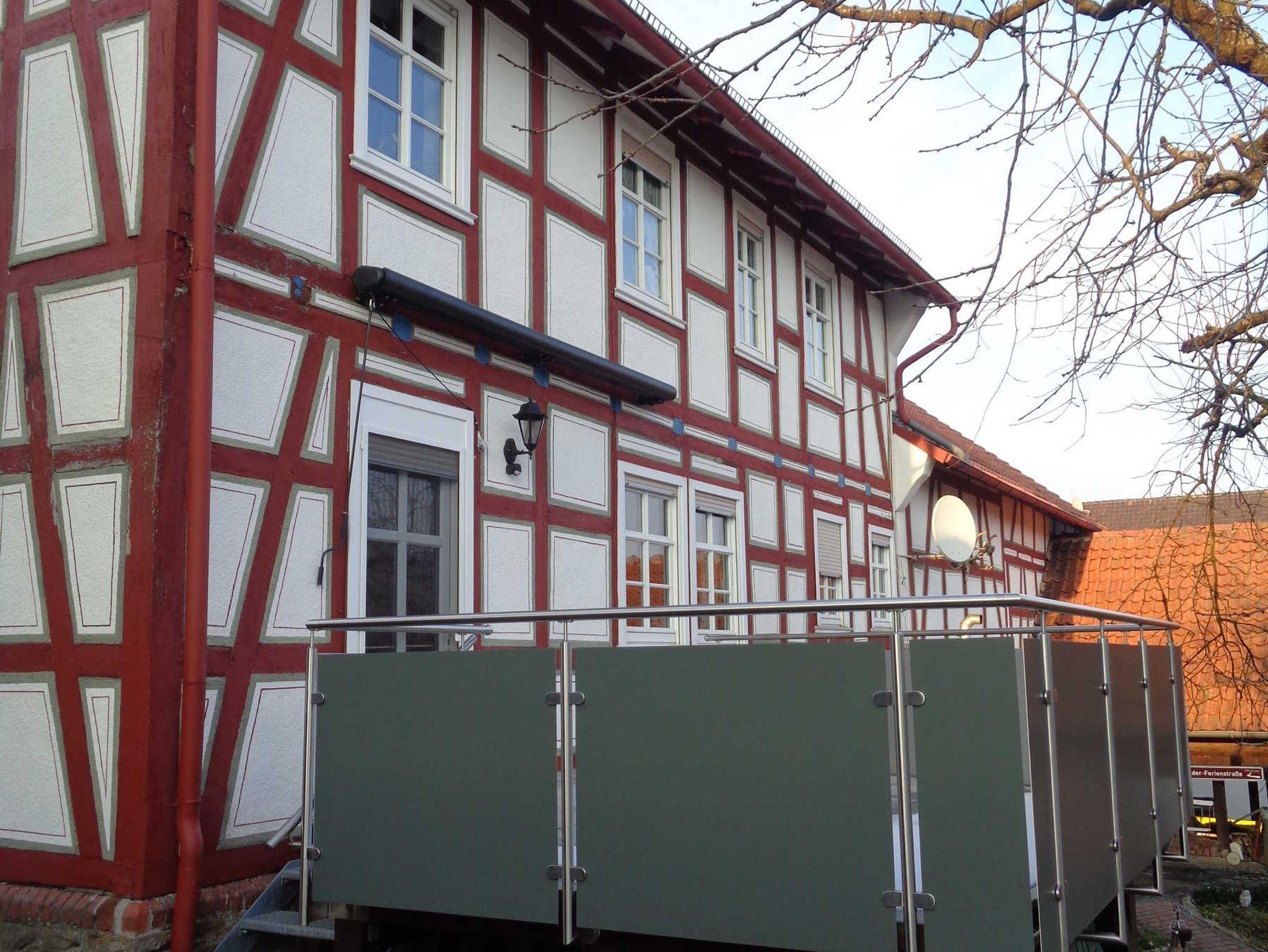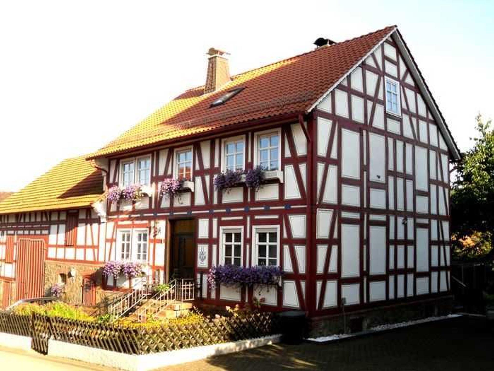 Fachwerkhaus. Die helle, freundliche Fewo Wurde in den Wohn-Schlafräumen mit Naturlehmputz versehen. Sie liegt im Erdgeschoss und verfügt über 1 Wohnraum mit Essecke, 1 Küchenzeile mit allen E-Geräten, 1 Schlafraum mit WC-Nebenraum, 1 Abstellraum, 1 Dusche mit WC einen Südbalkon, Sat-TV, Radio-CD, PKW-Stellplatz.