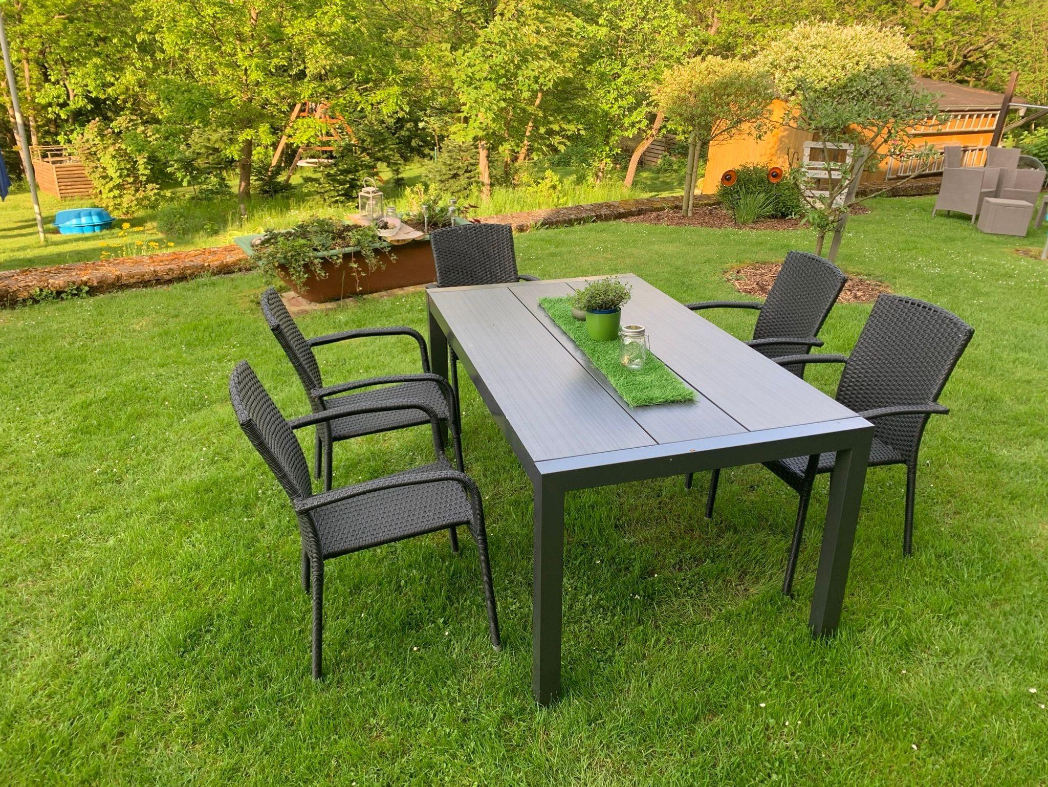 Unser Haus mit großem Garten, Grillmöglichkeiten, Sitzecken, Tischtennis und Spielplatz liegt idyllisch und ruhig am Waldrand.