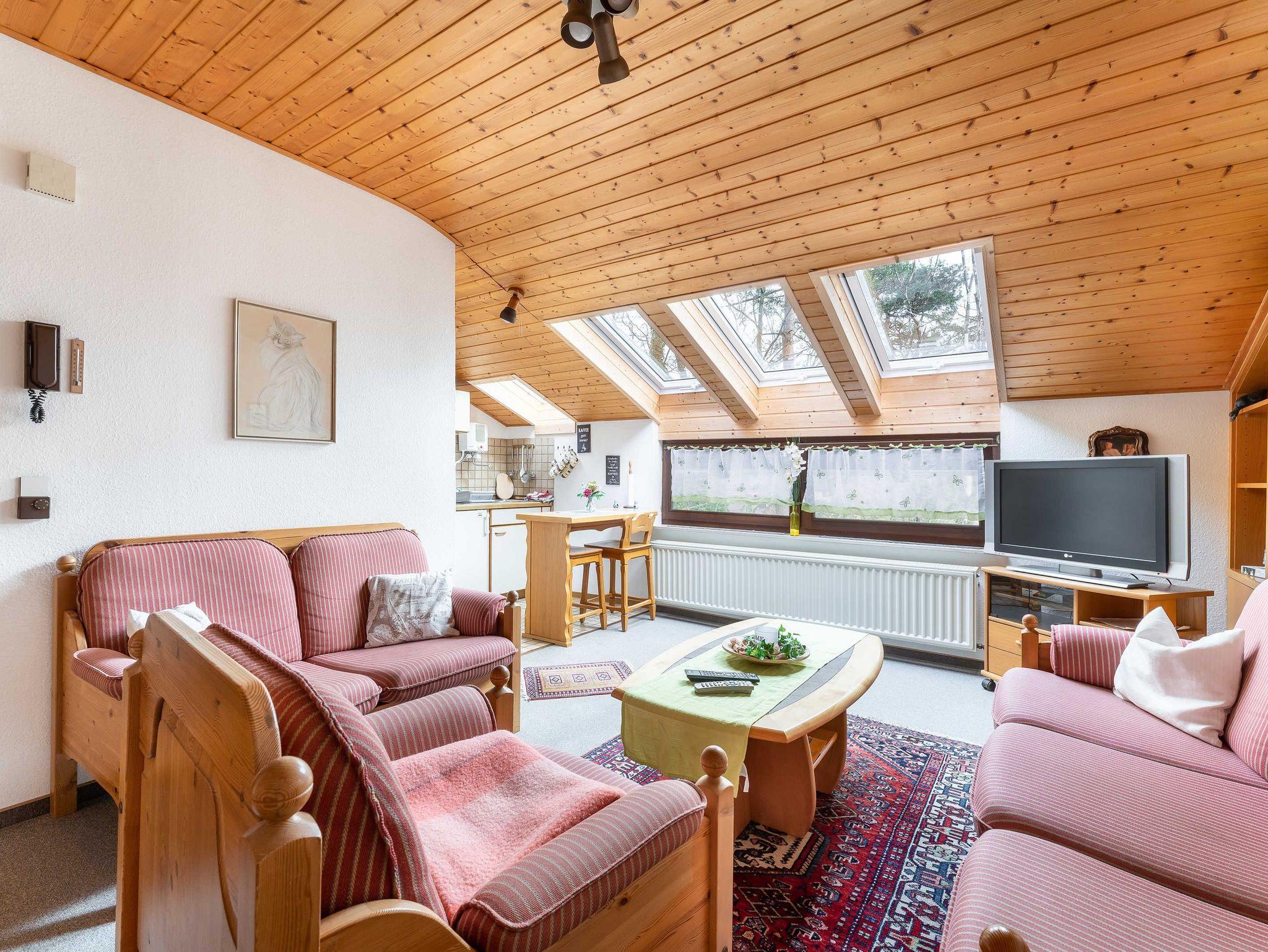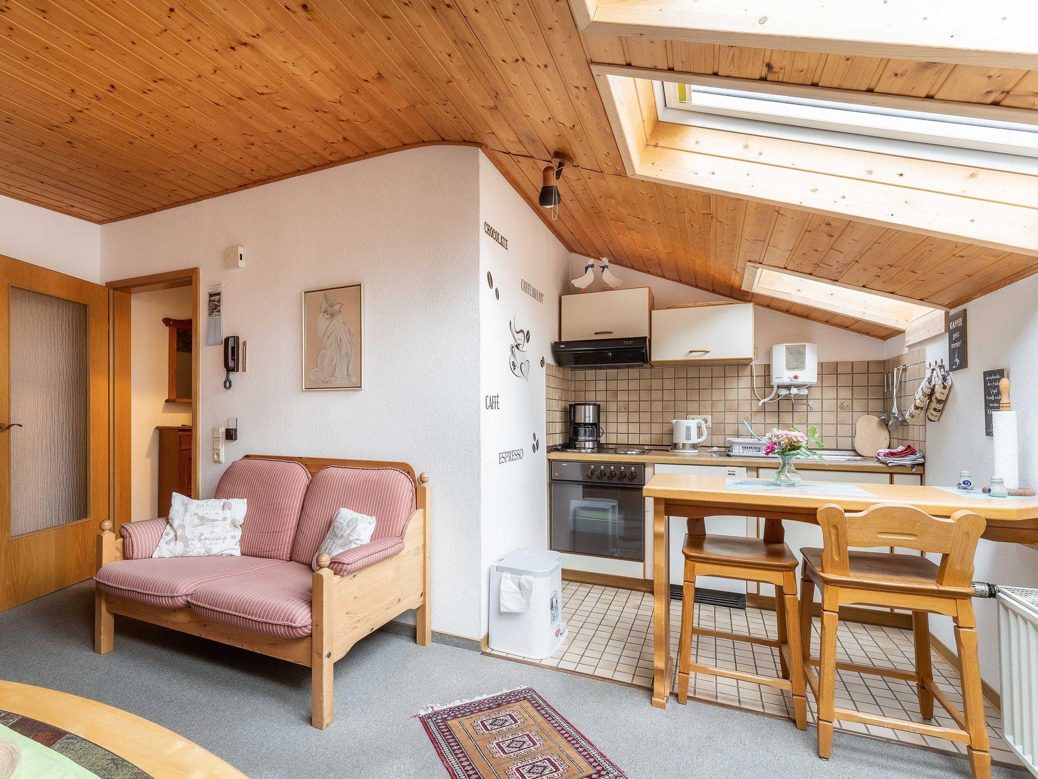 Modern eingerichtet finden Sie diese kleine, schnuckelige 2 Zimmer Wohnung mit ihren ca. 40 m². Die Fenster in den Dachschrägen bringen viel Licht in den schönen Wohnraum mit integrierter Küche.