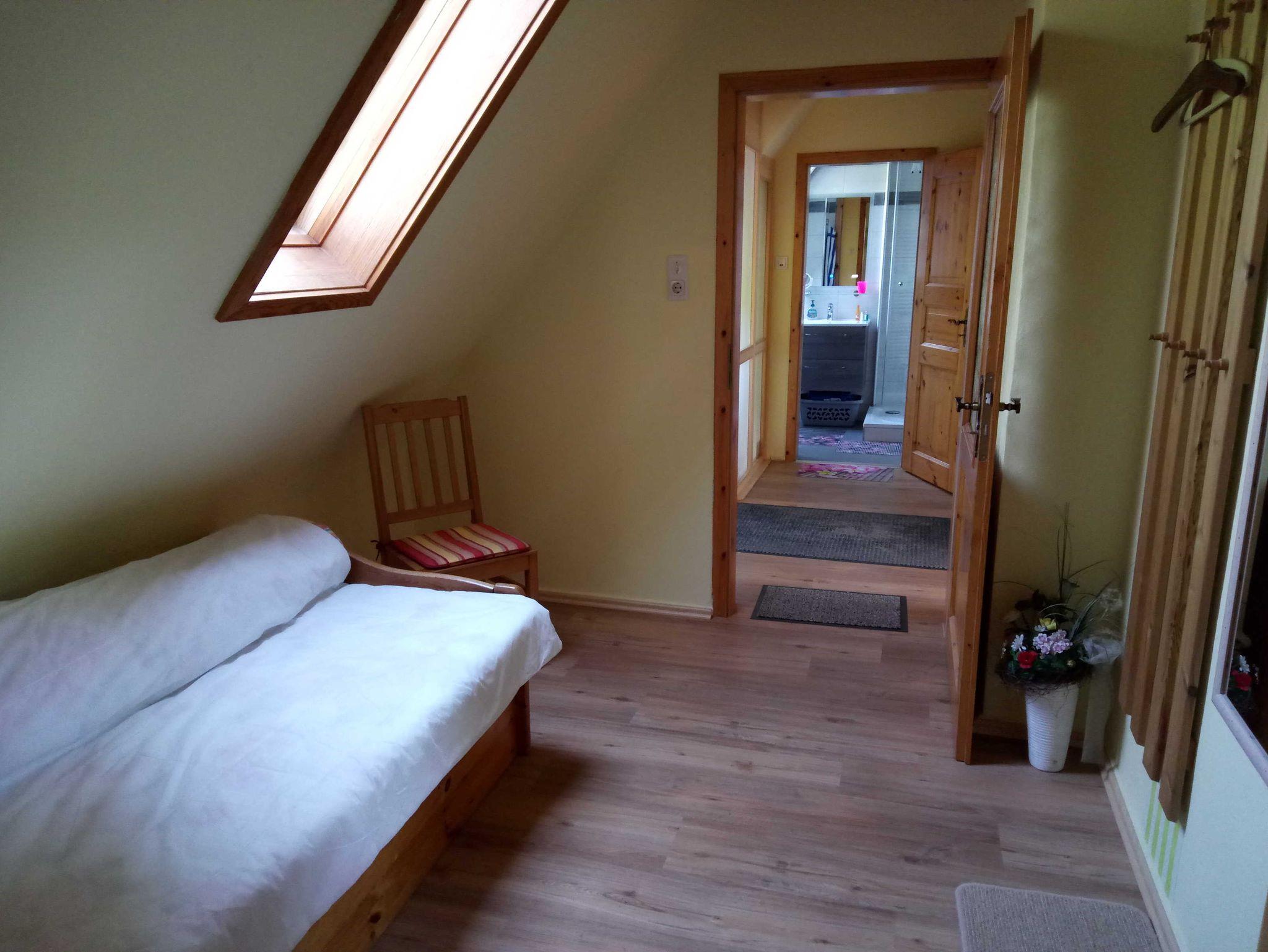 Unsere neu renovierte und liebevoll eingerichtete Nichtraucher Ferienwohnung bietet Ihnen ein schönes Ambiente zum Wohlfühlen und Entspannen. Klassifiziert mit 3 DTV Sternen. Die Ferienunterkunft bietet eine Wohnliche Gesamtausstattung mit guten Komfort. Für maximal 5 Personen. Die Ferienwohnung befindet sich im Dachgeschoss. Neben zwei separaten Schlafzimmern gibt es einen weiteren Schlafplatz in einer Nische des großen Flurs. Zur Ferienwohnung gehört ein ca. 10 m2 großer Balkon direkt am Wohnzimmer.