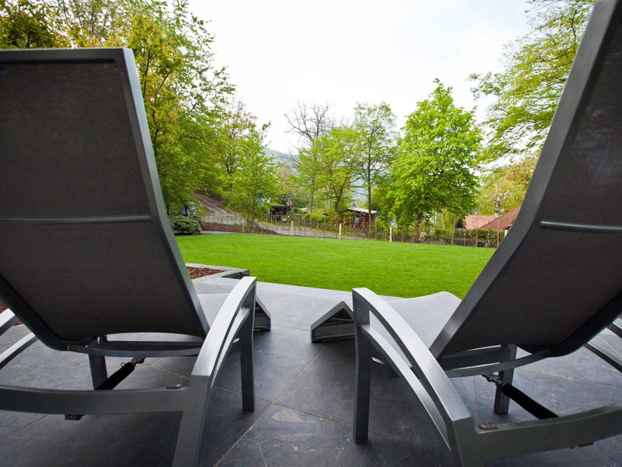 Für einen angenehmen Aufenthalt im Freien stehen Ihnen bequeme Liegen und Gartenmöbel zur Verfügung. Eine Feuerschale lädt zu gemütlichen Abenden ein.