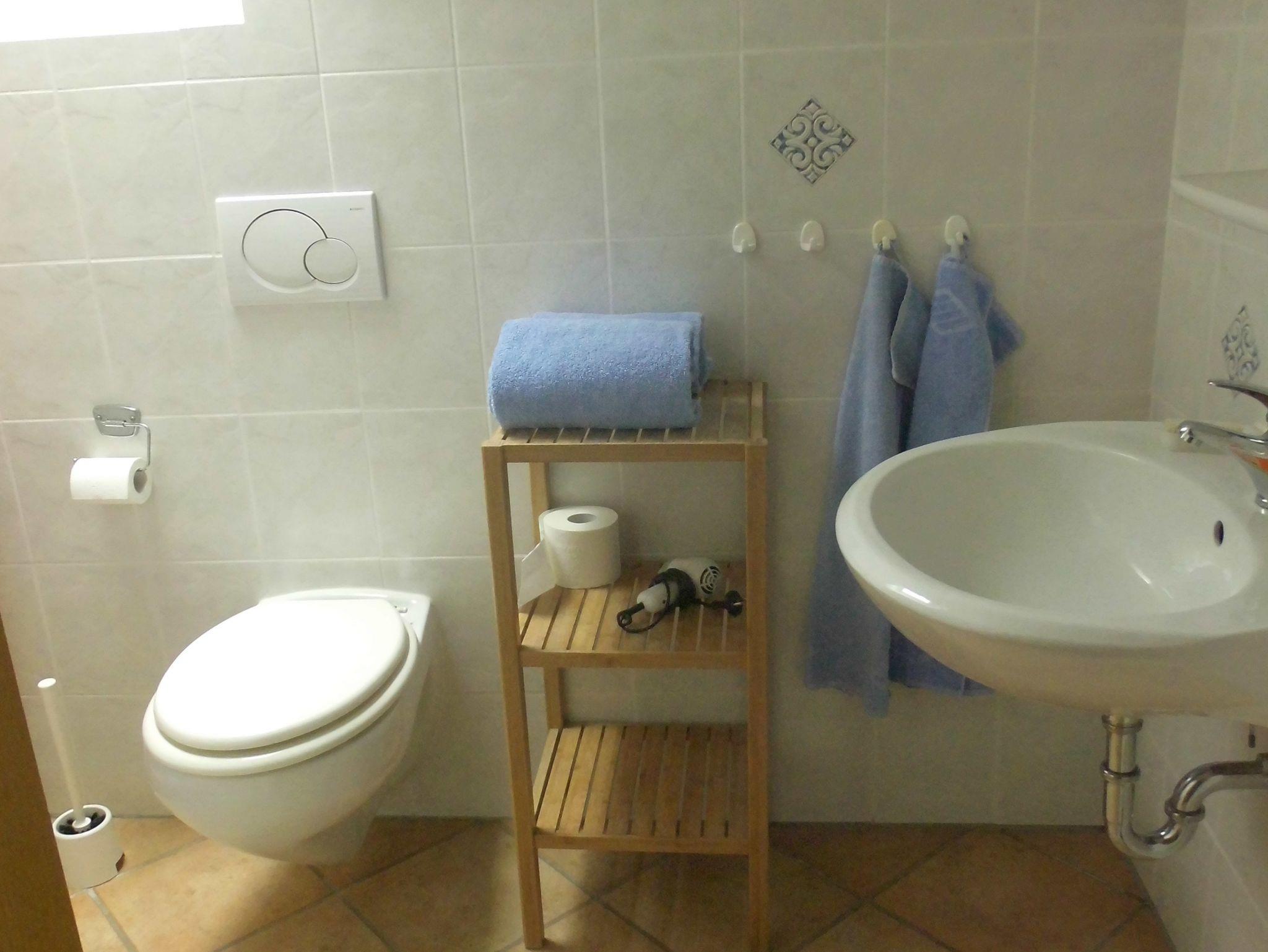 Diese Wohnung hat ein kleines Kinderschlafzimmer mit zwei Betten, einen großen Wohnschlafraum mit Doppelbett in der Nische, der Essecke mit Fernseher, der Küche mit Spülmaschine, Kühlschrank, Gefrierfach, Backofen, Ceranfeld, Wasserkocher, Kaffeemaschine, Toaster und einen Tisch auf der darunter liegenden überdachten Terrasse zum draußen sitzen. Diese Wohnung befindet sich im Dachgeschoss 2. Stock.