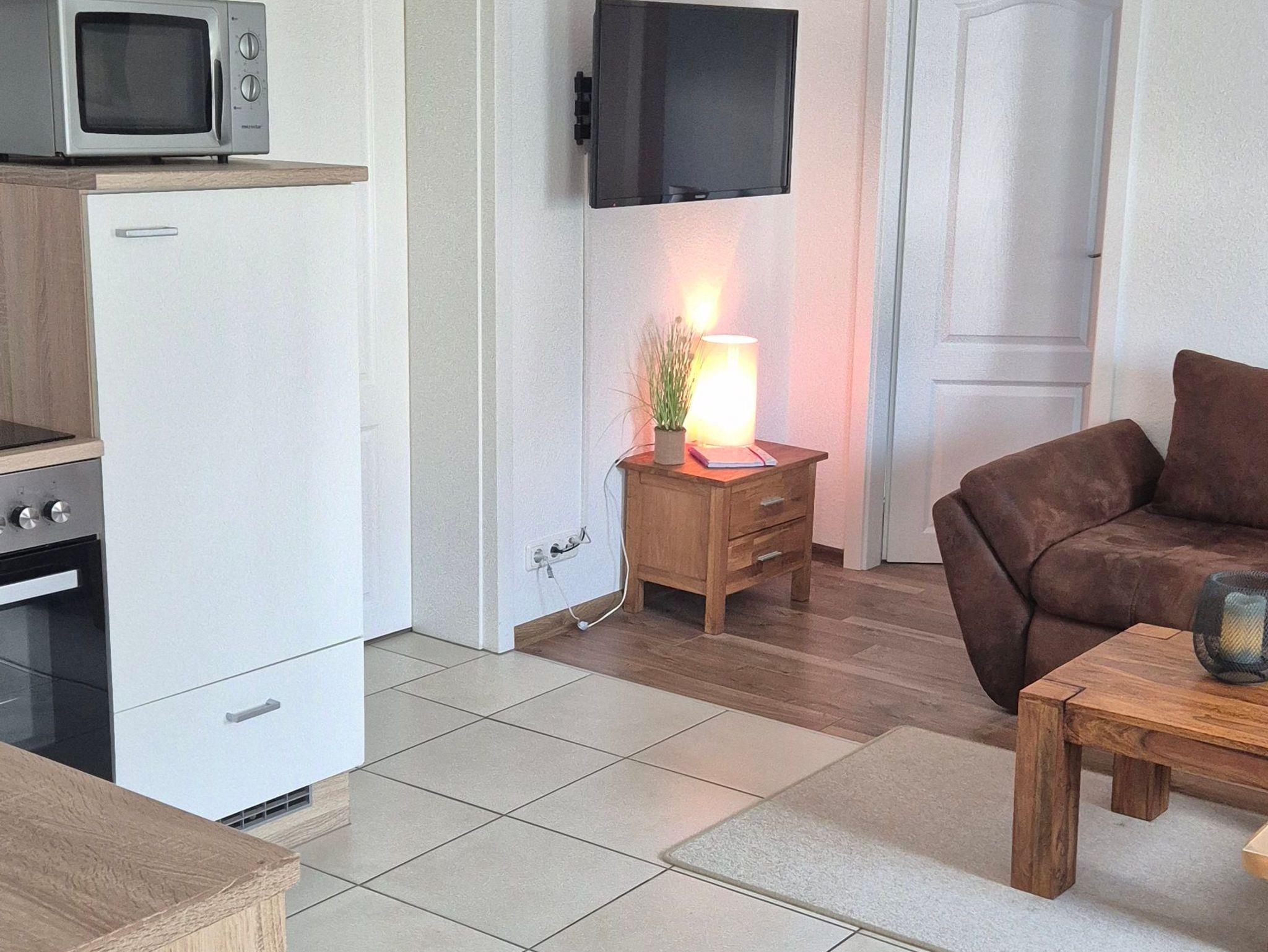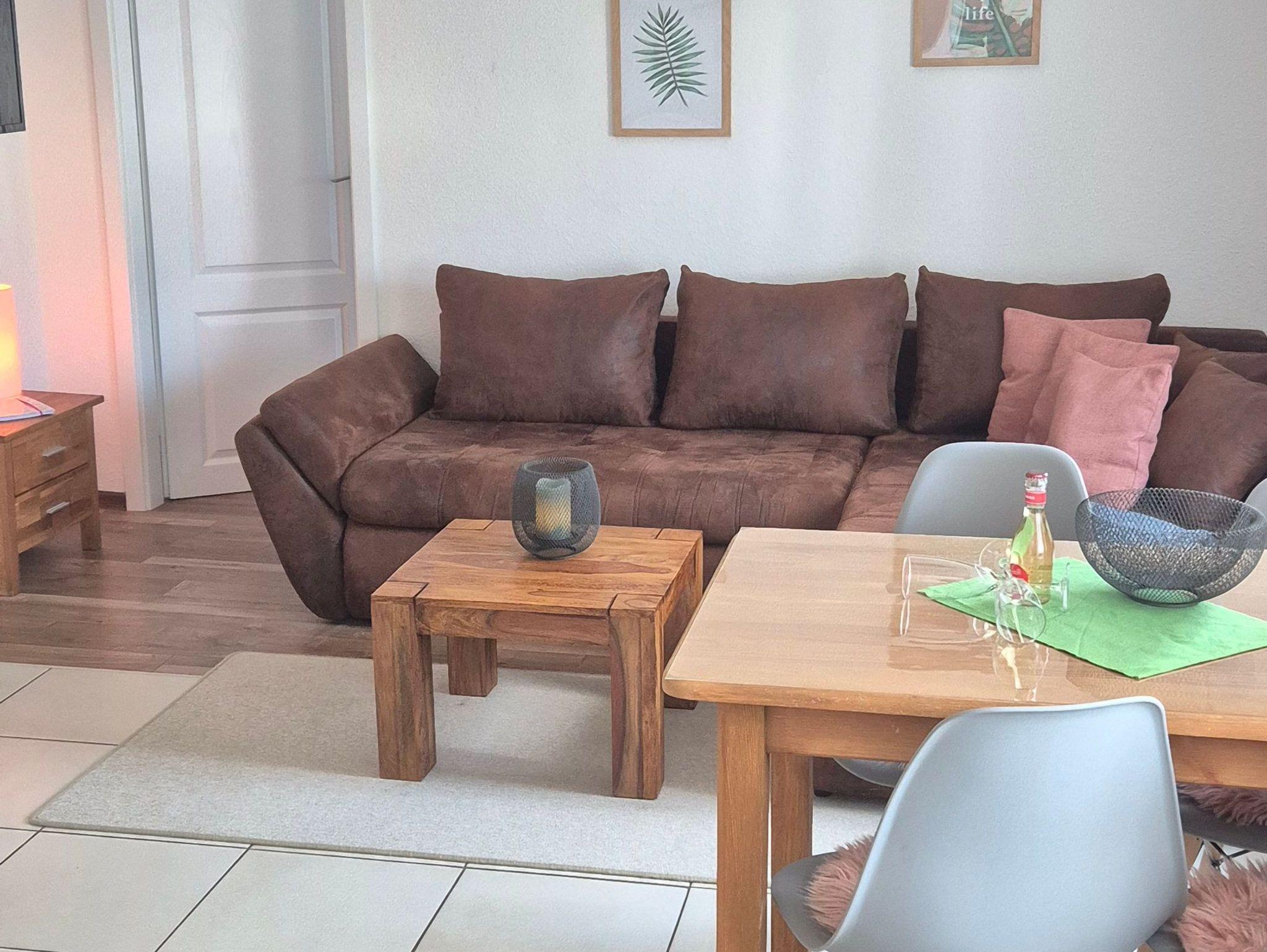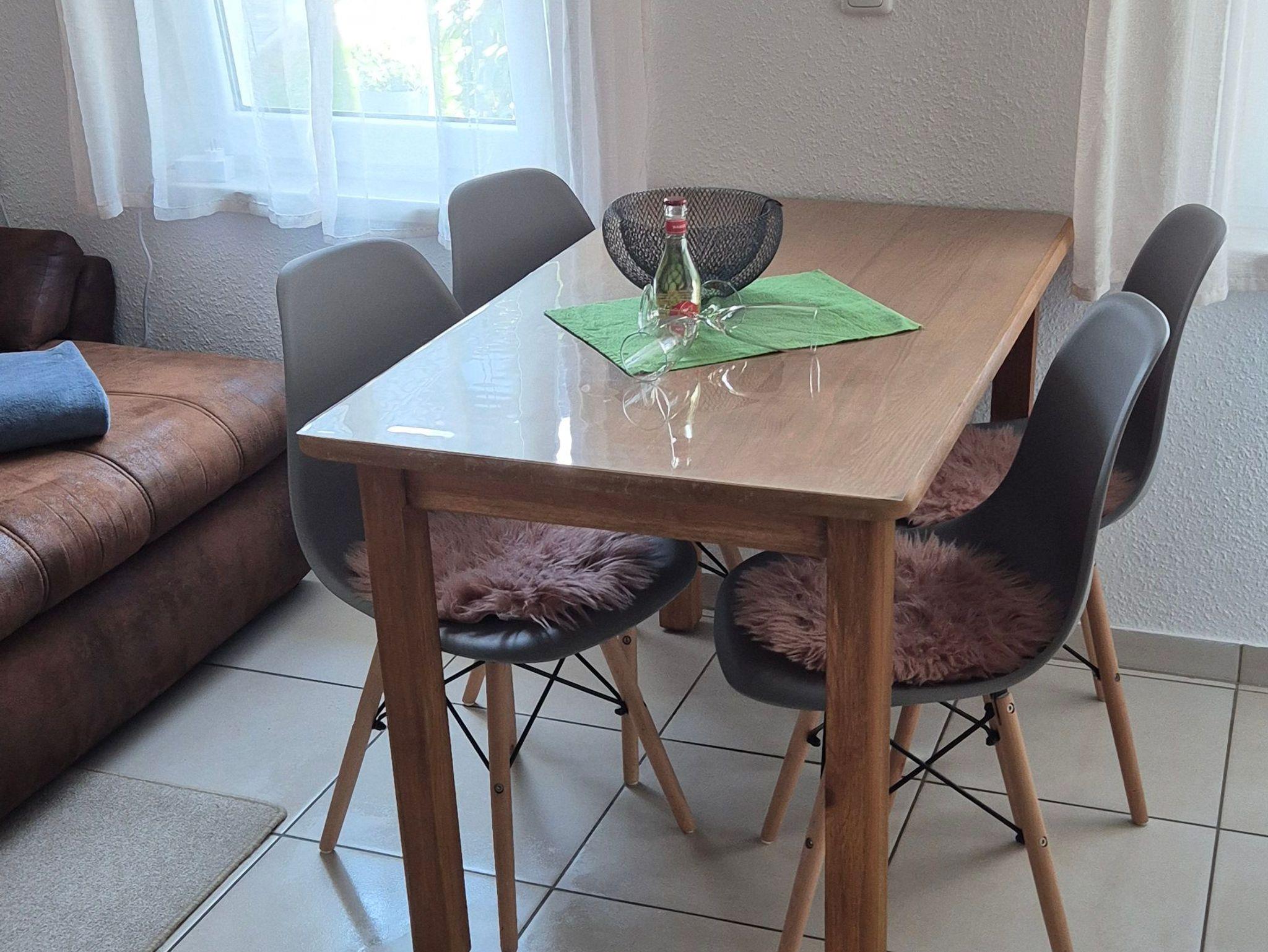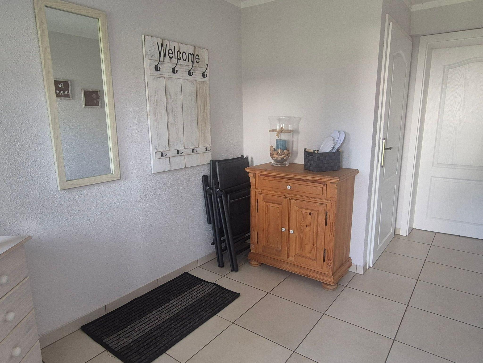Im ersten Schlafzimmer steht ein großes Doppelbett, im zweiten Schlafzimmer befinden sich 2 Einzelbetten. Bettwäsche und Handtücher sind vorhanden (inkl.) sowie ein Kinderreisebett und ein Hochstuhl. Im Wohn-/Essbereich befinden sich eine ausklappbare Couch, Küchenzeile und Esstisch und ein TV. Die Küche ist mit Herd, einer Kühl-/Gefrierkombination, Mikrowelle, Geschirrspüler, Kaffeemaschine, Toaster und Wasserkocher ausgestattet. Das Badezimmer mit Fenster hat eine ebenerdige, geräumige Dusche, WC und eine Waschmaschine, die Sie gegen Gebühr nutzen können. Die kleine gemütliche Sitzecke auf der Terrasse lädt zu Grillabenden ein, ein Grill ist vorhanden.