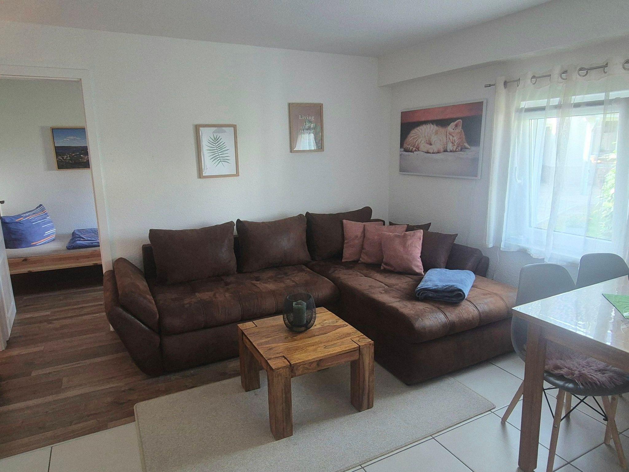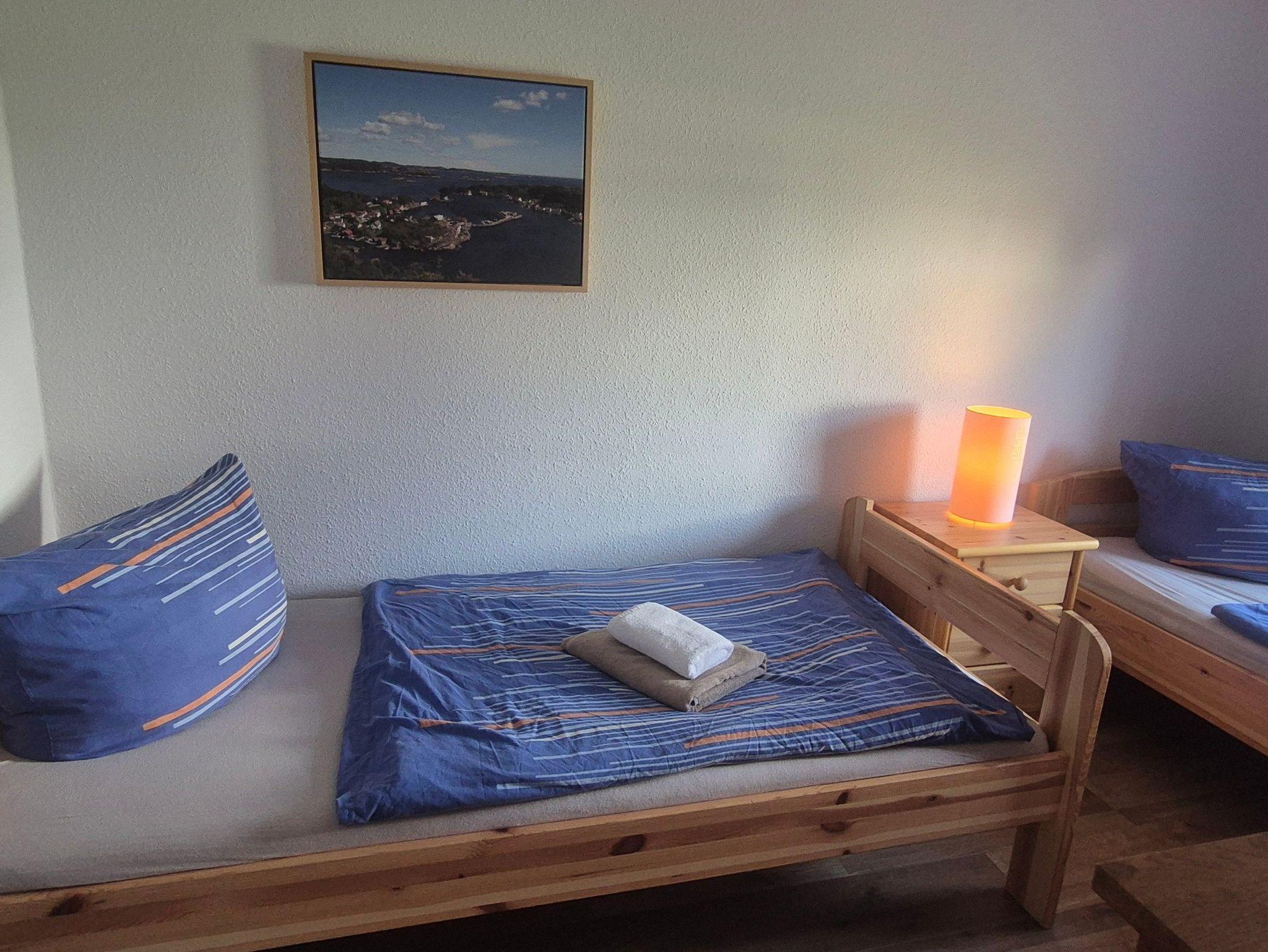 Das Nichtraucher-Ferienhaus ist ein eigenständiges Gebäude und steht auf einem eingezäunten Grundstück. Es verfügt über einen separaten, barrierefreien Eingang (rollstuhlgerecht) sowie einen eigenen Parkplatz.. Das Haus wurde im Juni 2022 renoviert und liebevoll modern eingerichtet. Es verfügt über 2 Schlafzimmer, ein Badezimmer, einen offenen Wohnbereich mit Küche und eine Terrasse. Im ersten Schlafzimmer steht ein großes Doppelbett, im zweiten Schlafzimmer befinden sich 2 Einzelbetten. Bettwäsche und Handtücher sind vorhanden (inkl.) sowie ein Kinderreisebett und ein Hochstuhl. Im Wohn-/Essbereich befinden sich eine ausklappbare Couch, Küchenzeile und Esstisch und ein TV. Die Küche ist mit Herd, einer Kühl-/Gefrierkombination, Mikrowelle, Geschirrspüler, Kaffeemaschine, Toaster und Wasserkocher ausgestattet. Das Badezimmer mit Fenster hat eine ebenerdige, geräumige Dusche, WC und eine Waschmaschine, die Sie gegen Gebühr nutzen können. Die kleine gemütliche Sitzecke lädt zu Grillabenden ein, ein Grill ist vorhanden. Im Preis sind Bettwäsche und Handtücher, Energiekosten, Parkplatz und Endreinigung enthalten. Hunde sind nicht erlaubt.