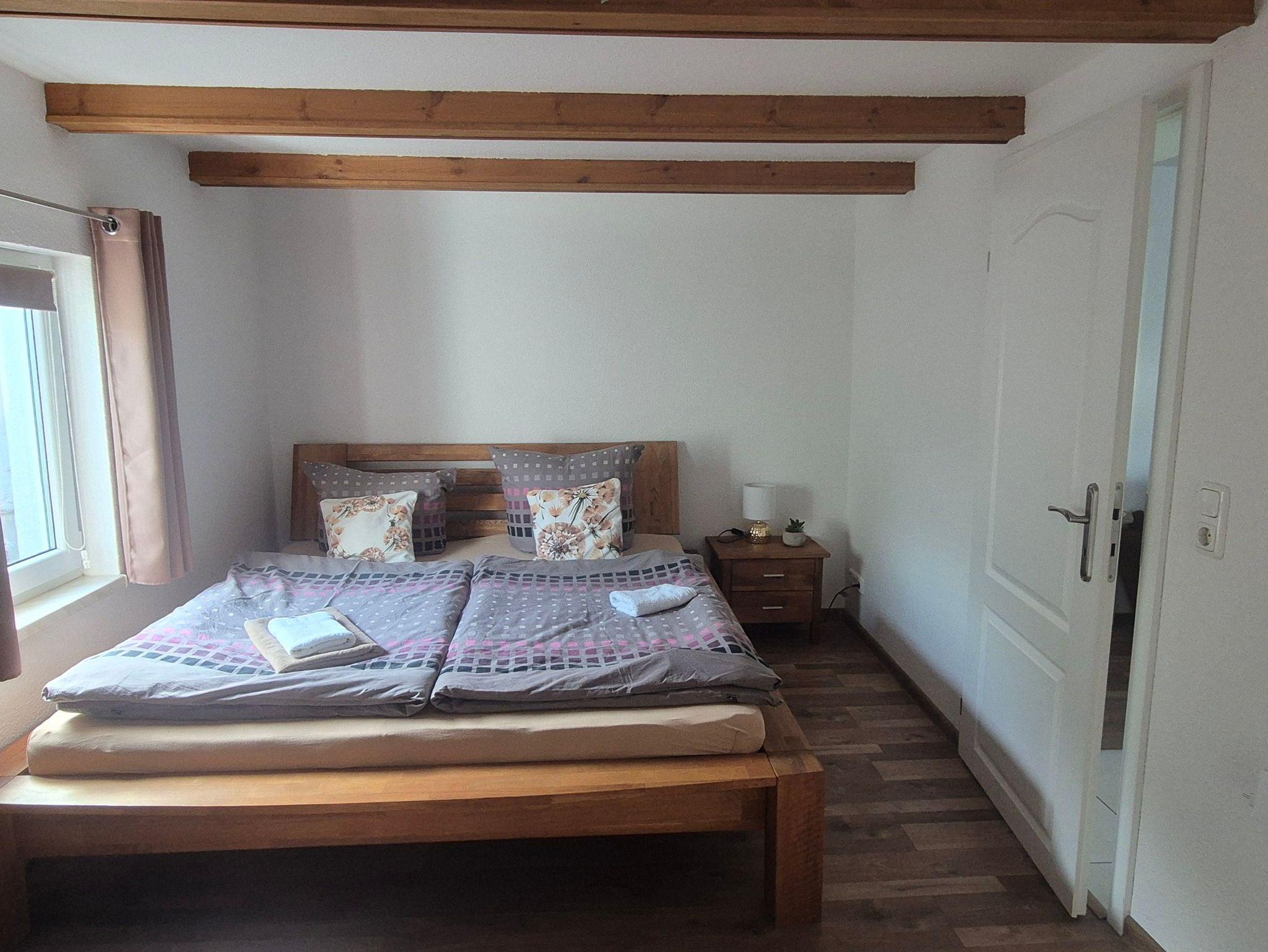 Das Nichtraucher-Ferienhaus ist ein eigenständiges Gebäude und steht auf einem eingezäunten Grundstück. Es verfügt über einen separaten, barrierefreien Eingang (rollstuhlgerecht) sowie einen eigenen Parkplatz. Das Haus wurde im Juni 2022 renoviert und liebevoll modern eingerichtet. Es verfügt über 2 Schlafzimmer, ein Badezimmer, einen offenen Wohnbereich mit Küche und eine Terrasse. Im ersten Schlafzimmer steht ein großes Doppelbett, im zweiten Schlafzimmer befinden sich 2 Einzelbetten. Bettwäsche und Handtücher sind vorhanden (inkl.) sowie ein Kinderreisebett und ein Hochstuhl. Im Wohn-/Essbereich befinden sich eine ausklappbare Couch, Küchenzeile und Esstisch und ein TV. Die Küche ist mit Herd, einer Kühl-/Gefrierkombination, Mikrowelle, Geschirrspüler, Kaffeemaschine, Toaster und Wasserkocher ausgestattet. Das Badezimmer mit Fenster hat eine ebenerdige, geräumige Dusche, WC und eine Waschmaschine, die Sie gegen Gebühr nutzen können. Die kleine rustikale Sitzecke lädt zu Grillabenden ein, ein Grill ist vorhanden. Im Preis sind Bettwäsche und Handtücher, Energiekosten, Parkplatz und Endreinigung enthalten. Hunde sind nicht erlaubt.