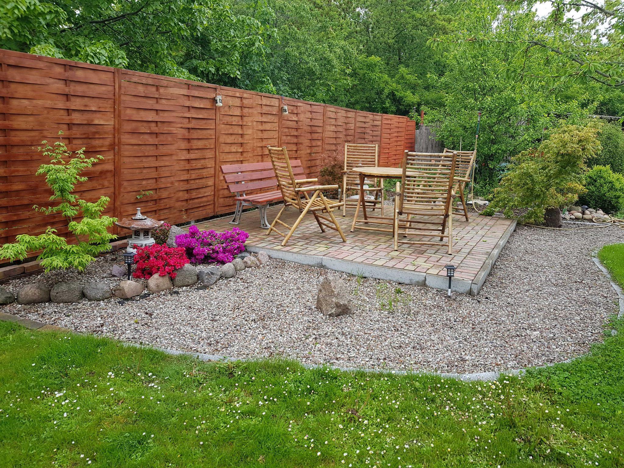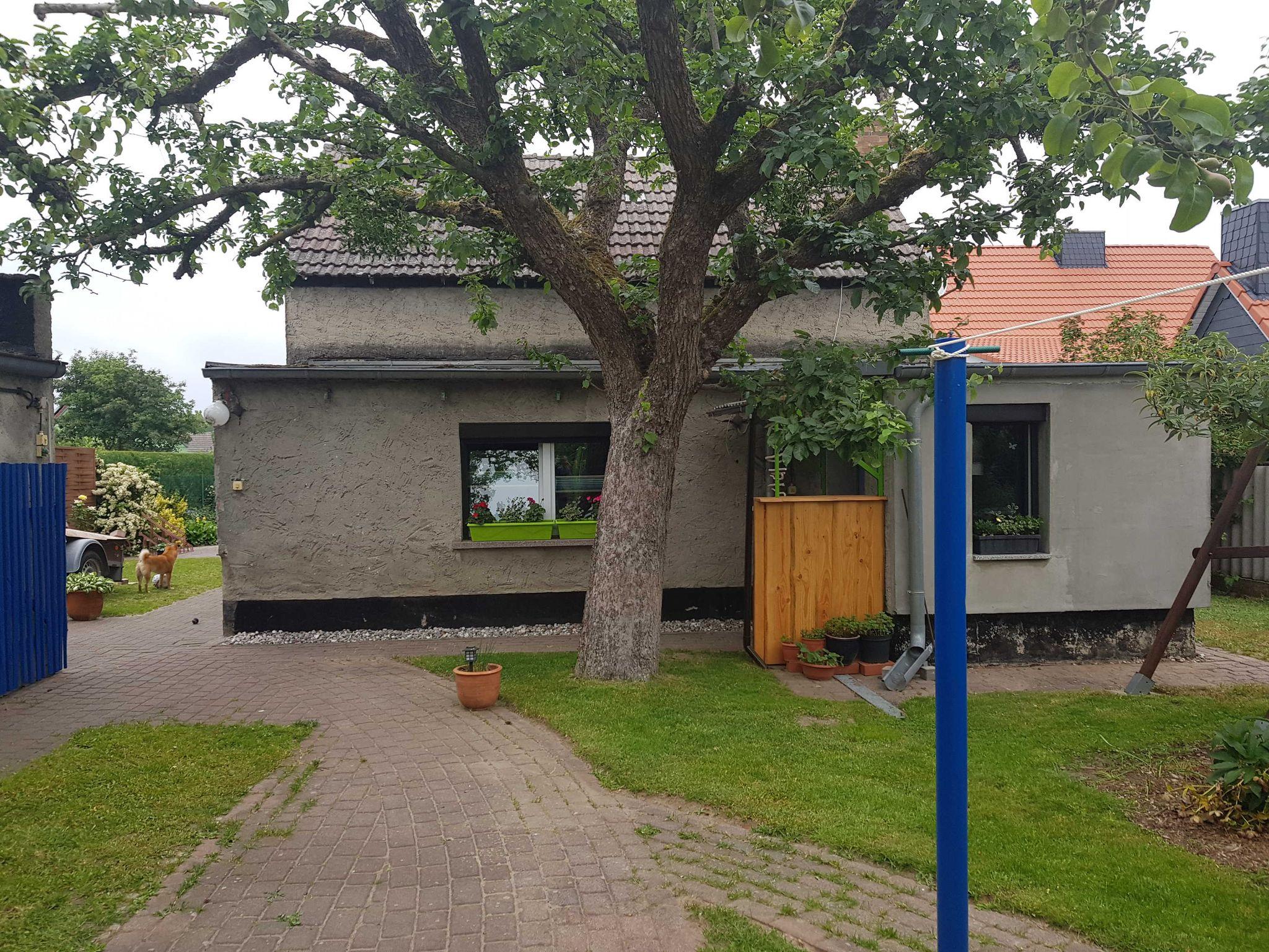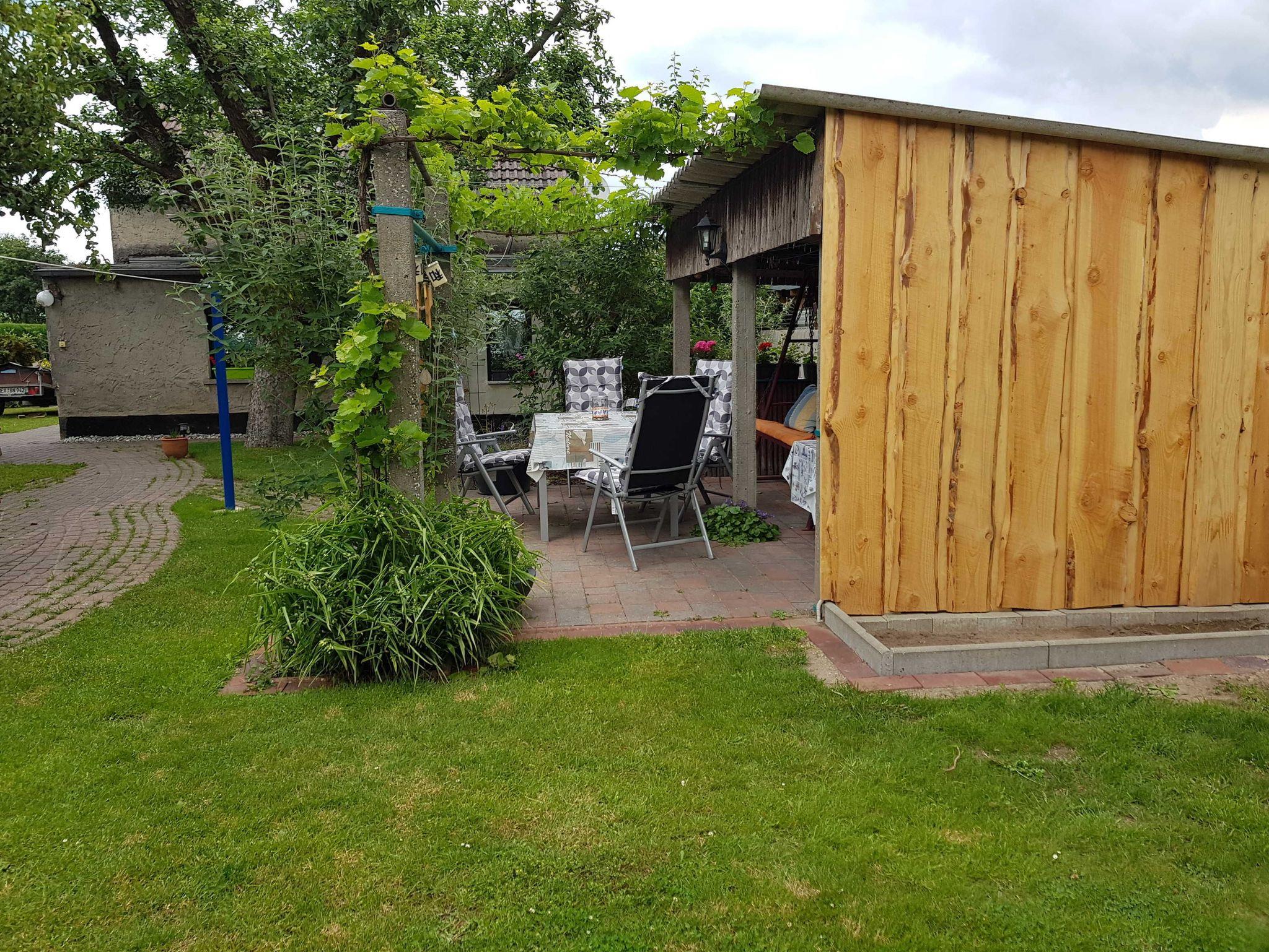 Ferienwohnung im Garten mit Liegewiesen, 1 Wohn-/Schlafraum mit Eckcouch und TV. 1 Schlafraum mit Doppelbett und großem Schrank, Dusche mit WC, Küche mit Essplatz, Kühlschrank, Mikrowelle, Wasserkocher, Geschirrspüler, Toaster, Kaffeemaschine und fürs Sonntagsei ein Eierkocher; Parkplatz, WLAN, Grillplatz