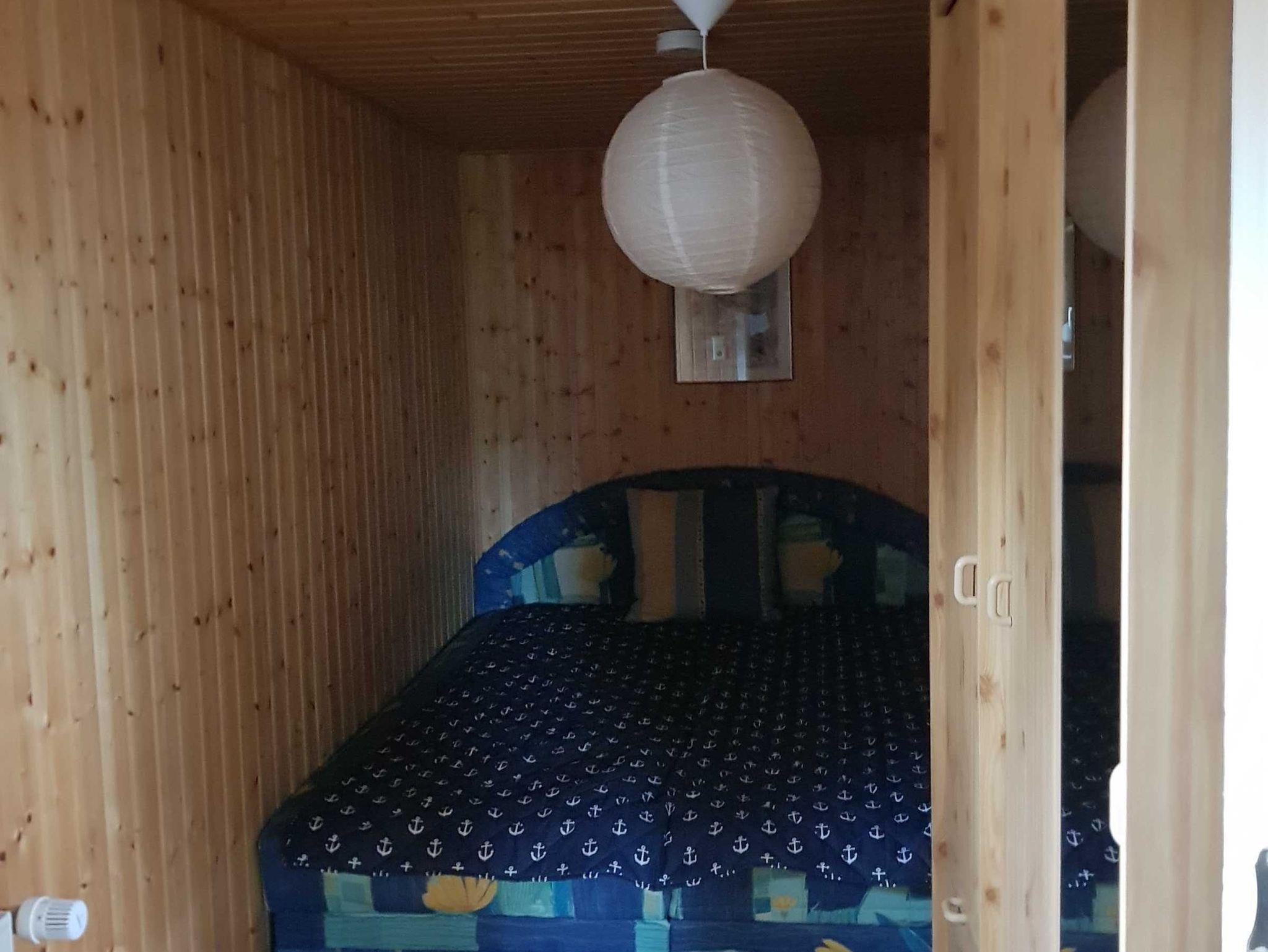 Ferienwohnung im Garten mit Liegewiesen, 1 Wohn-/Schlafraum mit Eckcouch und TV. 1 Schlafraum mit Doppelbett und großem Schrank, Dusche mit WC, Küche mit Essplatz, Kühlschrank, Mikrowelle, Wasserkocher, Geschirrspüler, Toaster, Kaffeemaschine und für's Sonntagsei ein Eierkocher; Parkplatz, WLAN, Grillplatz