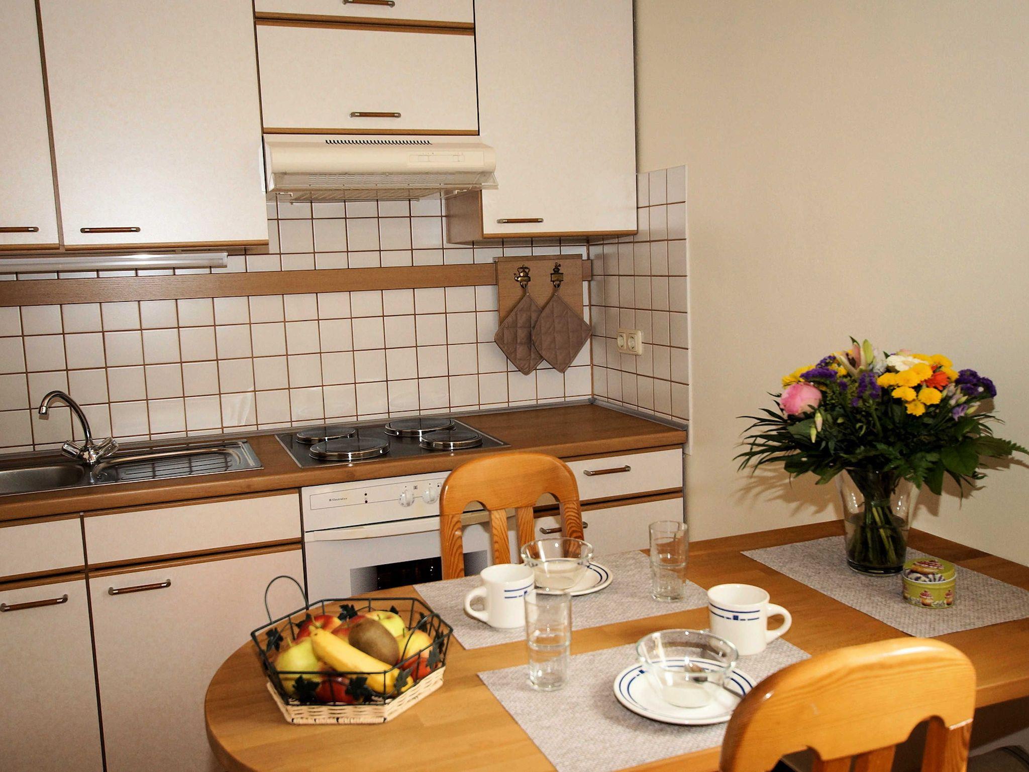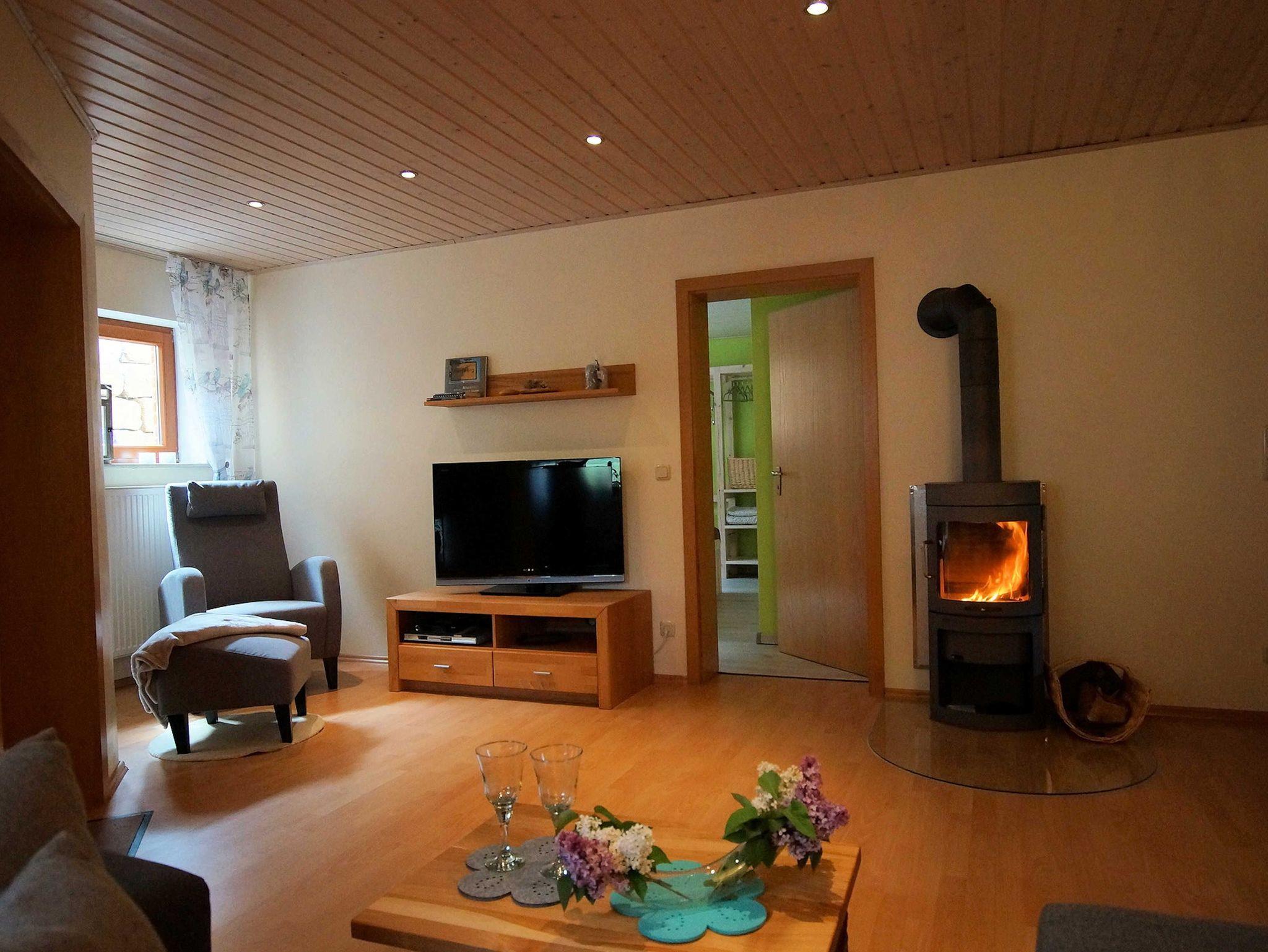 Ruhige Untergeschosswohnung für bis zu 3 Personen plus ein Kleinkind (Reisebett 120x60 gegen geringe Gebühr vorhanden!) ausgestattet mit Laminatböden und Fliesen. Im Schlafzimmer befindet sich ein Doppelbett (180x200) mit neuen Matratzen, Matratzenschutz und Bettwäsche. Ein Baby/Kleinkind Reisebett kann (mit vorheriger Anfrage) zur Verfügung gestellt werden. Im Wohnzimmer befindet sich ein TV und große Schlafcouch mit einer Liegefläche von 140x200 cm. An kühlen Tagen können Sie es sich in dem Sessel vor dem Kaminofen gemütlich machen, das Holz stellen wir Ihnen selbstverständlich kostenlos zur Verfügung. Die vollausgestattete Küche verfügt über einen Esstisch für bis zu 4 Personen. Das Bad hält Handtücher und Fön für Sie bereit. Direkt vor dem Eingang befindet sich ein Sitzplatz, sowie ein Parkplatz im Carport. WLAN wird kostenlos zur Verfügung gestellt, ebenso Hand- und Küchentücher, Bettwäsche und Reinigungsmittel.
