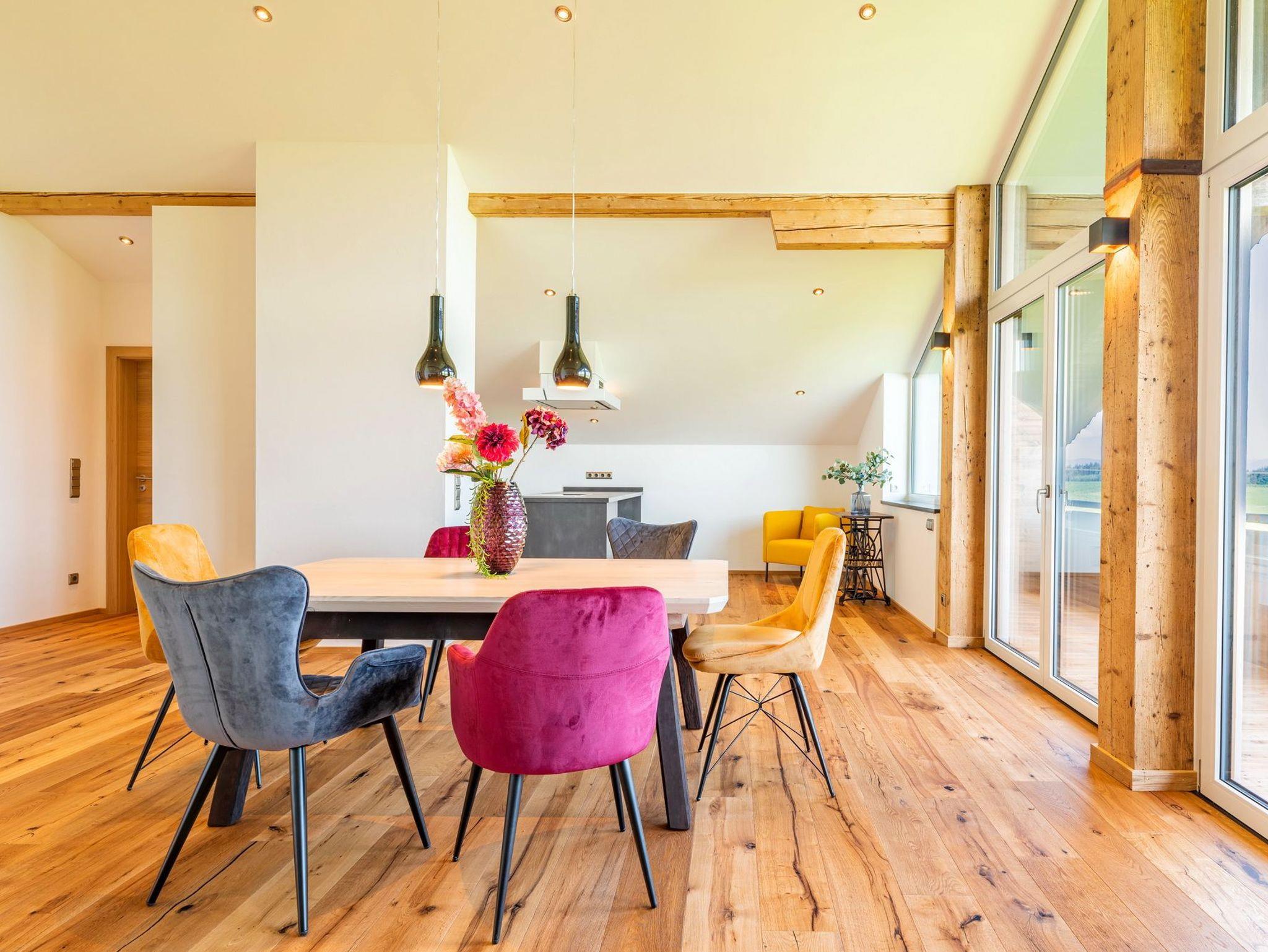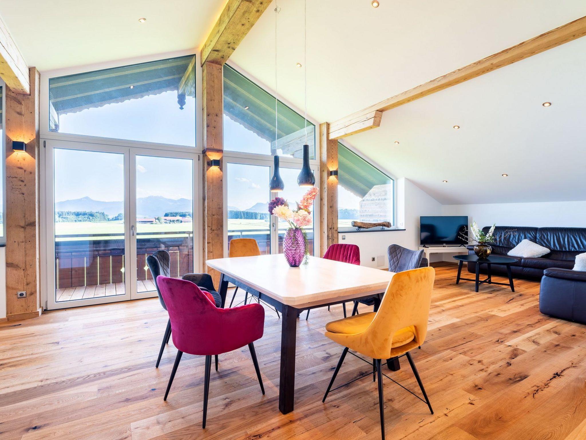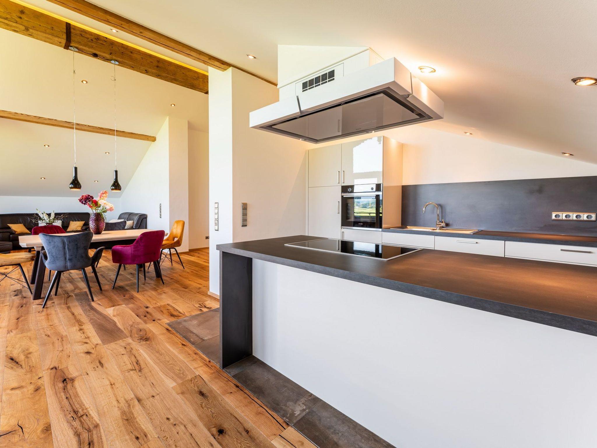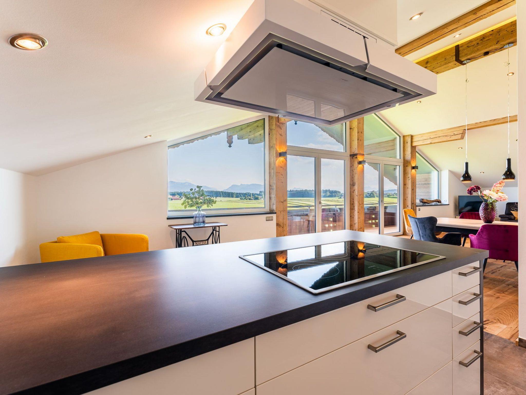 Genießen Sie Ihren Urlaub in unserem modernen, offenen Loft im Dachgeschoss eines ehemaligen Bauernhofs bei Eggstätt. Mit großer Glasfront, überdachtem Südbalkon und traumhaftem Bergpanorama bietet die Ferienwohnung Platz für bis zu 5 Personen. Hochwertige Ausstattung, zwei Schlafzimmer, modernes Bad mit Wanne und Dusche sowie kostenloses WLAN, Stellplatz und Fahrradunterstellung runden das Angebot ab. Perfekt für Natur- und Erholungssuchende nahe Langbürgner See, Eggstätter Seenplatte und Chiemsee.